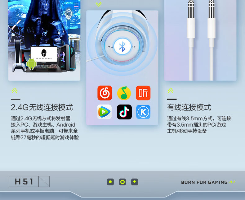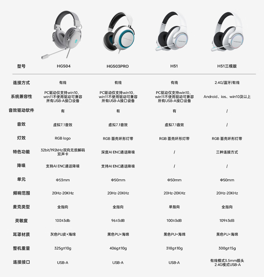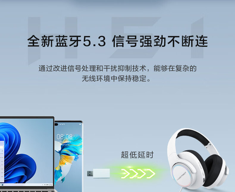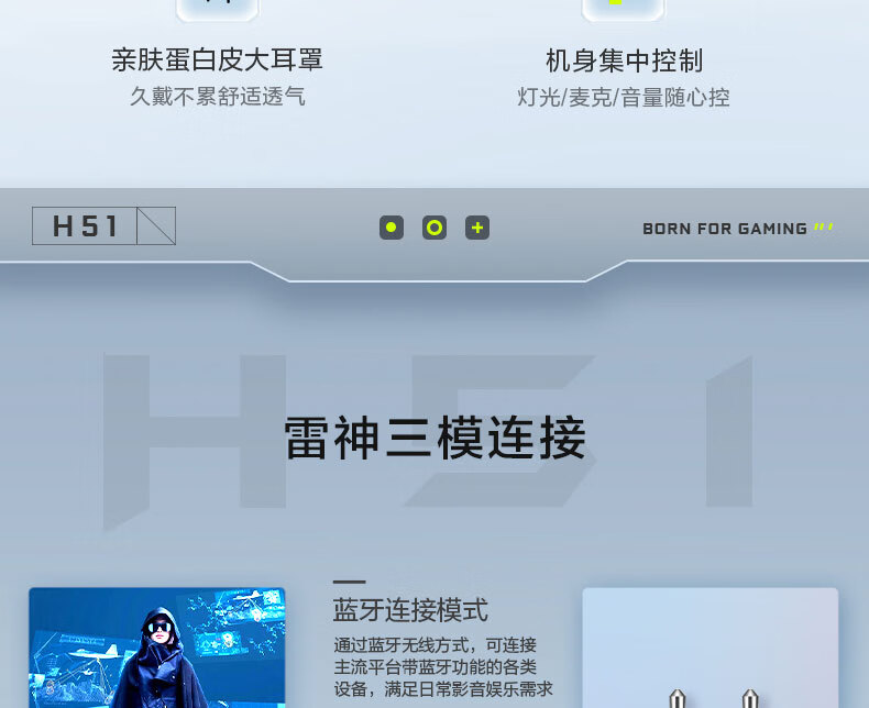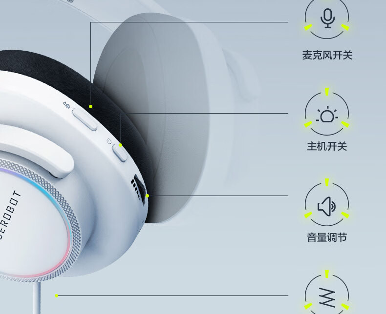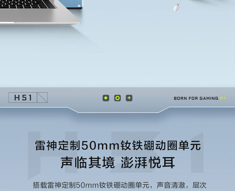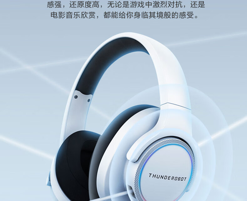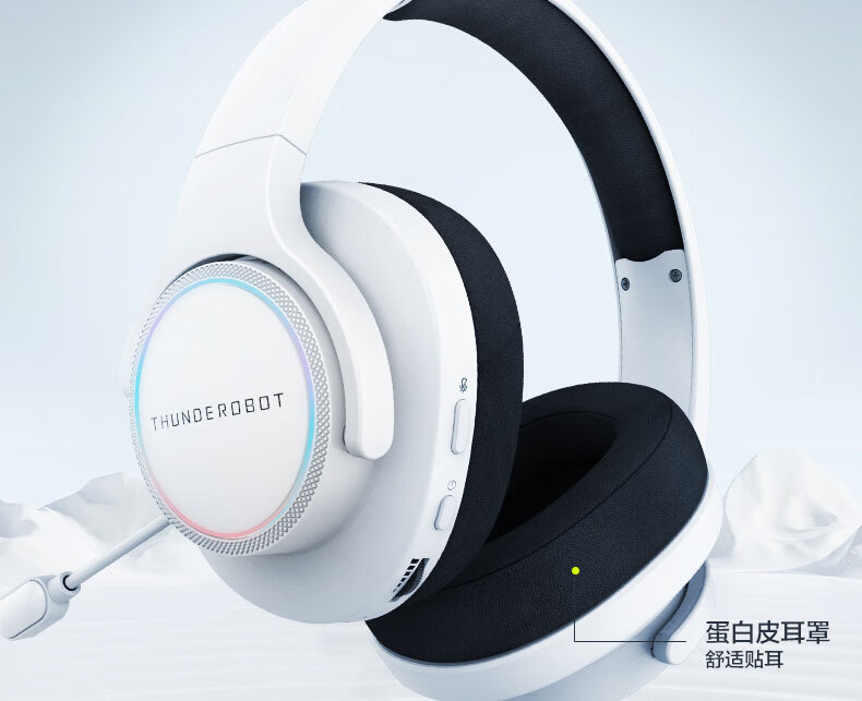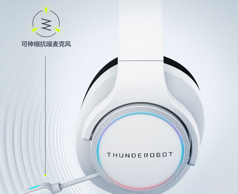雷神(ThundeRobot)H51三模版 有线耳机 白色游戏耳机 USB电脑耳麦 电竞头戴式耳机 环绕RGB灯效 cs2无畏契约绝地求生