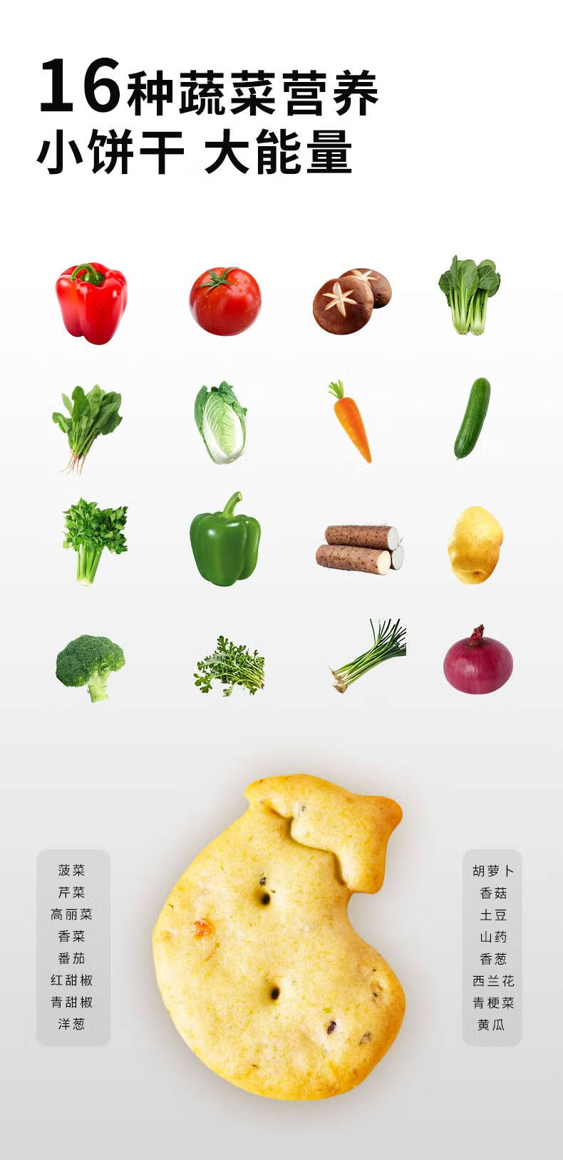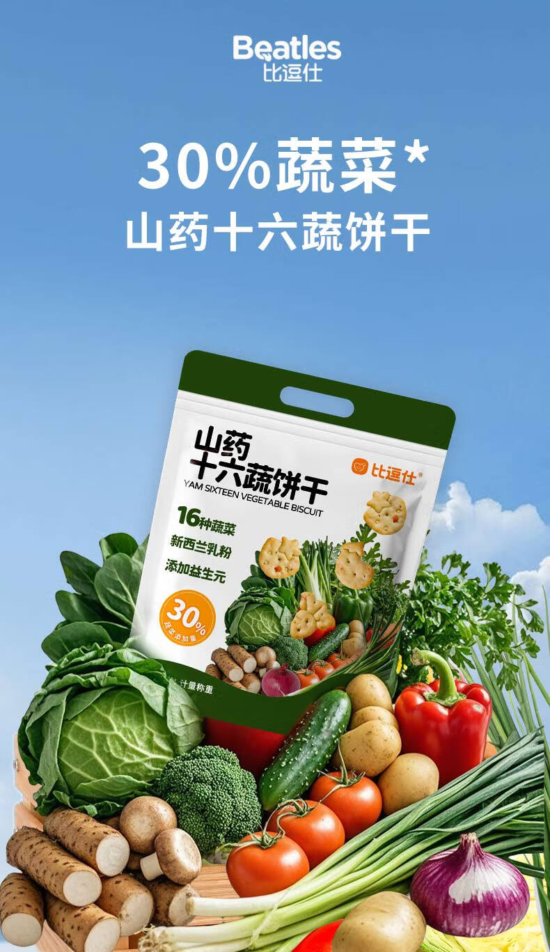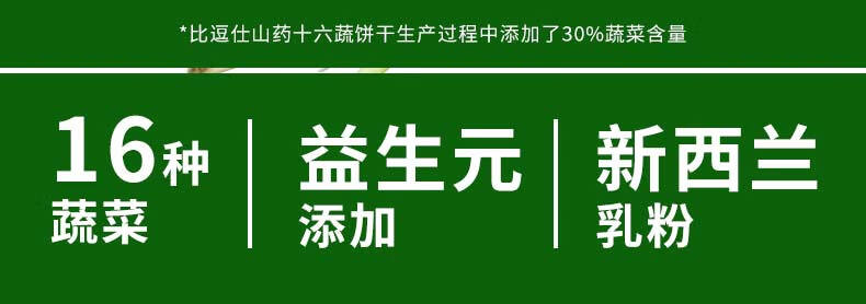 比逗仕山药十六蔬饼干16种蔬菜含量30%添加益生元儿童零食小包装 性价比8g*40包