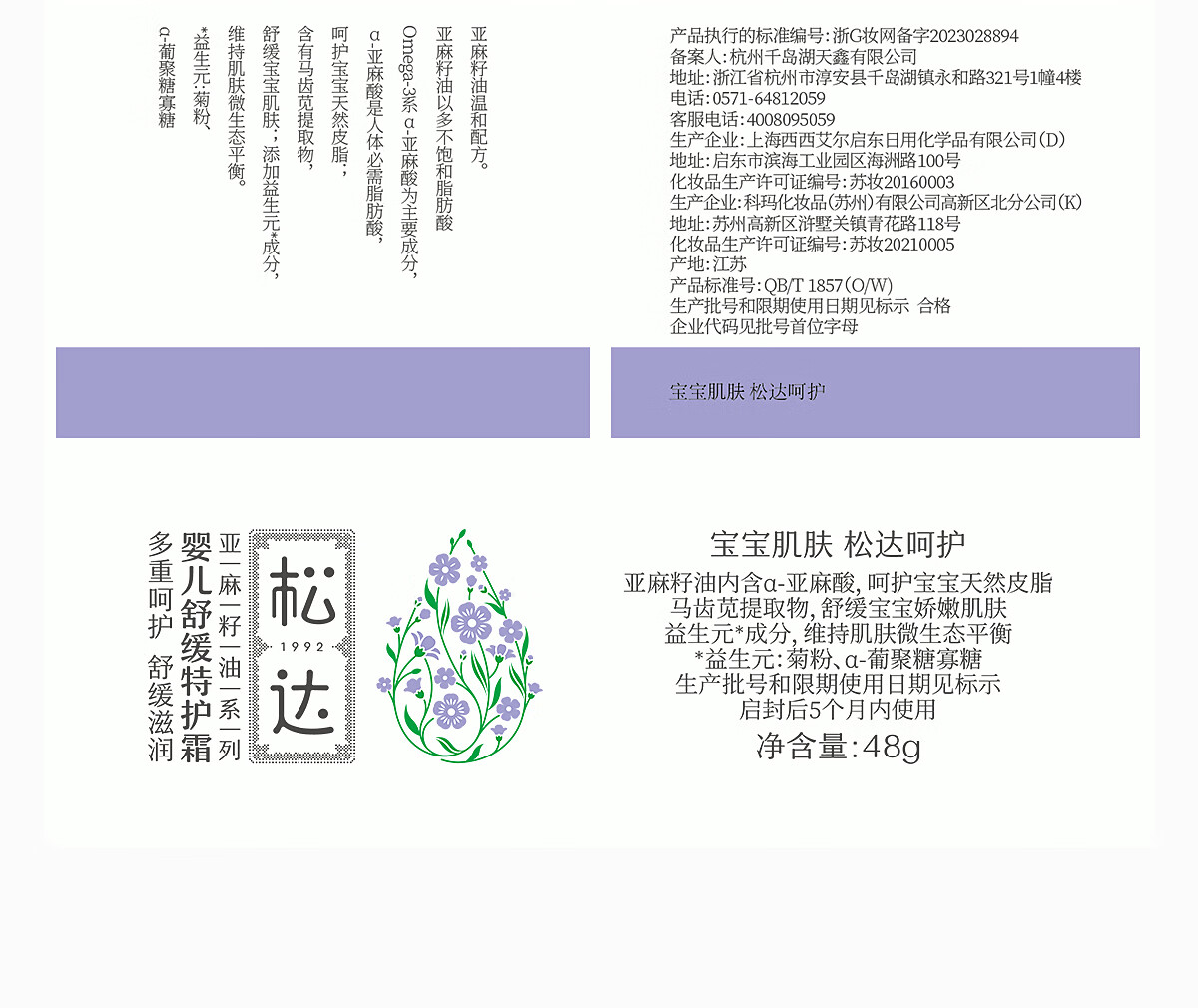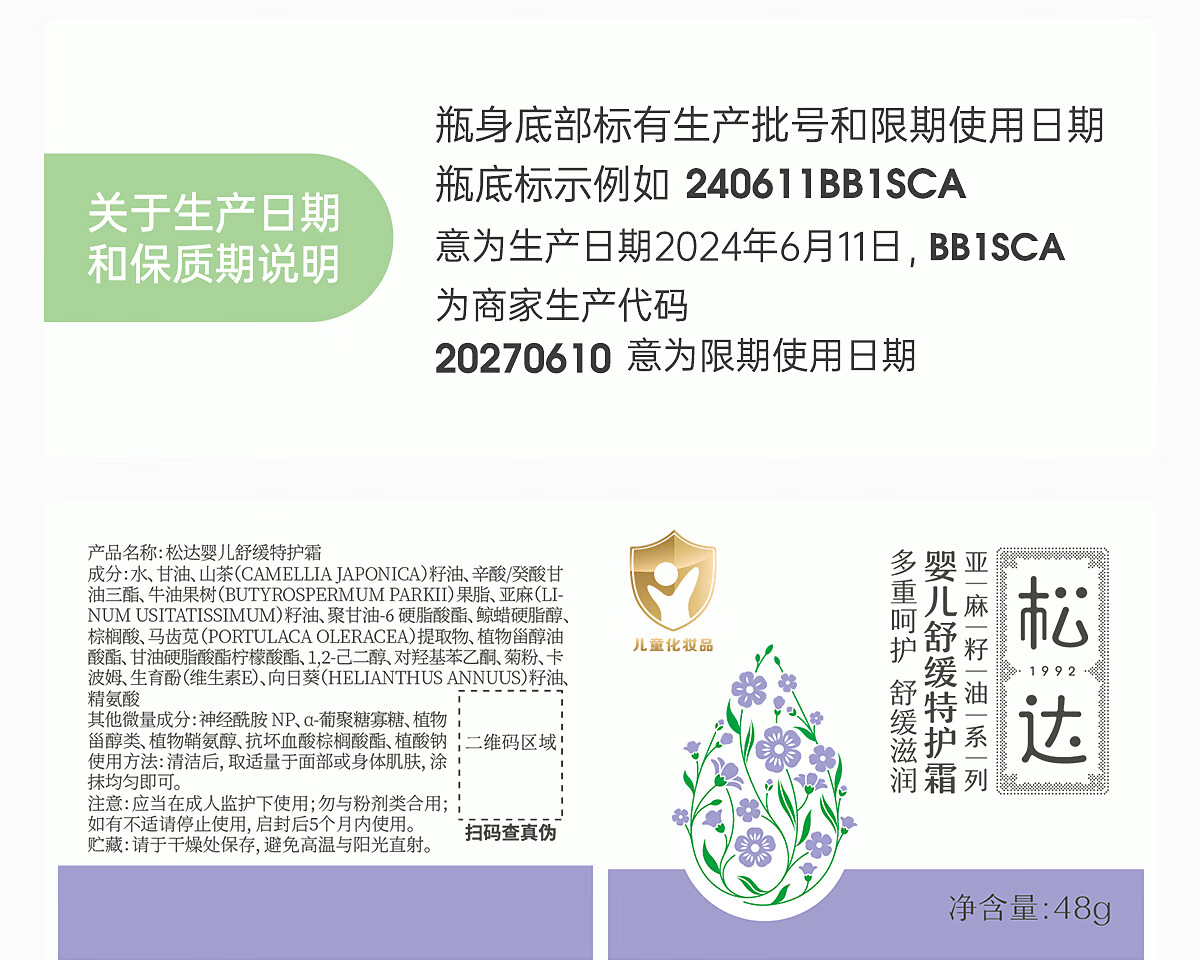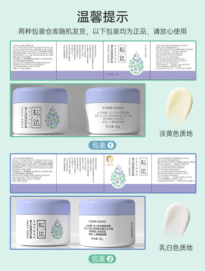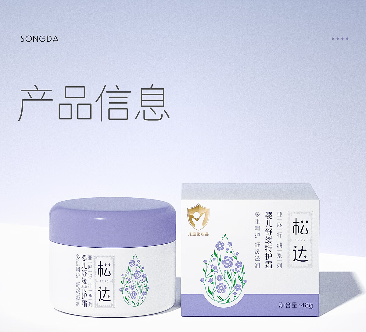 松达婴儿舒缓特护霜宝宝面霜亚麻籽油儿童特润霜口水膏润肤保湿 【轻薄质感】特护乳118g