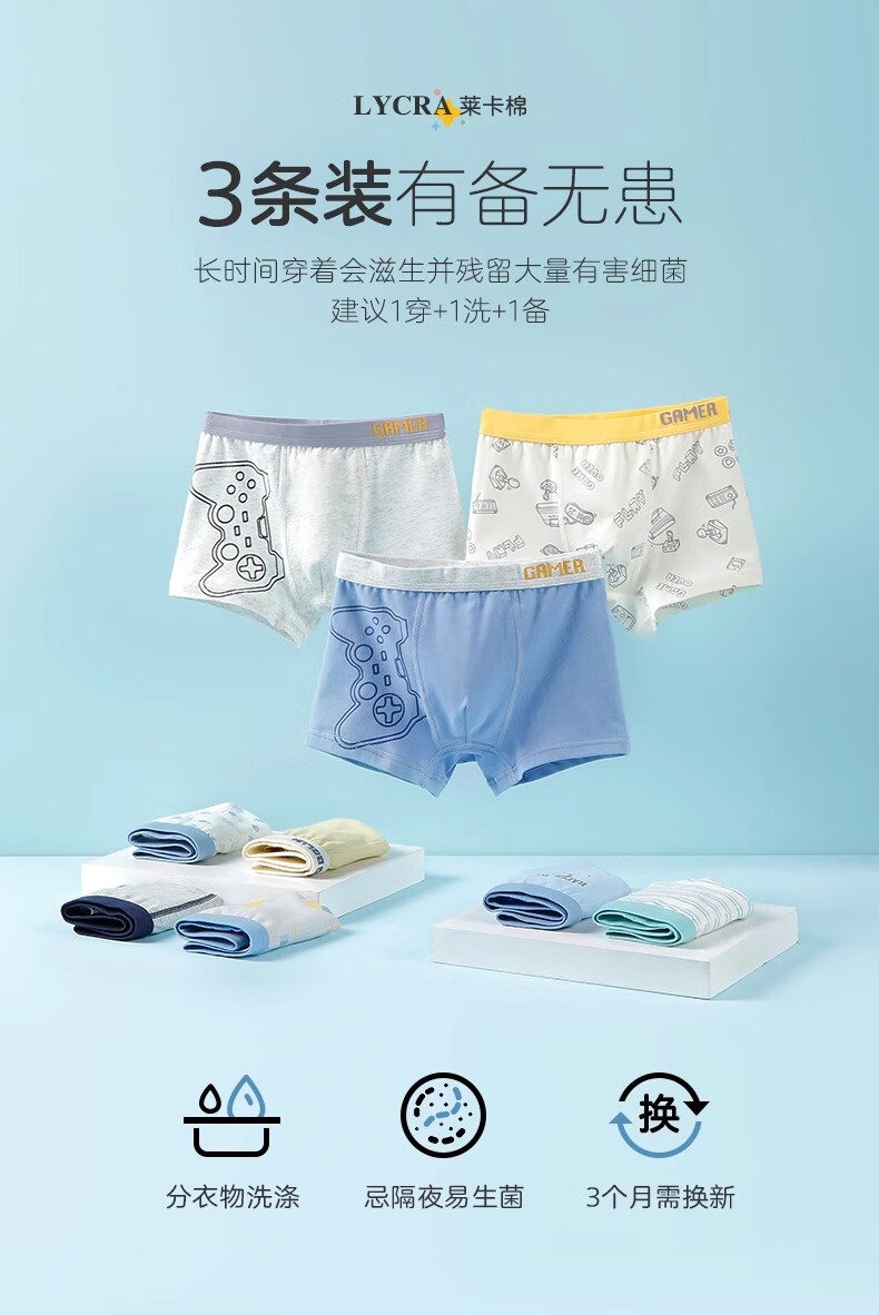 英博伦英博伦儿童内裤男童全棉平角四角纯棉青少年中大童男孩15073 150