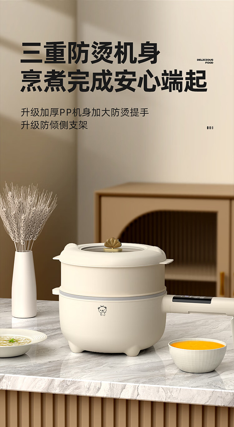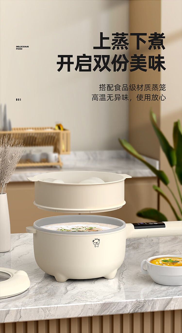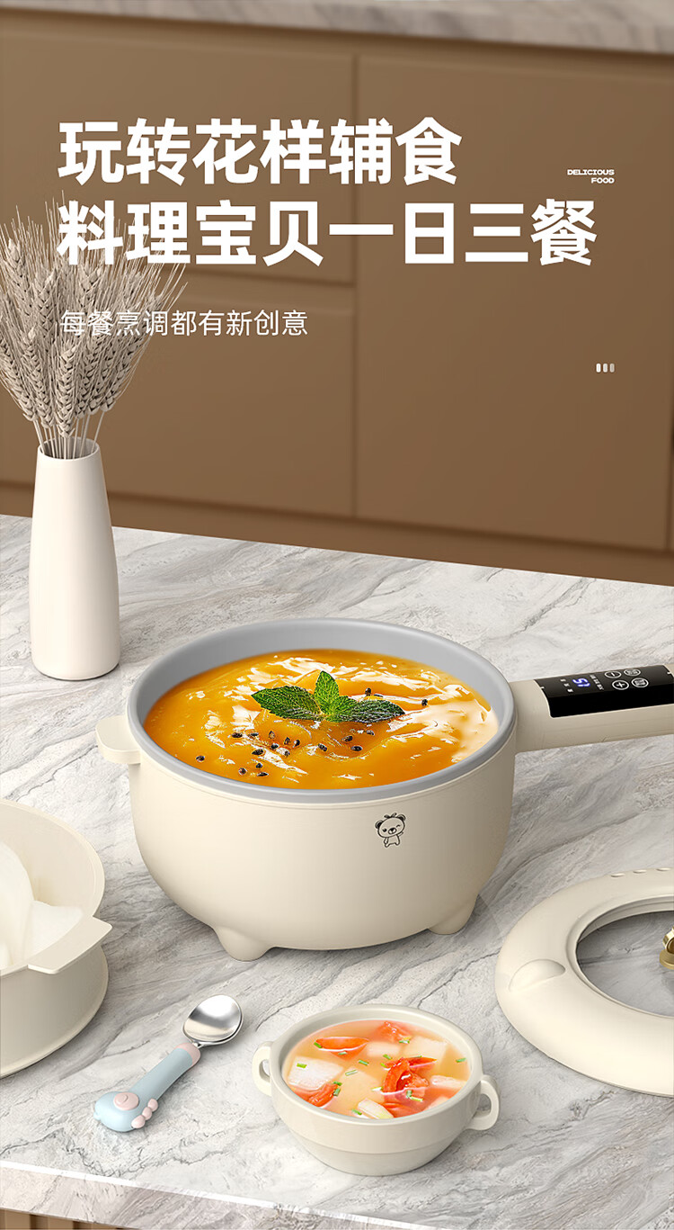 小贝熊电煮锅宝宝辅食小奶锅不沾婴儿专用多功能一体锅迷你料理锅电热火锅 机械款2L