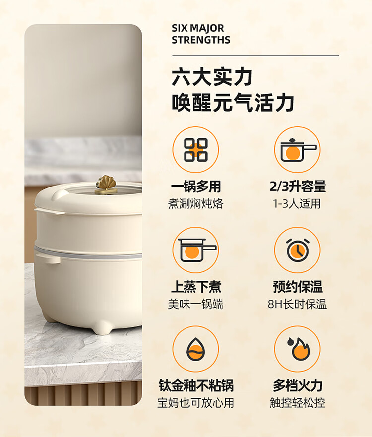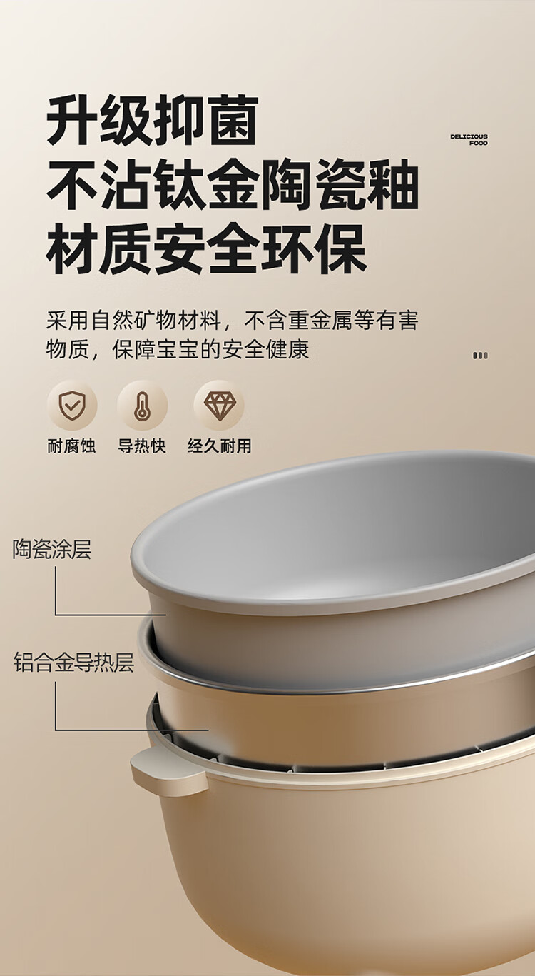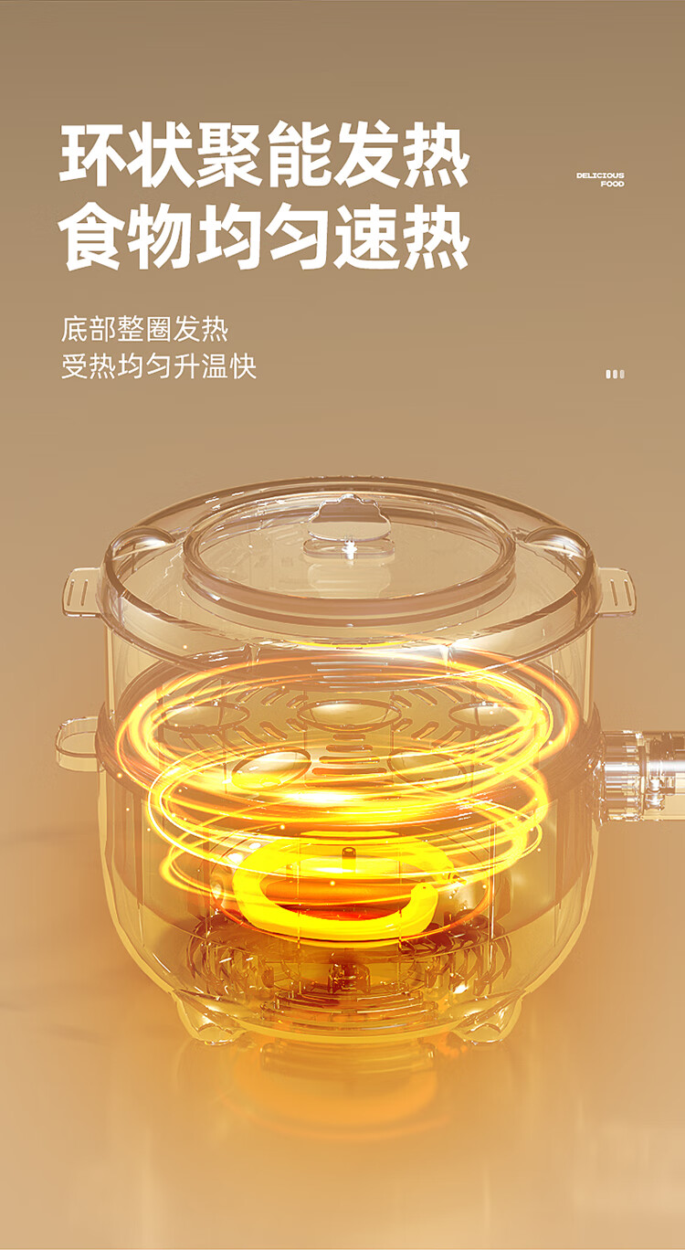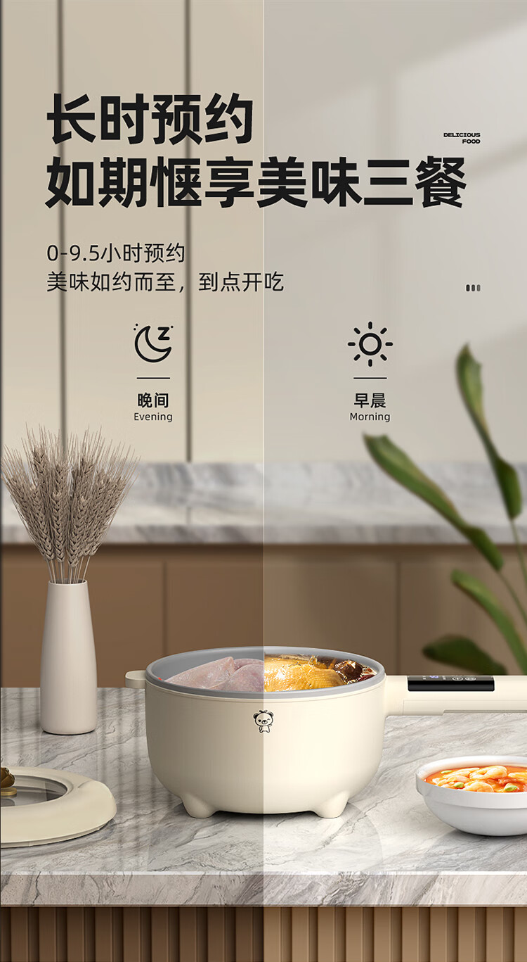 小贝熊电煮锅宝宝辅食小奶锅不沾婴儿专用多功能一体锅迷你料理锅电热火锅 机械款2L