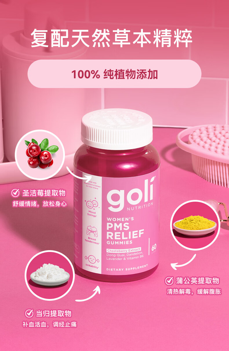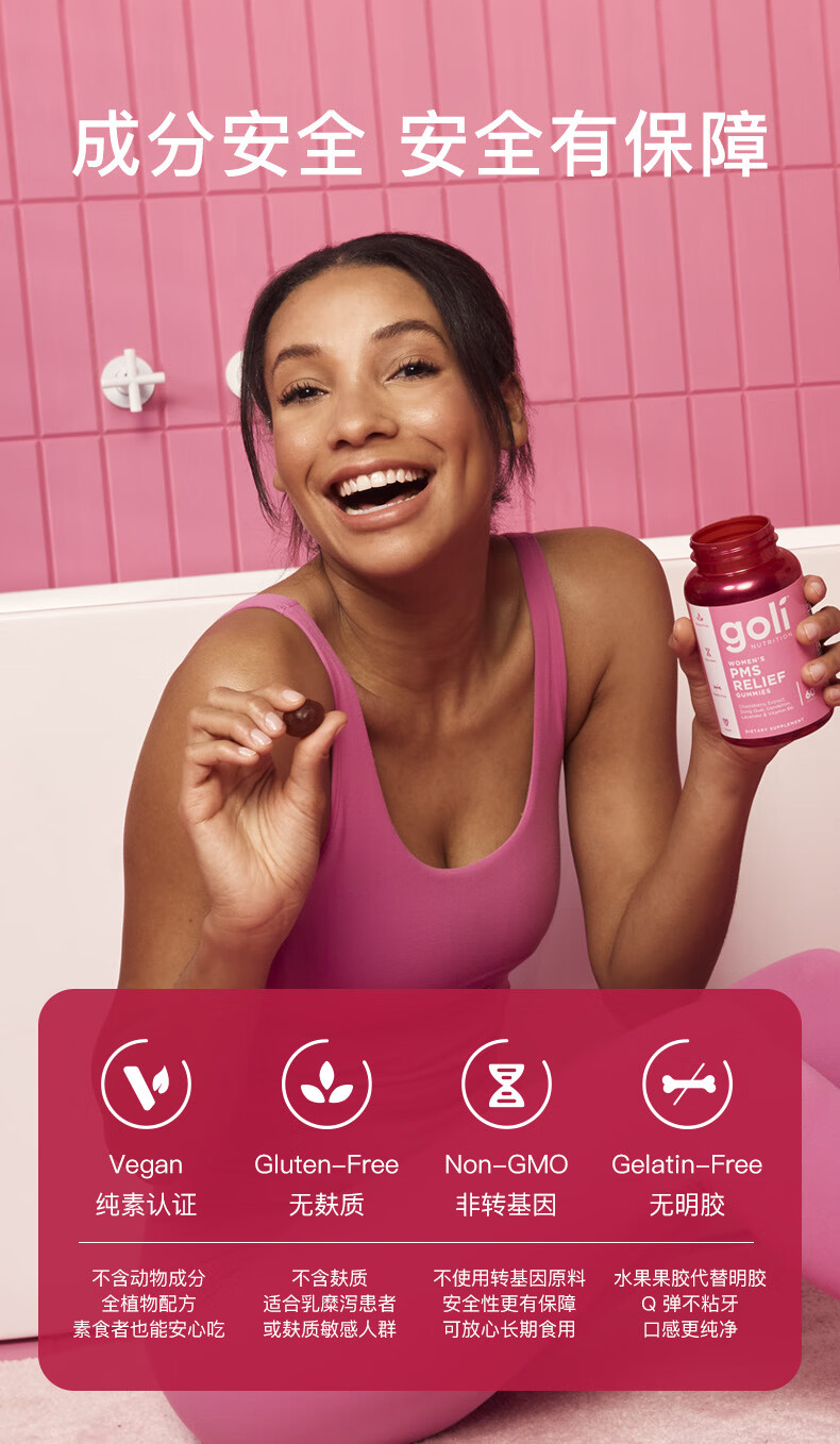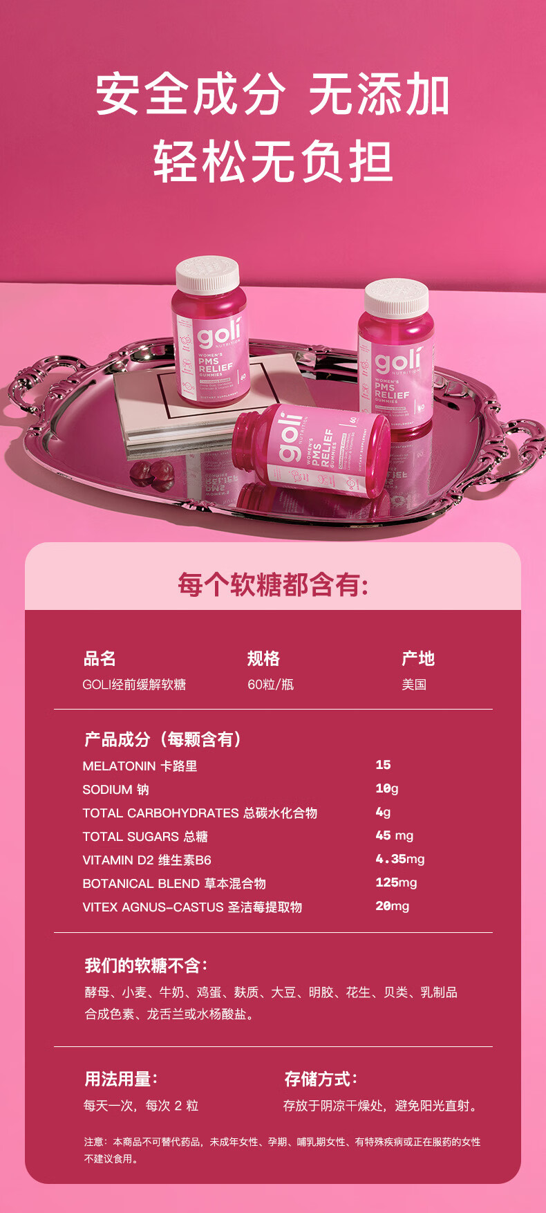 Goli女士经期舒缓软糖缓解经期阵痛体虚补充气血 60粒【美国进口】