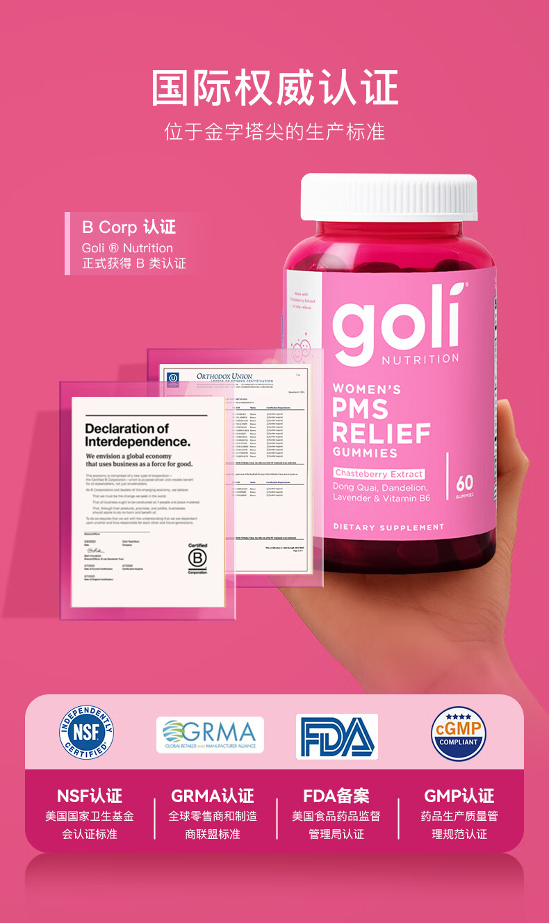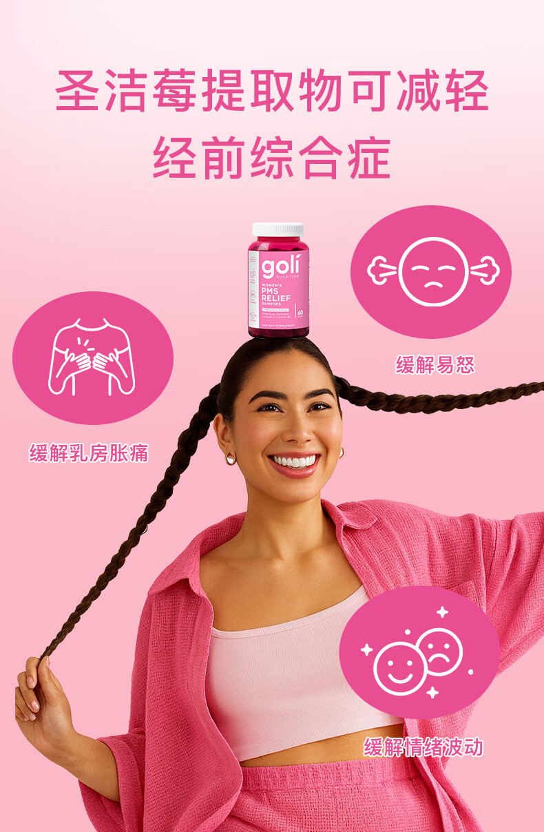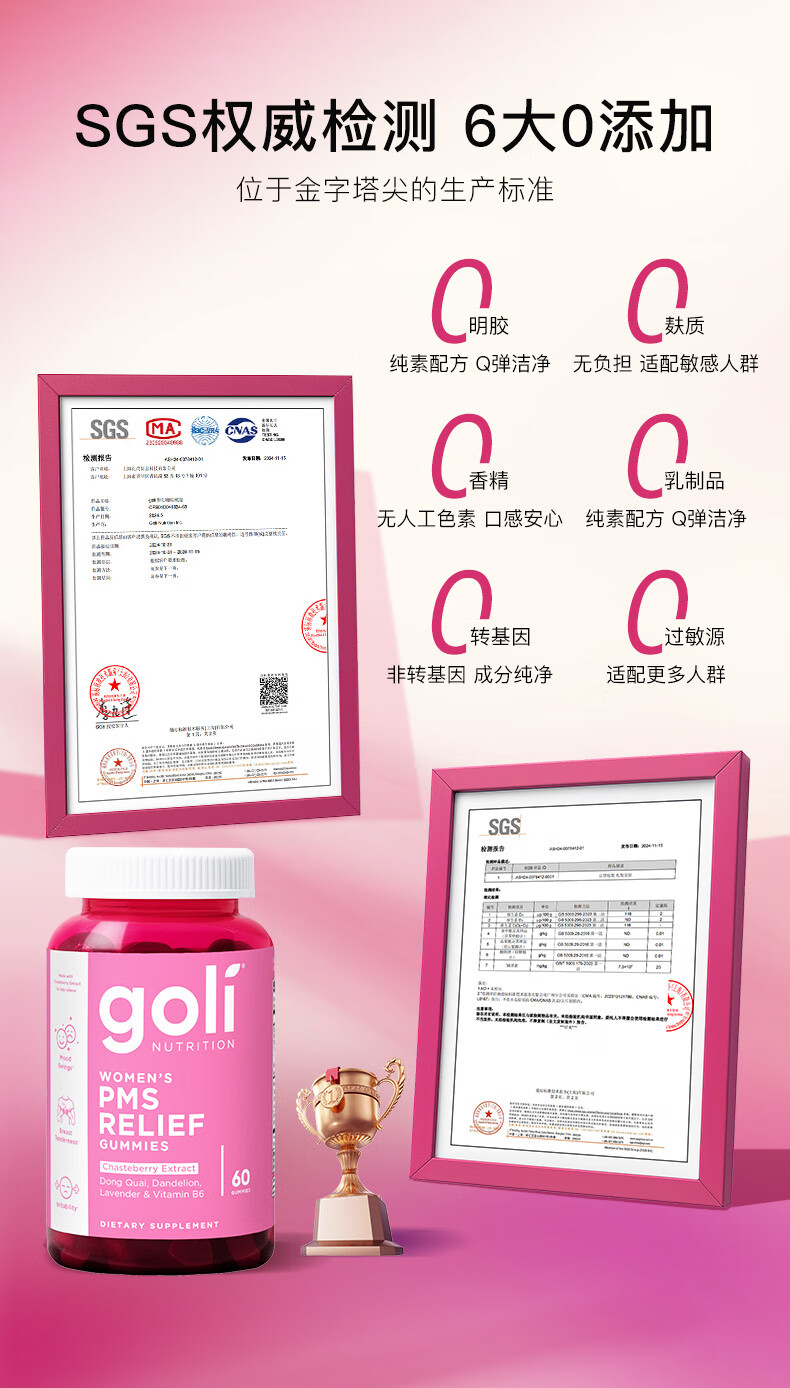 Goli女士经期舒缓软糖缓解经期阵痛体虚补充气血 60粒【美国进口】