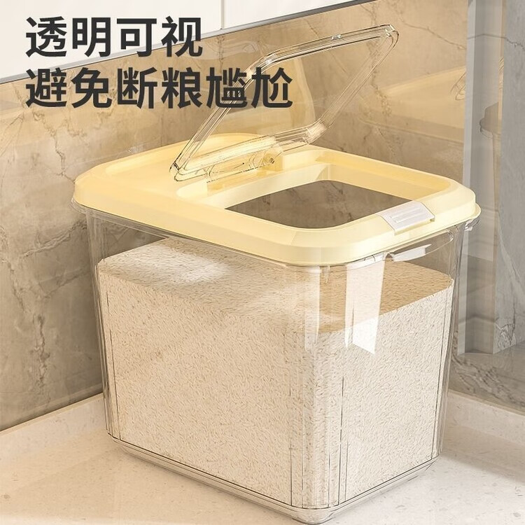 DEATKN米桶家用收纳防虫防潮密封食品级米缸米箱面粉储存罐大米收纳盒 【15斤奶油白透明米桶送米杯】 加厚款【食品级pp材质】