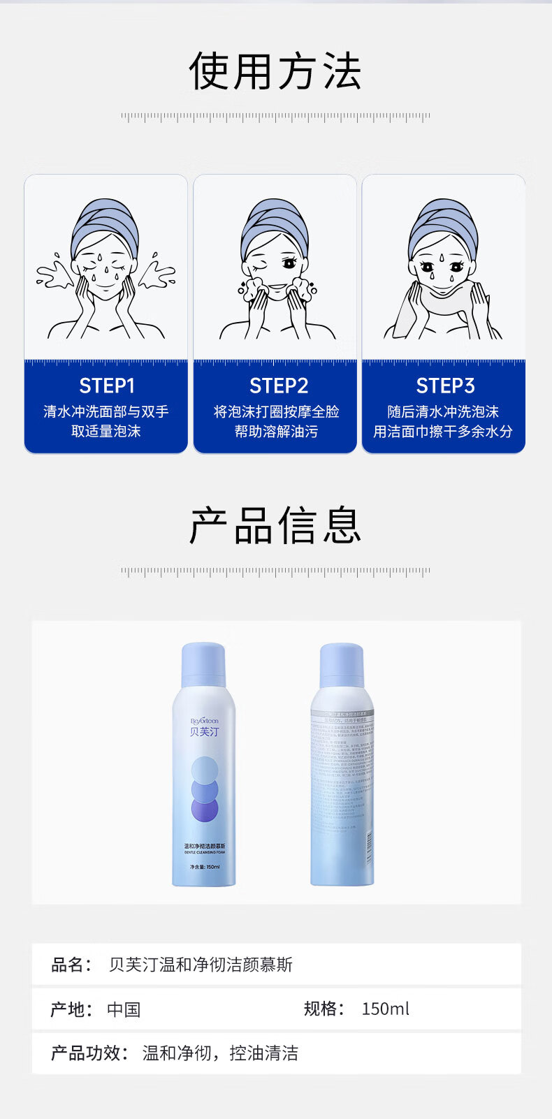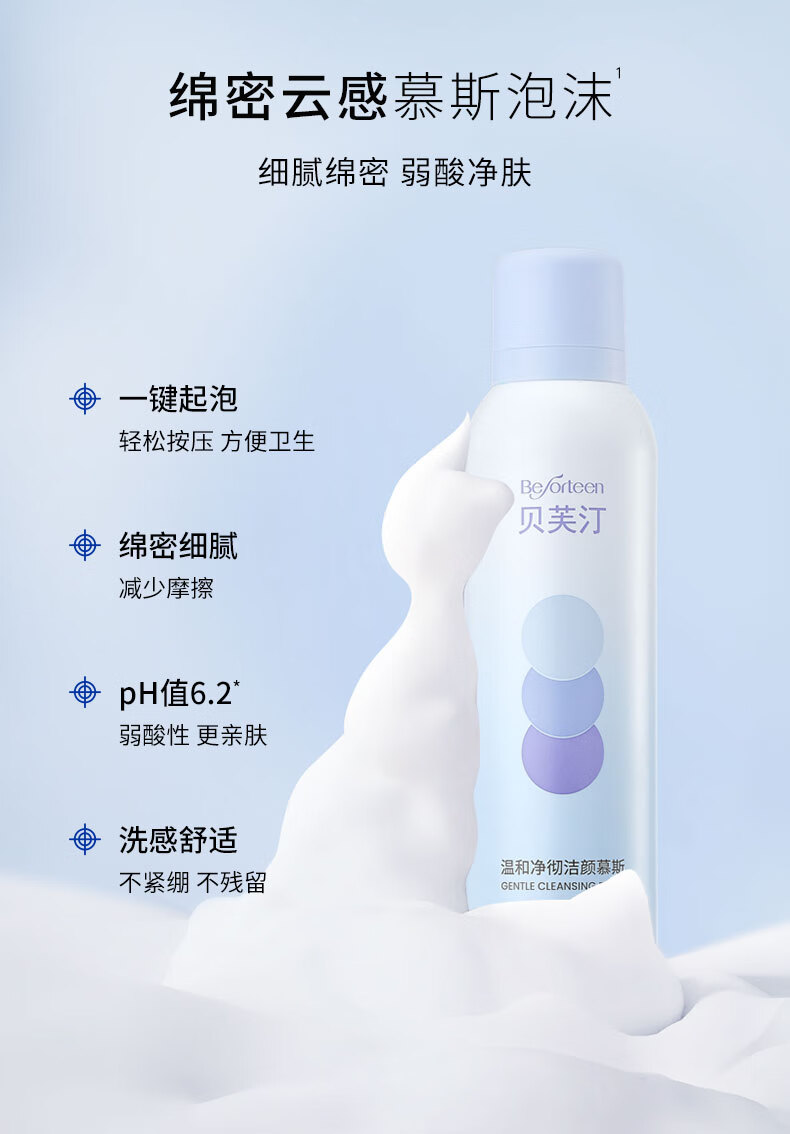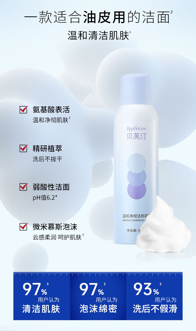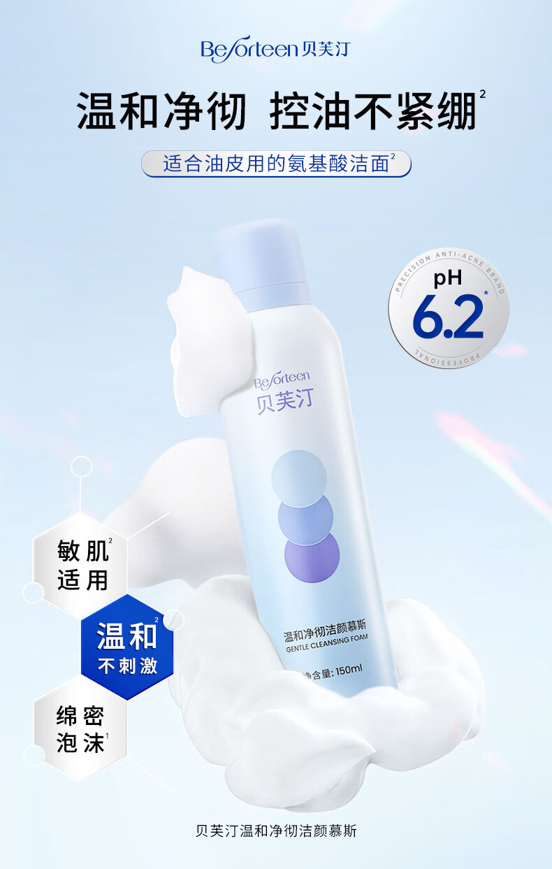 贝芙汀氨基酸洁面慕斯温和洁净清洁洗面奶净彻控油 1瓶(150ml)