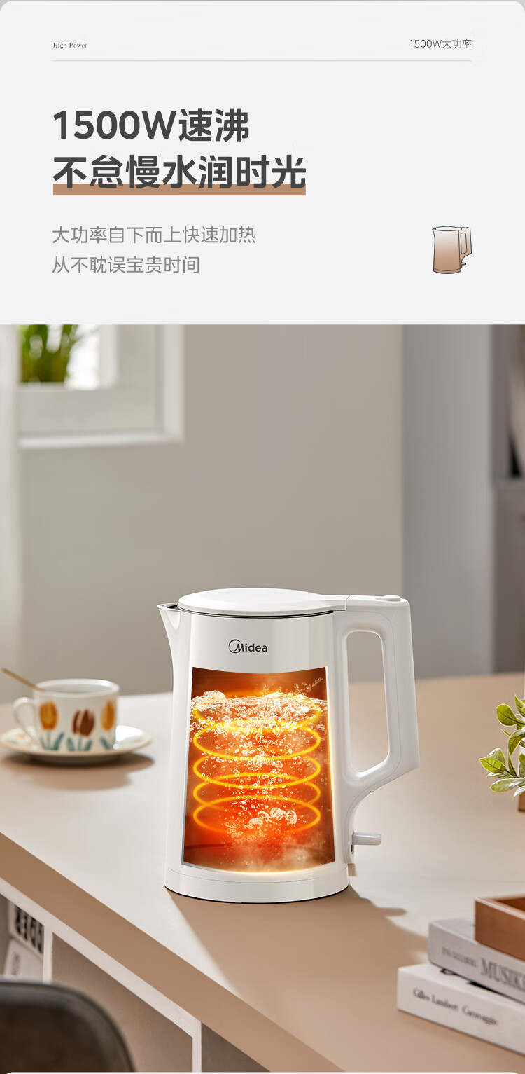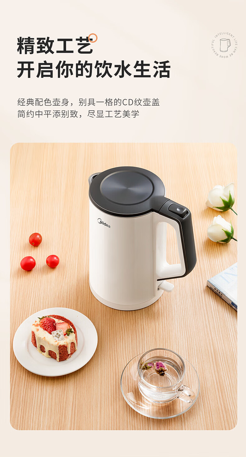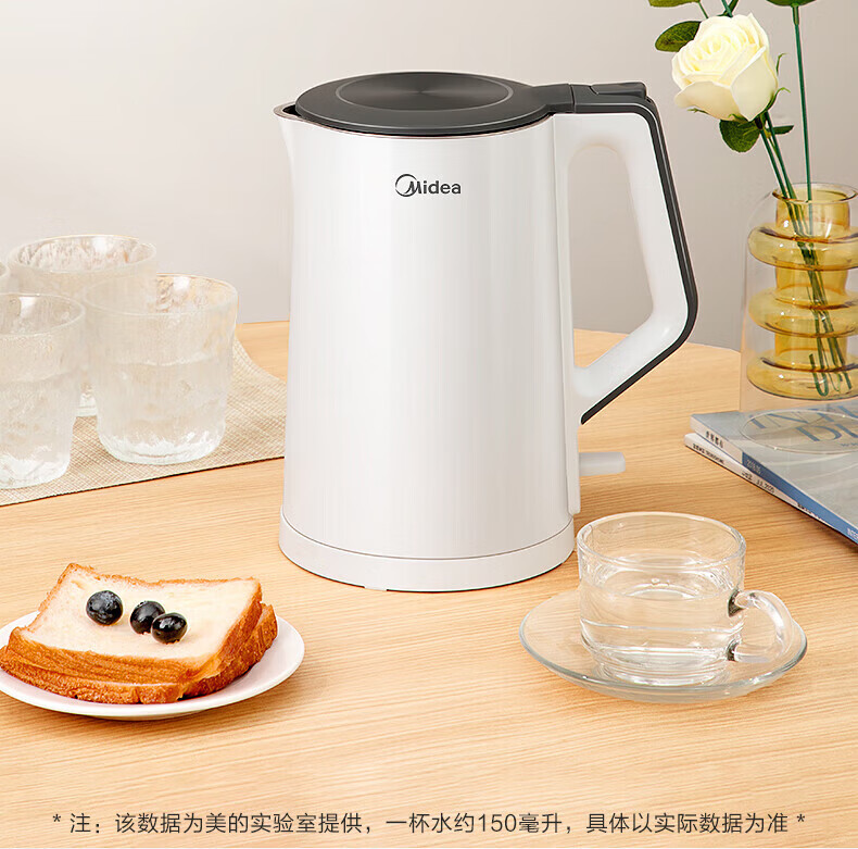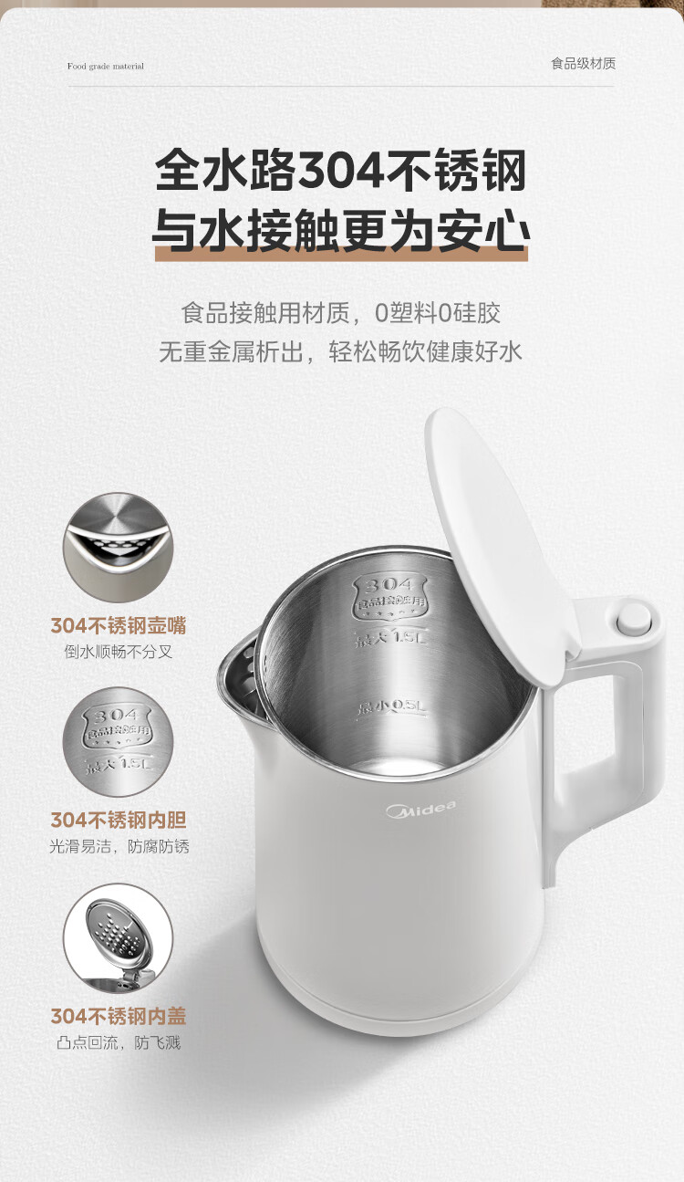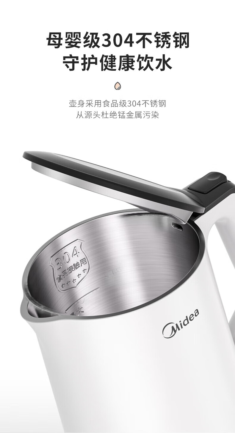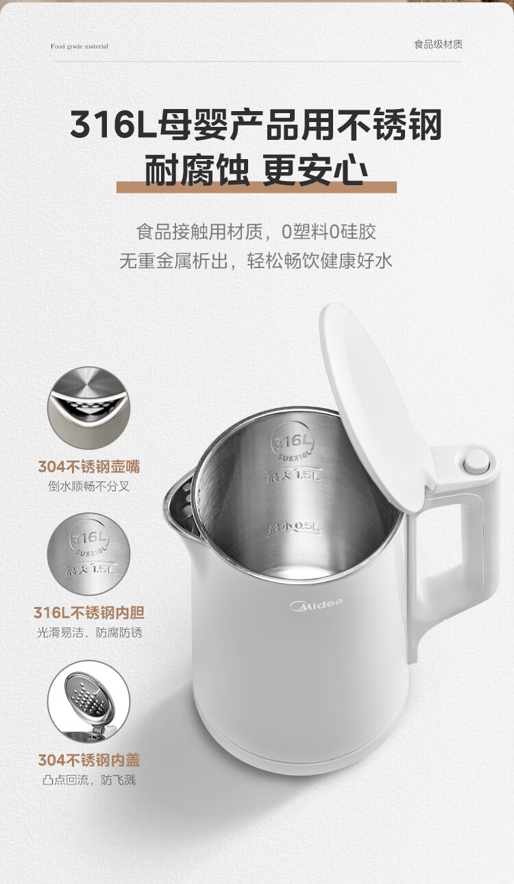 美的(Midea)电水壶热水壶加大容量 家用烧水壶304/316L不锈钢母婴级 烧水壶双层防烫内胆 1.5L 【健康新升级】316L不锈钢