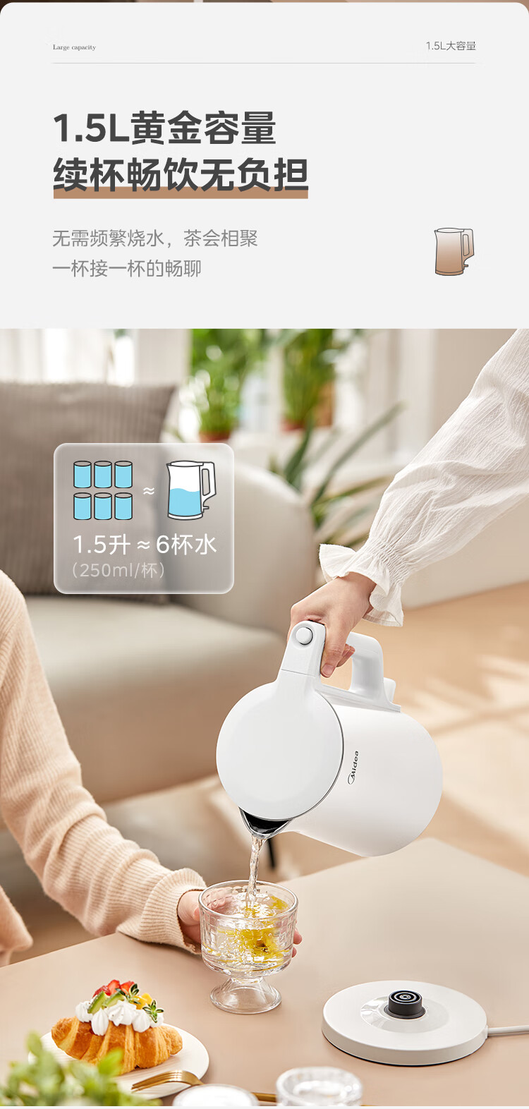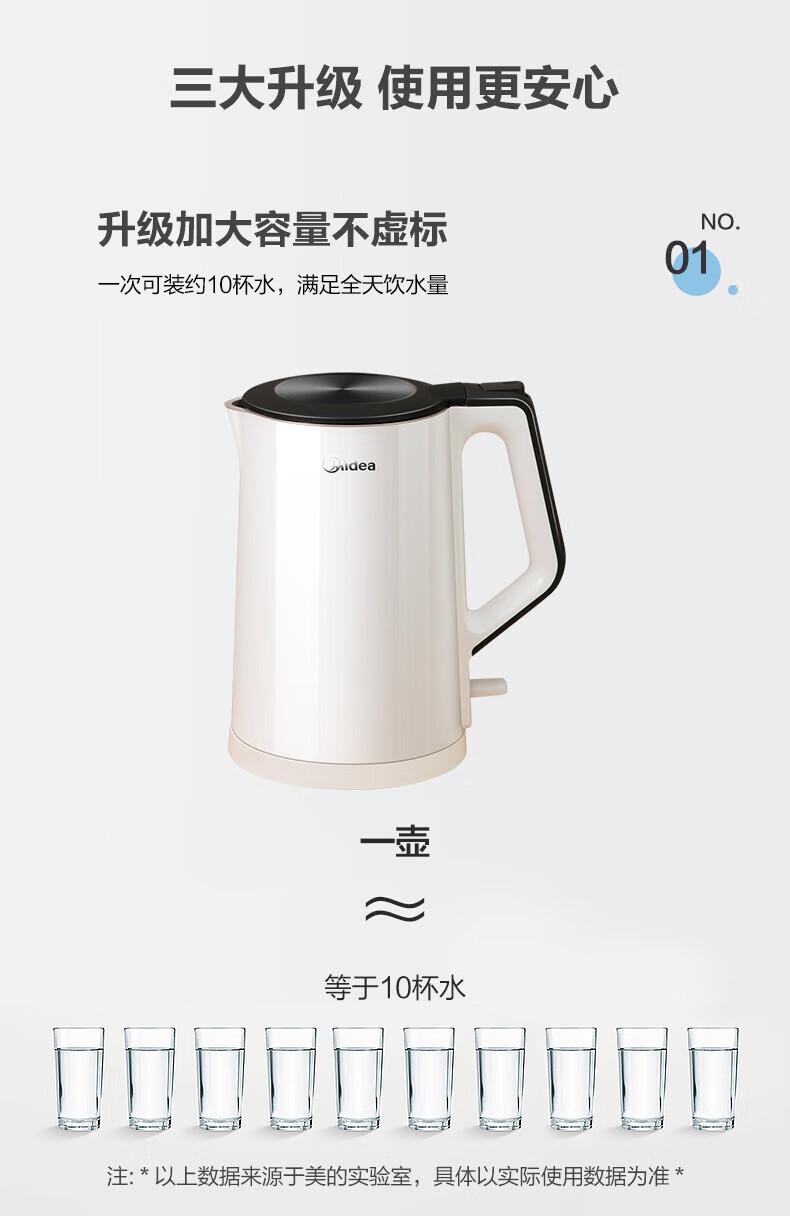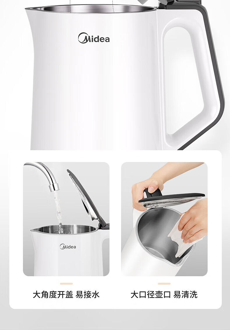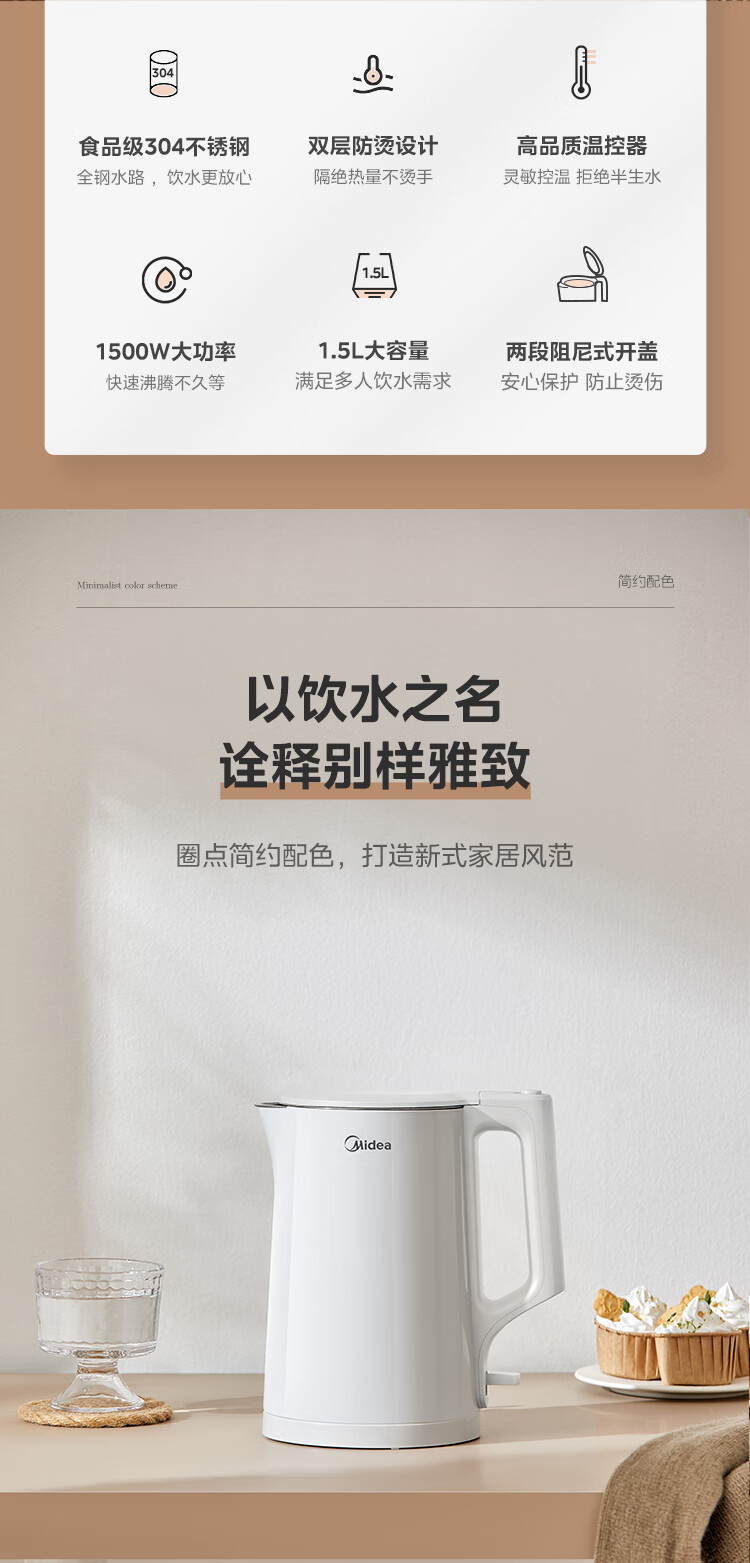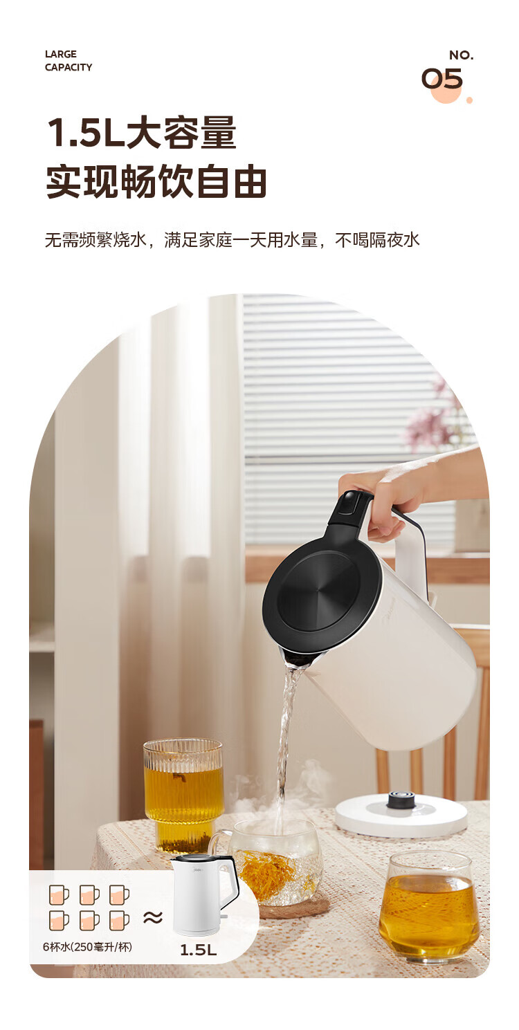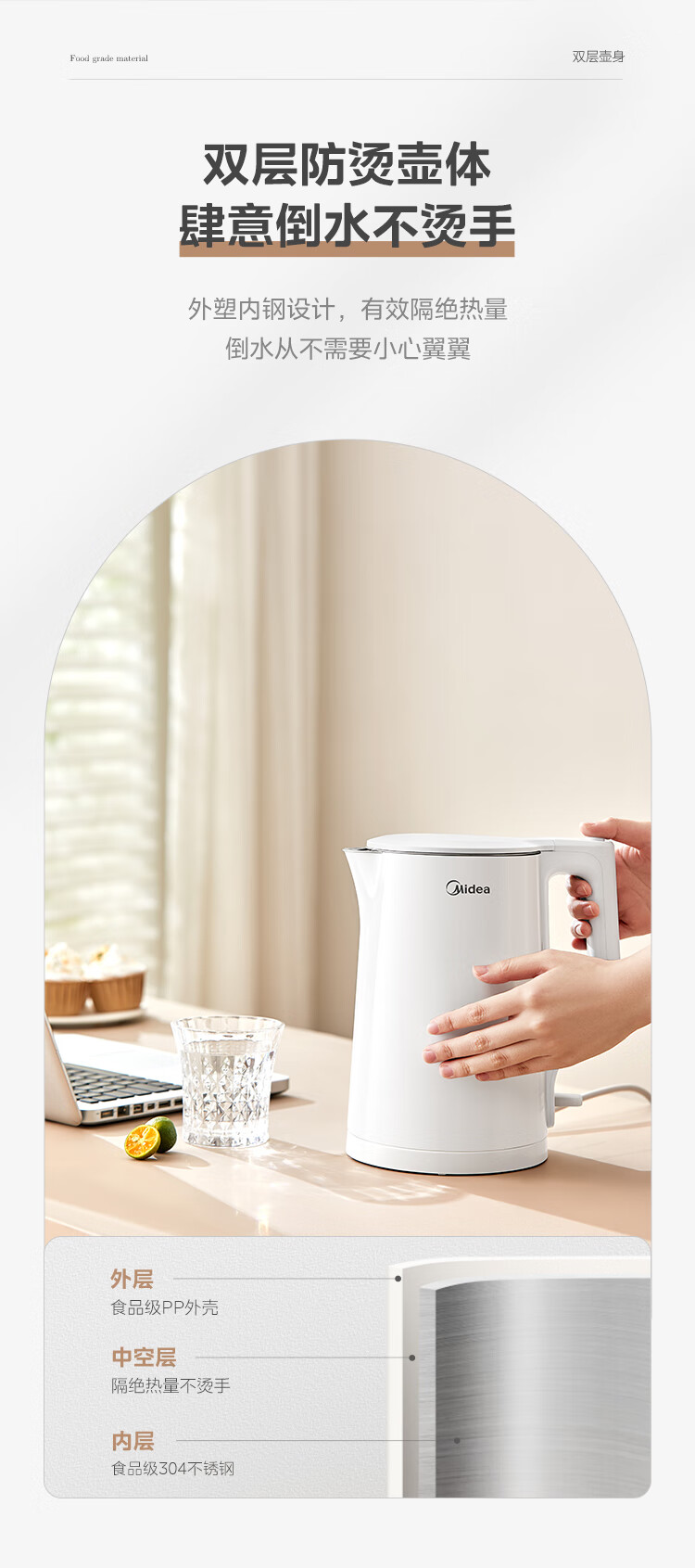 美的(Midea)电水壶热水壶加大容量 家用烧水壶304/316L不锈钢母婴级 烧水壶双层防烫内胆 1.5L 【健康新升级】316L不锈钢