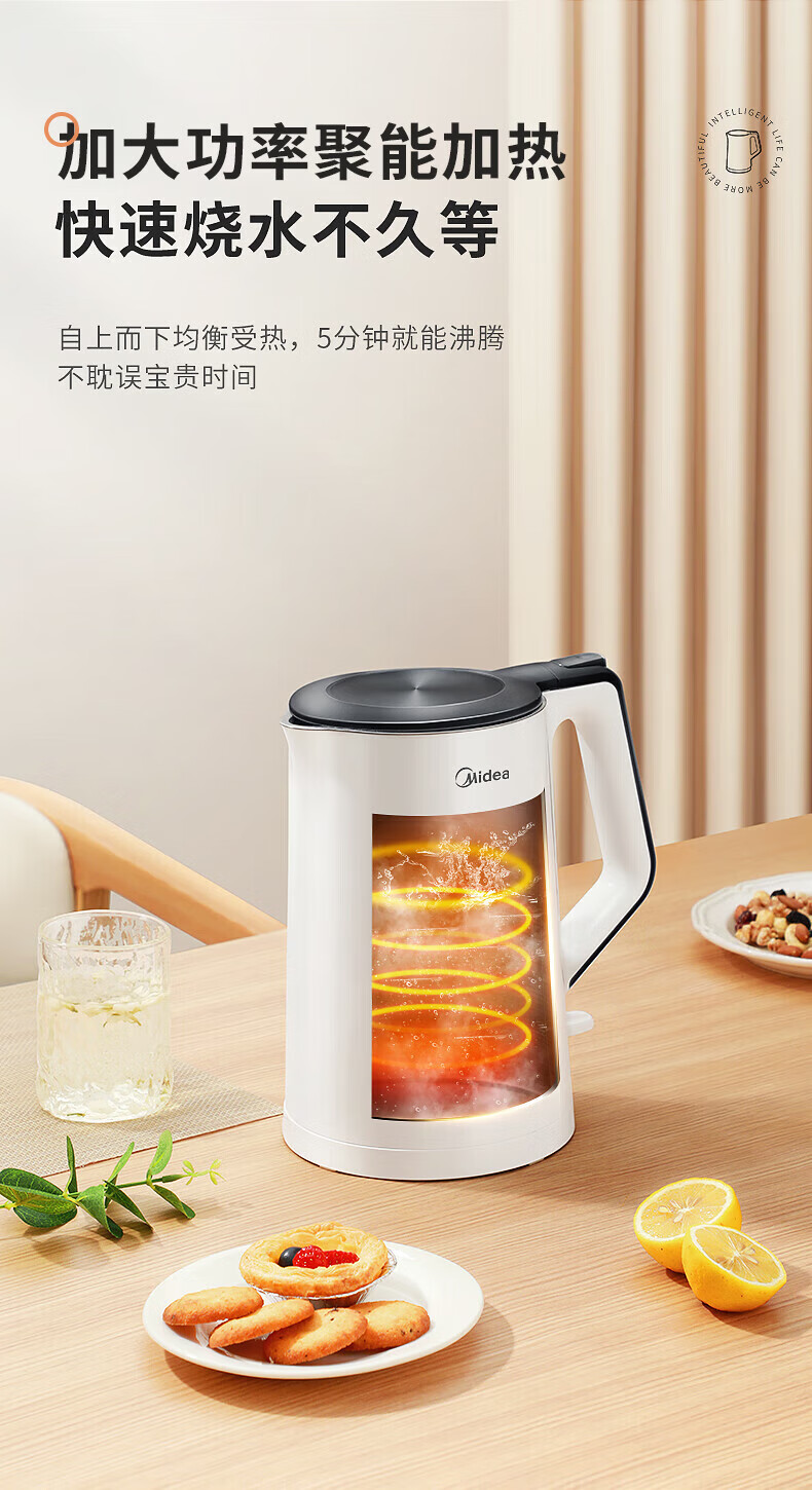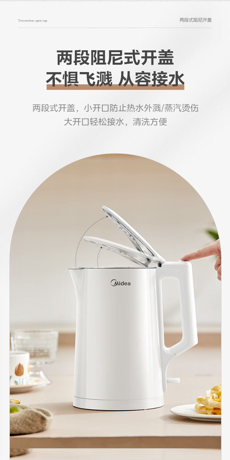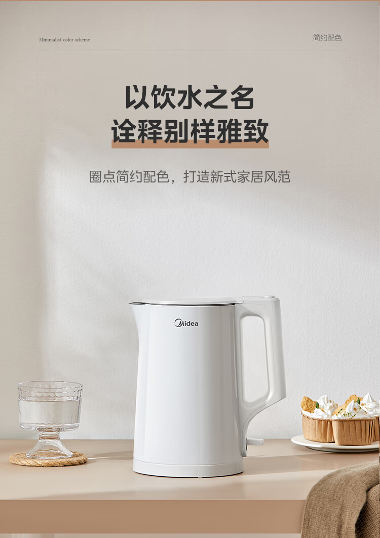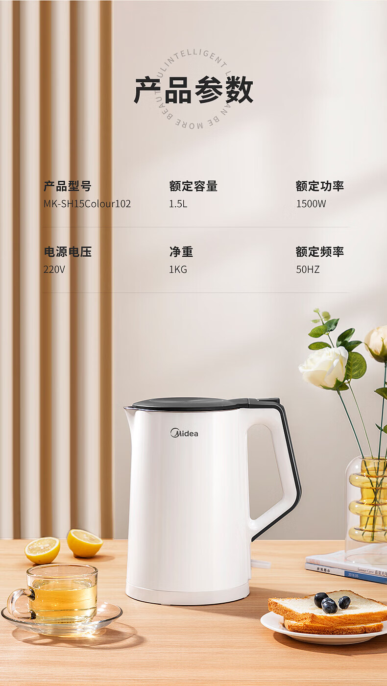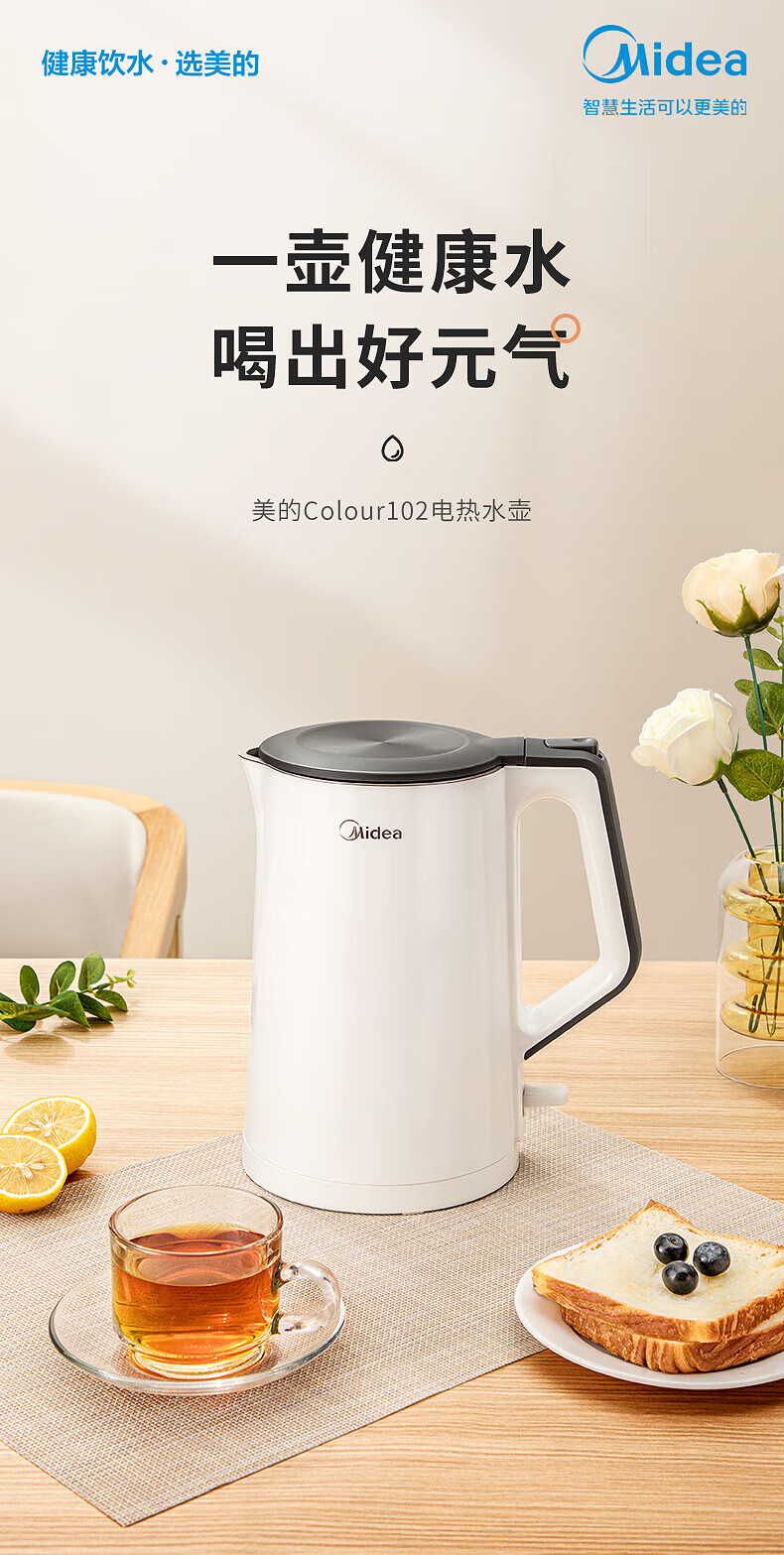 美的(Midea)电水壶热水壶加大容量 家用烧水壶304/316L不锈钢母婴级 烧水壶双层防烫内胆 1.5L 【健康新升级】316L不锈钢