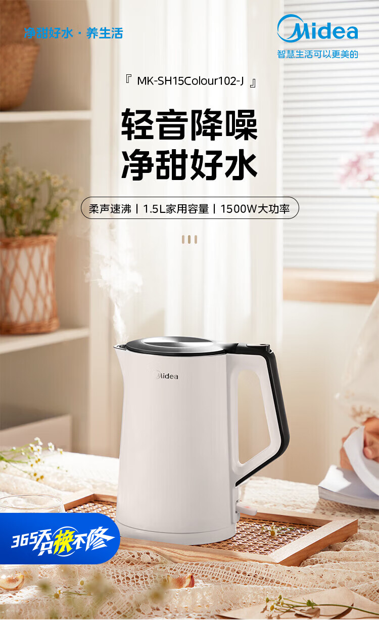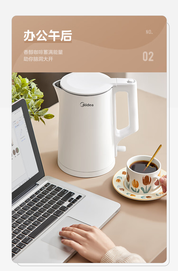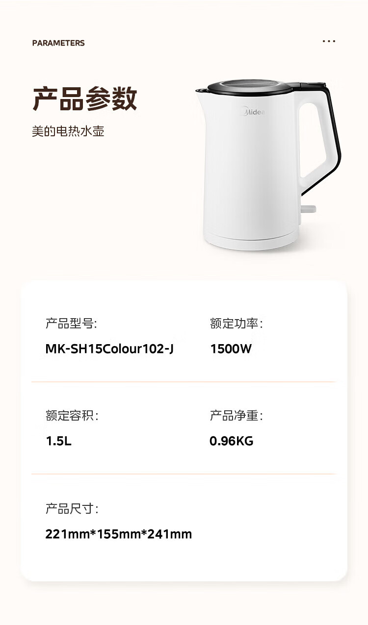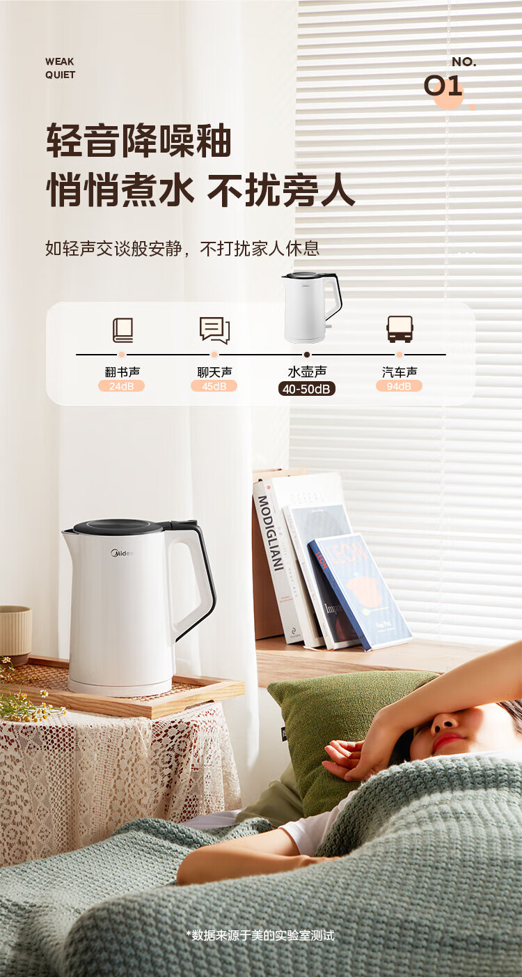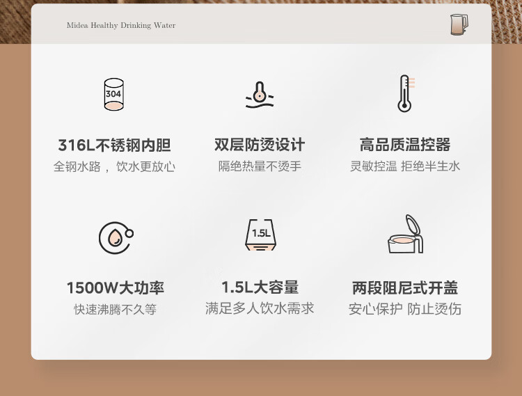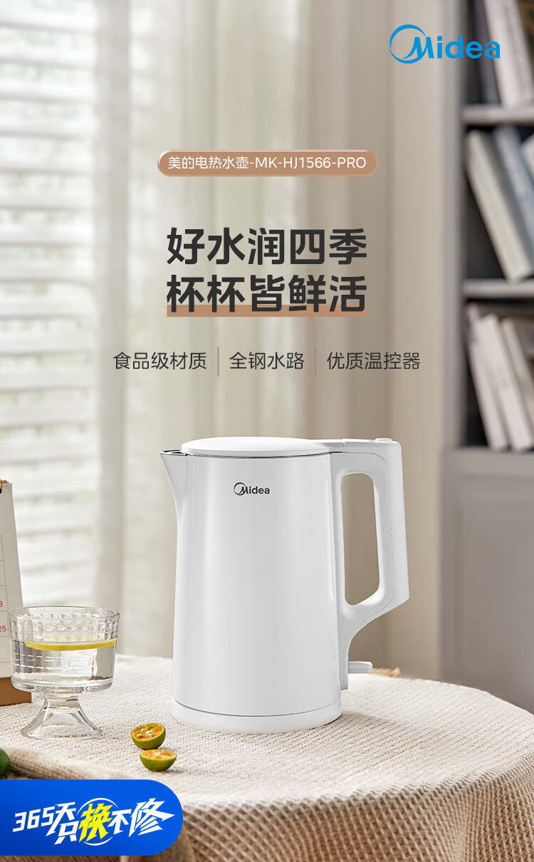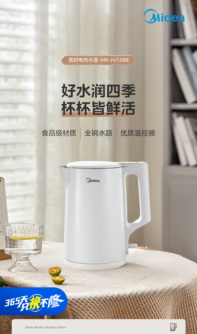美的(Midea)电水壶热水壶加大容量 家用烧水壶304/316L不锈钢母婴级 烧水壶双层防烫内胆 1.5L 【健康新升级】316L不锈钢