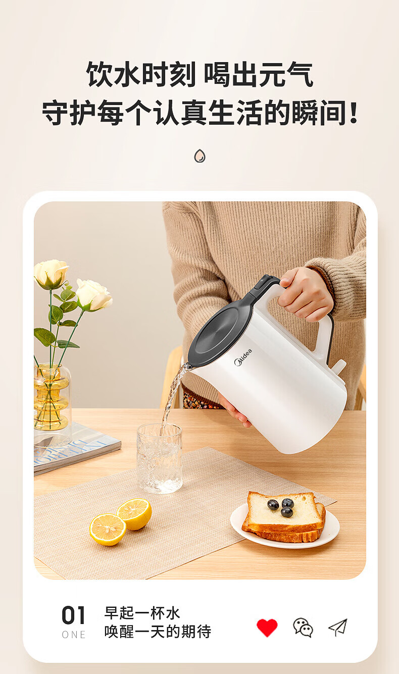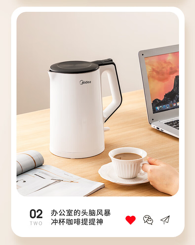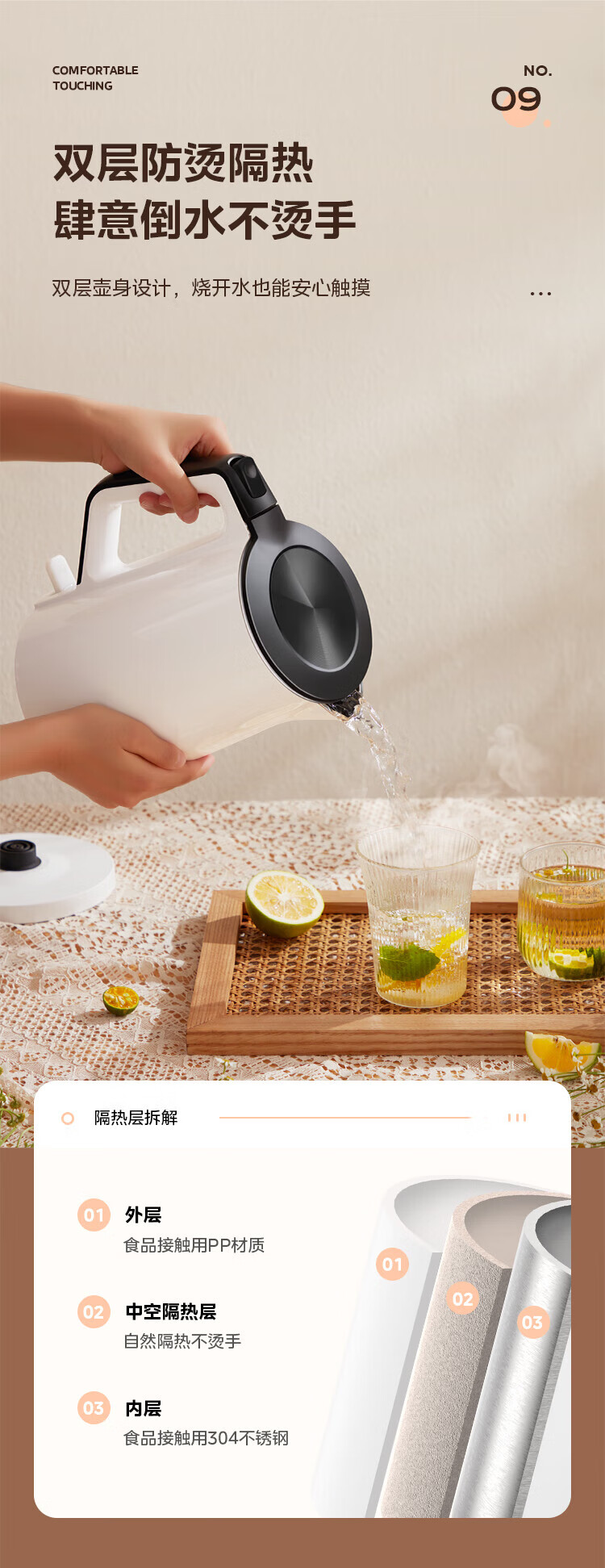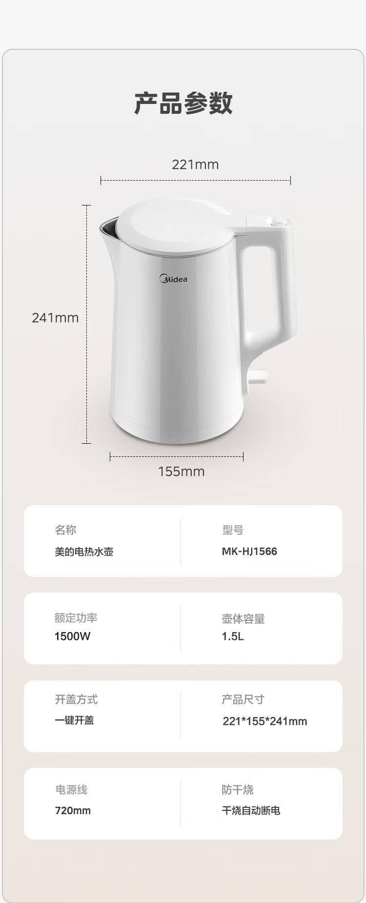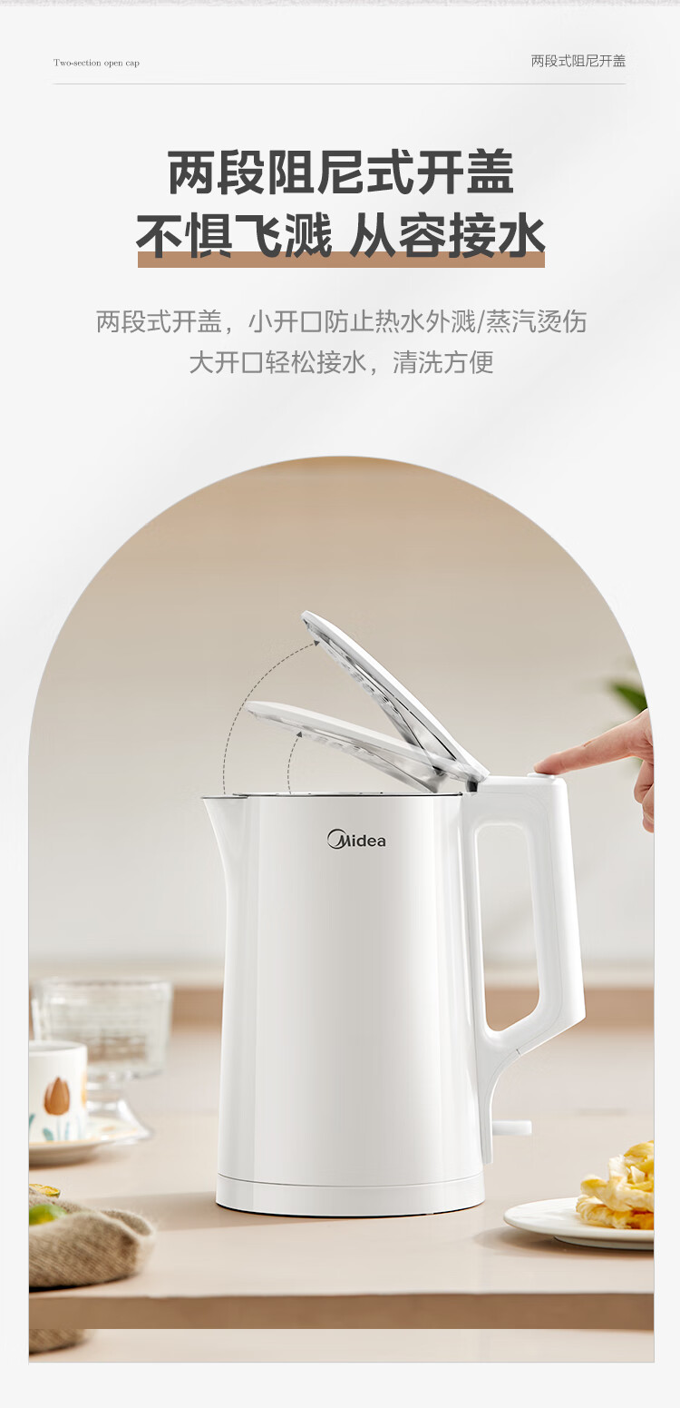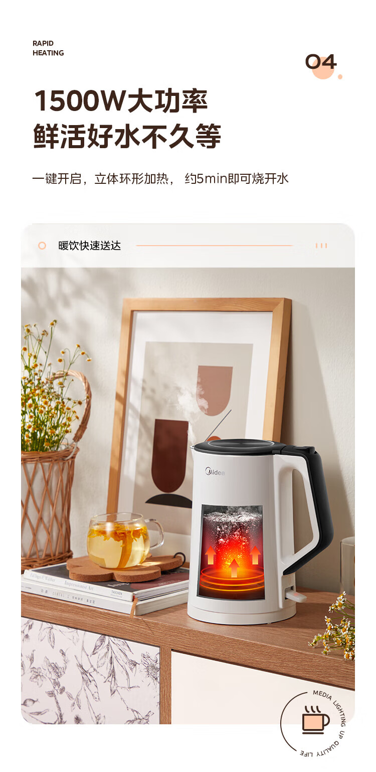 美的(Midea)电水壶热水壶加大容量 家用烧水壶304/316L不锈钢母婴级 烧水壶双层防烫内胆 1.5L 【健康新升级】316L不锈钢