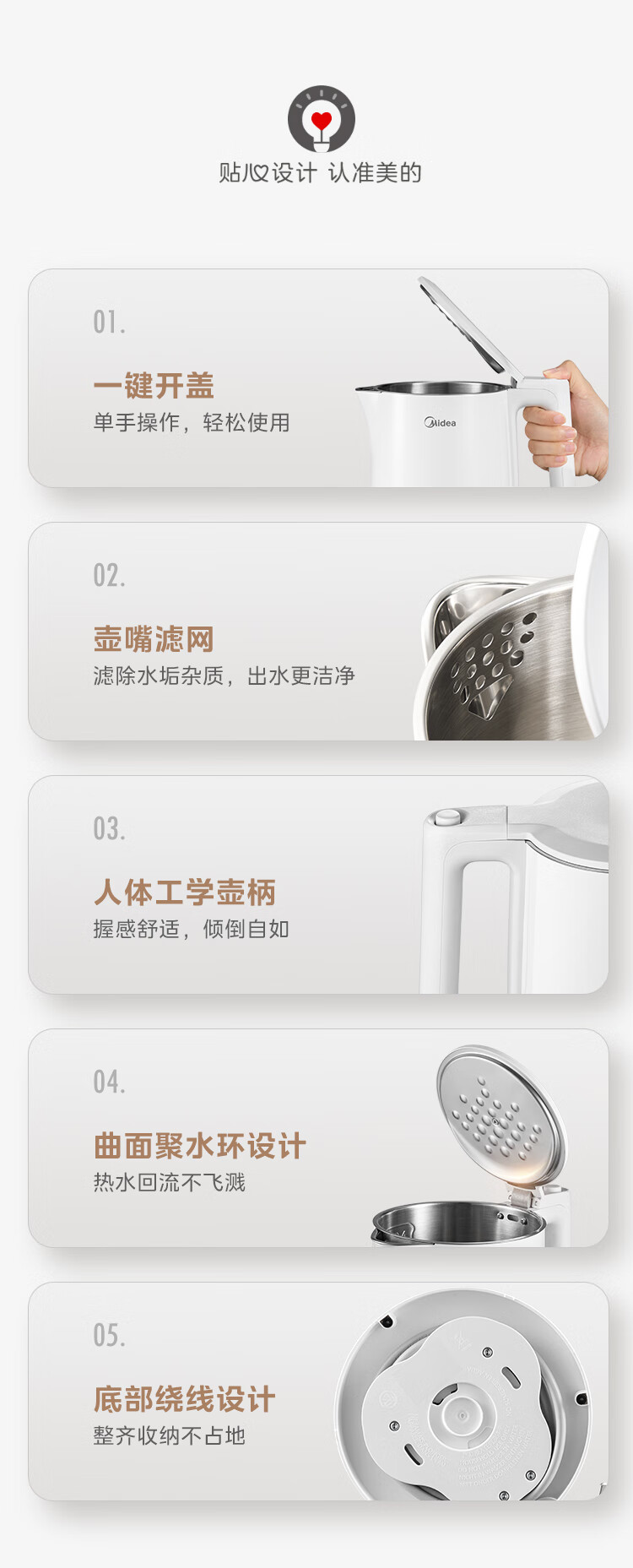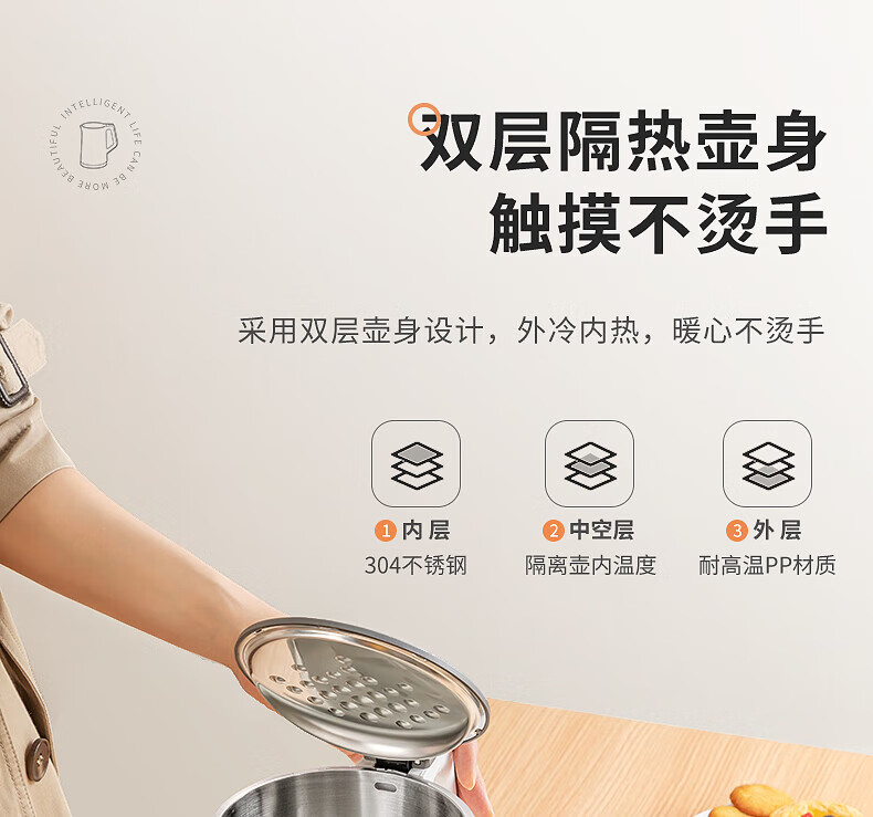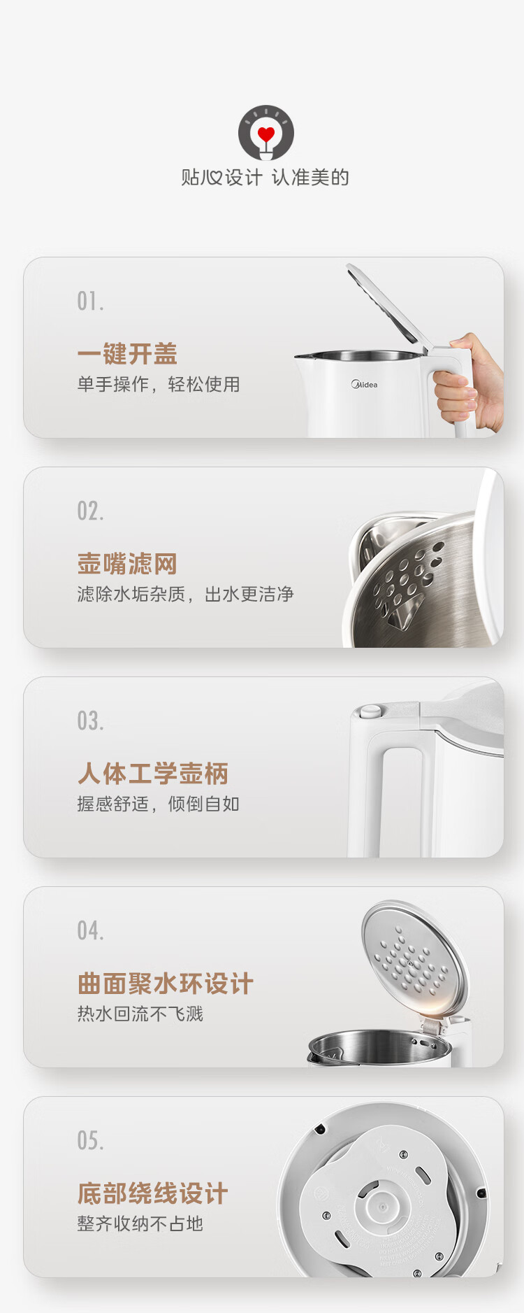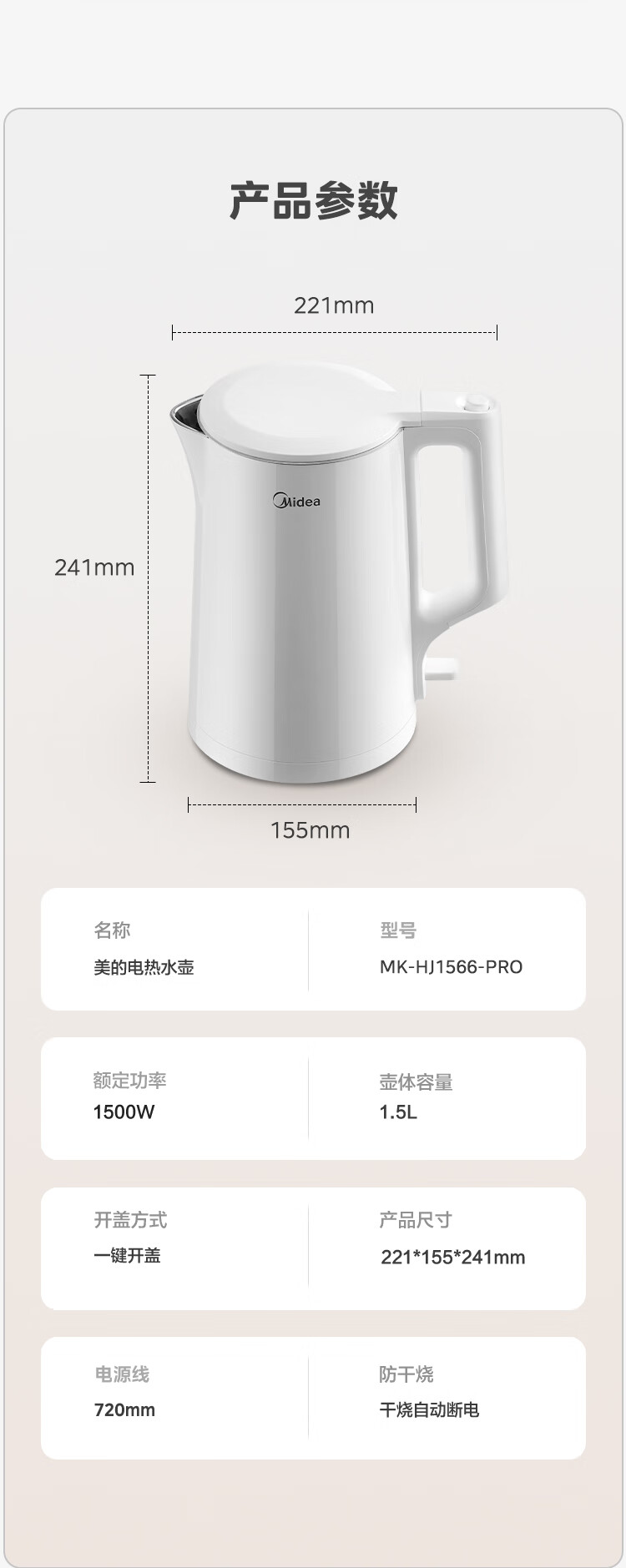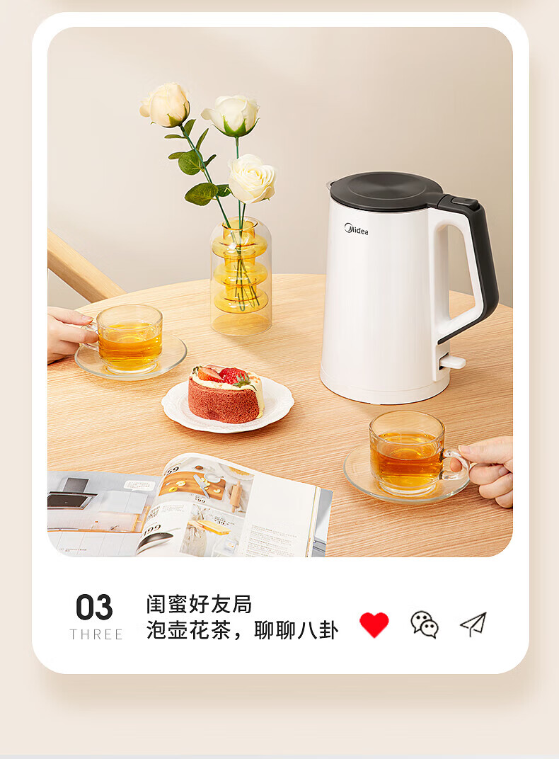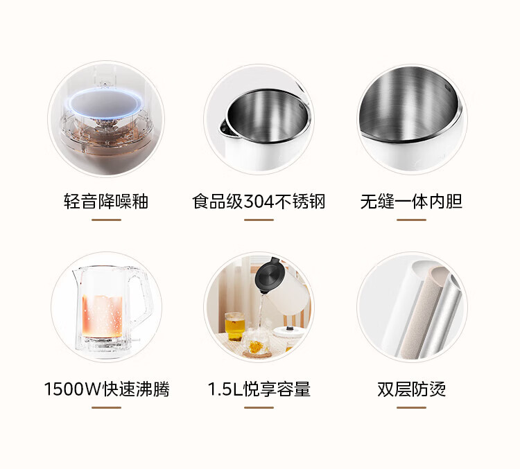 美的(Midea)电水壶热水壶加大容量 家用烧水壶304/316L不锈钢母婴级 烧水壶双层防烫内胆 1.5L 【健康新升级】316L不锈钢