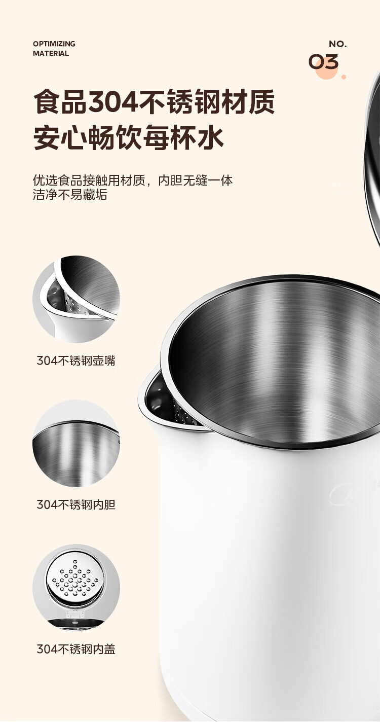 SPOUNR正品苏泊电水水壶家用304不锈钢保温一体烧水壶自动断电热开水壶 3L 升级款[彩钢金-304加厚+保温]