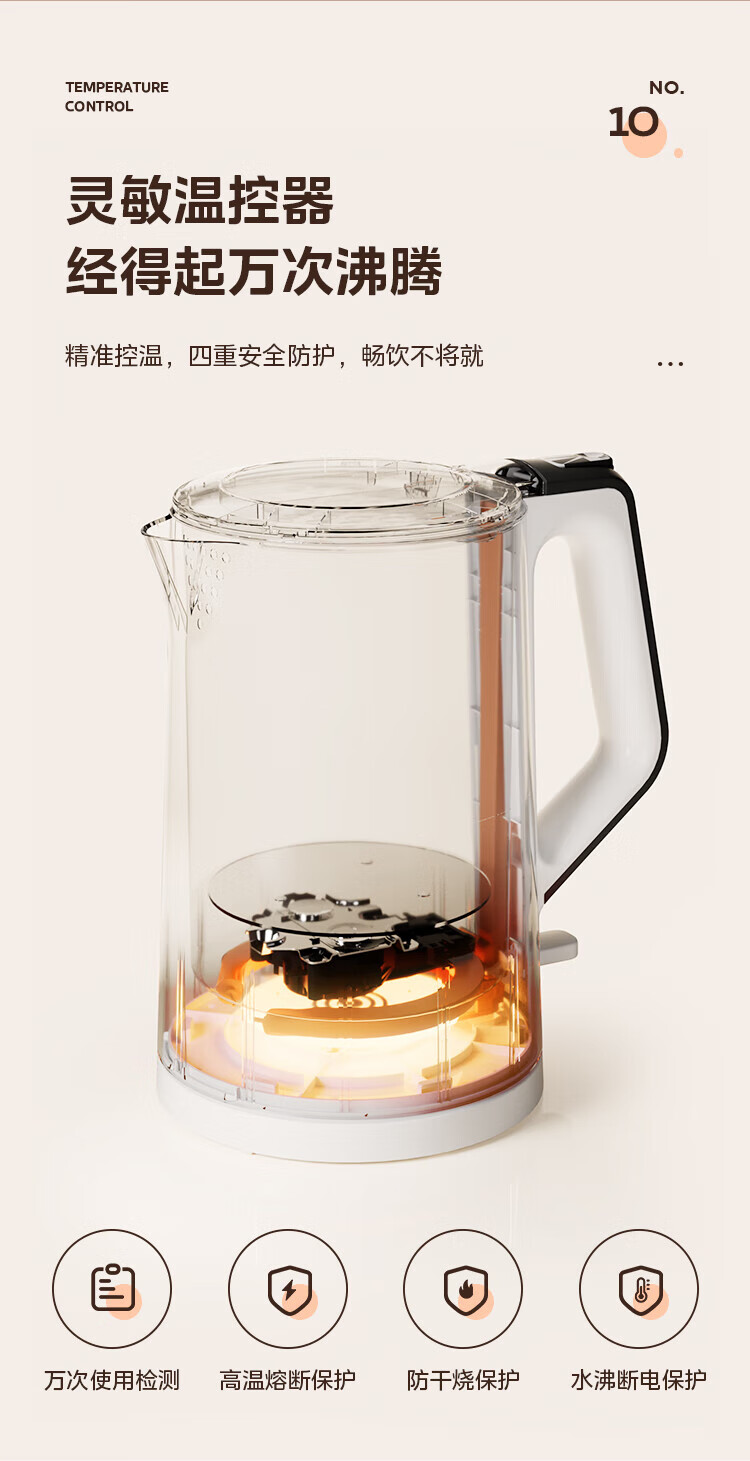 SPOUNR正品苏泊烧水壶2025新款家用保温一体自动断电泡茶煮开电热水壶 3L 豪华版[金色-智能保温]保三年