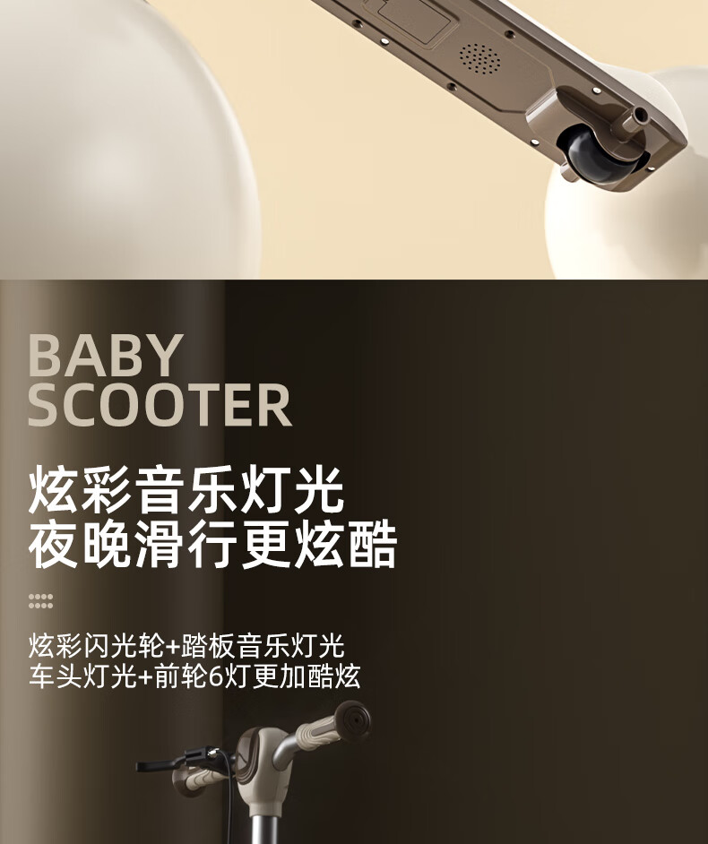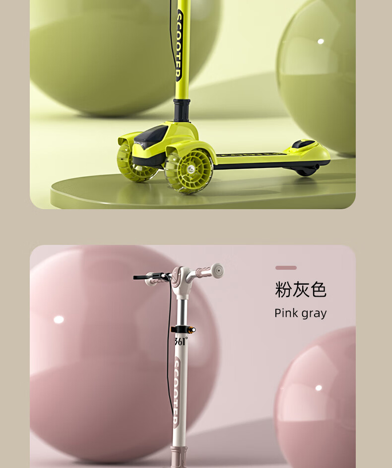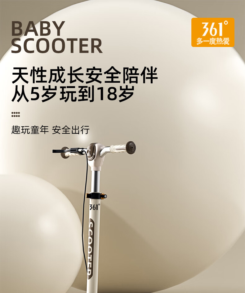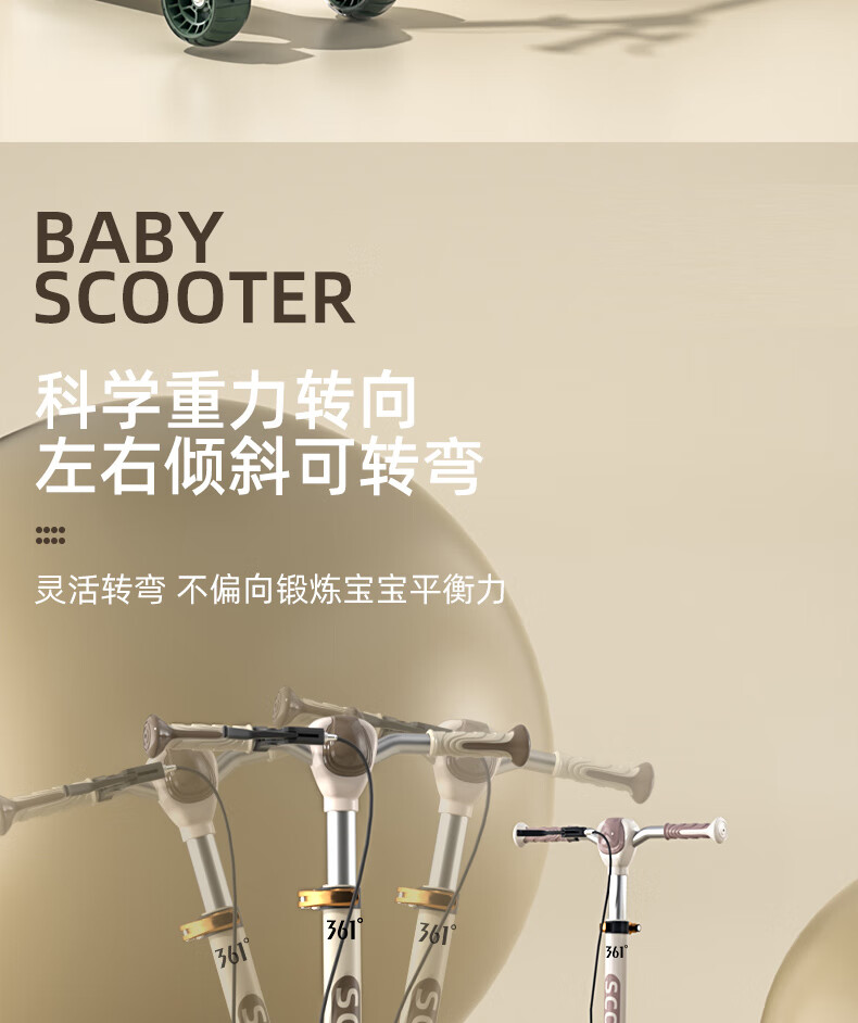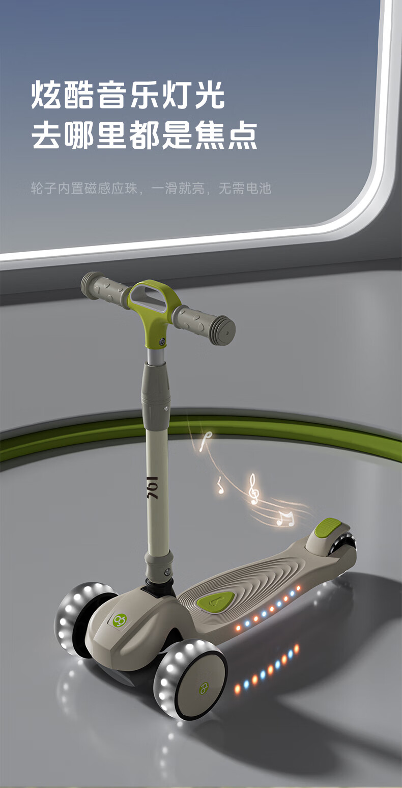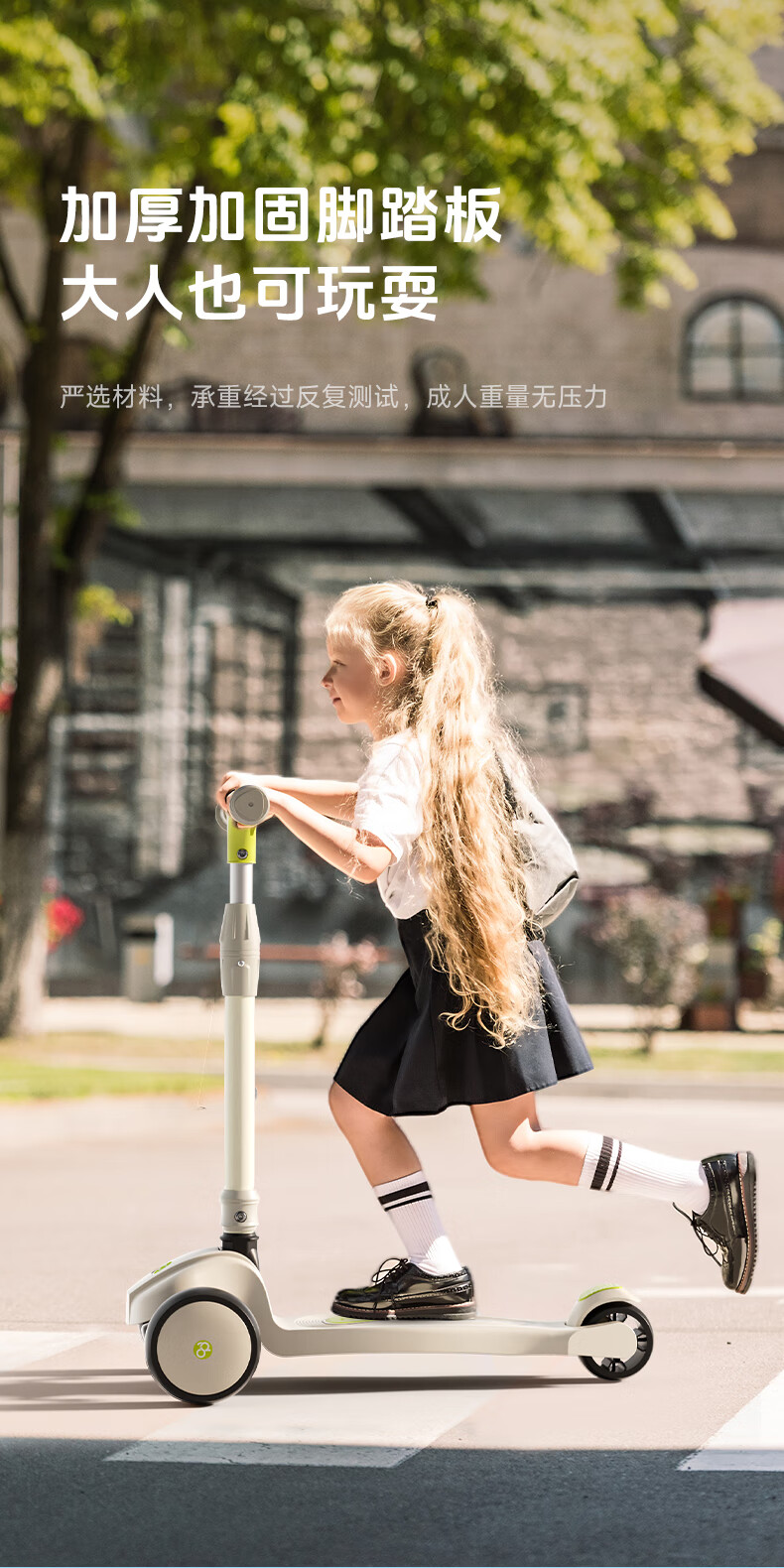 361°大儿童滑板车5-6-10-18岁男女孩滑行踏板车遛娃神器节日礼物双刹 高雅灰-免安装/双剎车/音乐 灯光