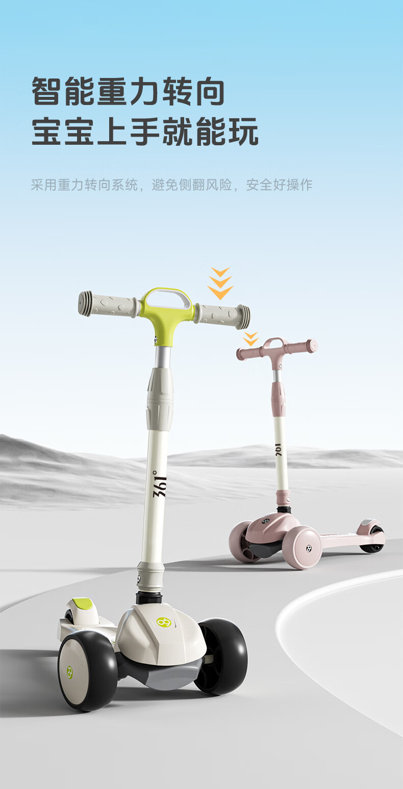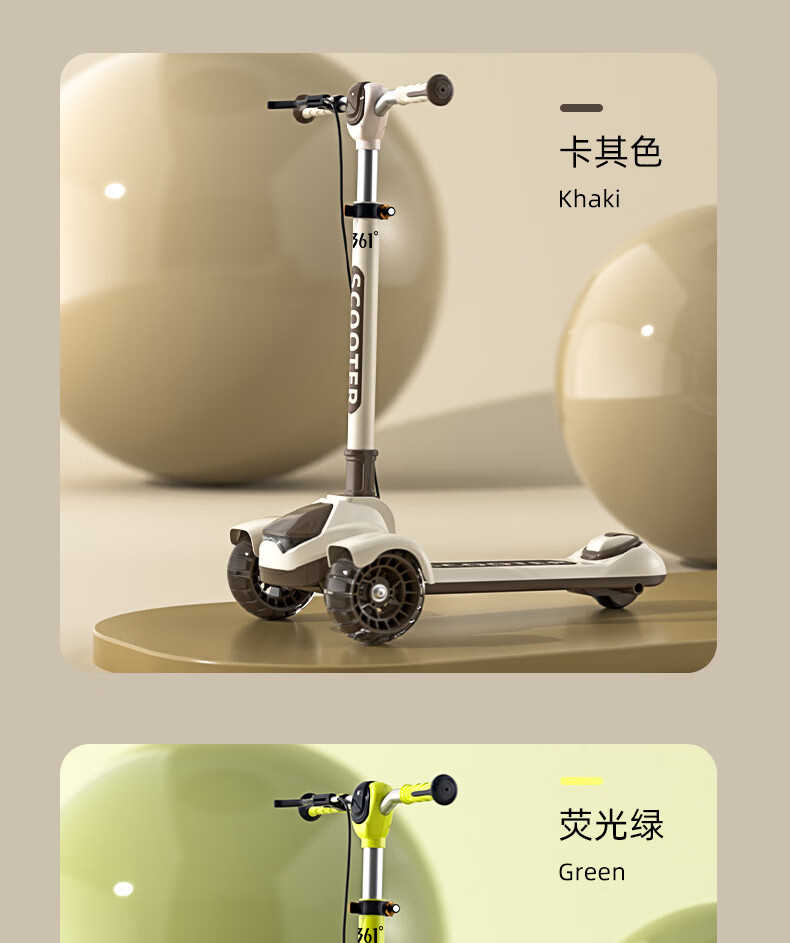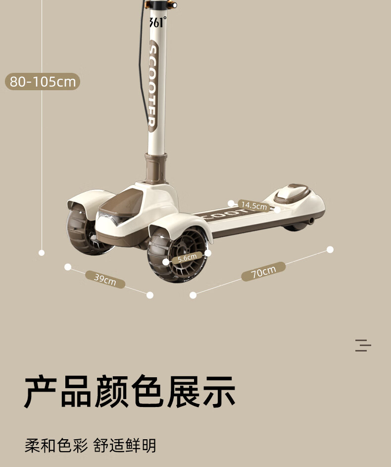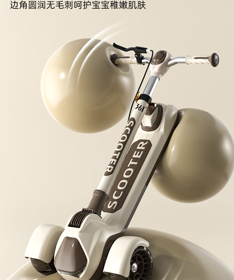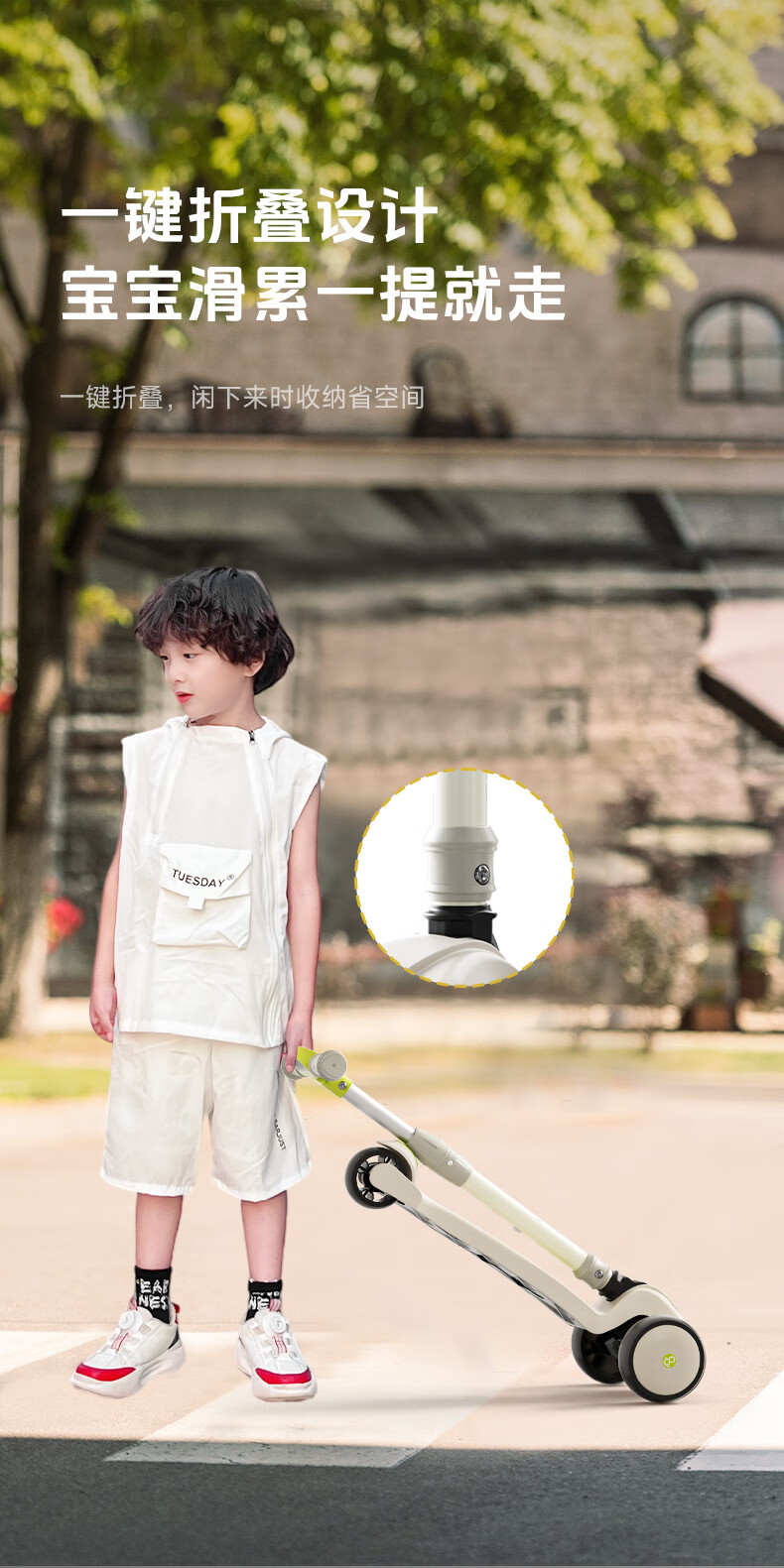 361°大儿童滑板车5-6-10-18岁男女孩滑行踏板车遛娃神器节日礼物双刹 高雅灰-免安装/双剎车/音乐 灯光