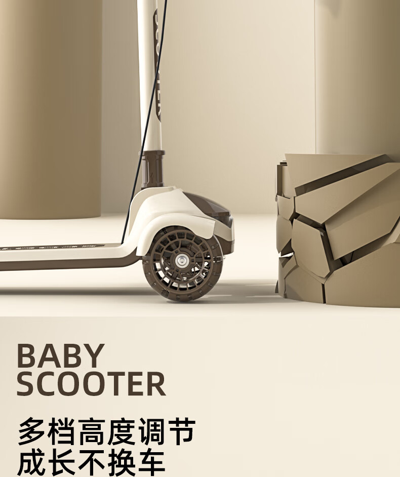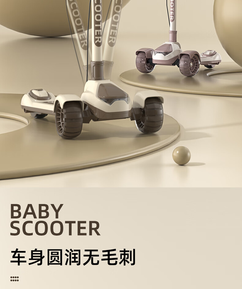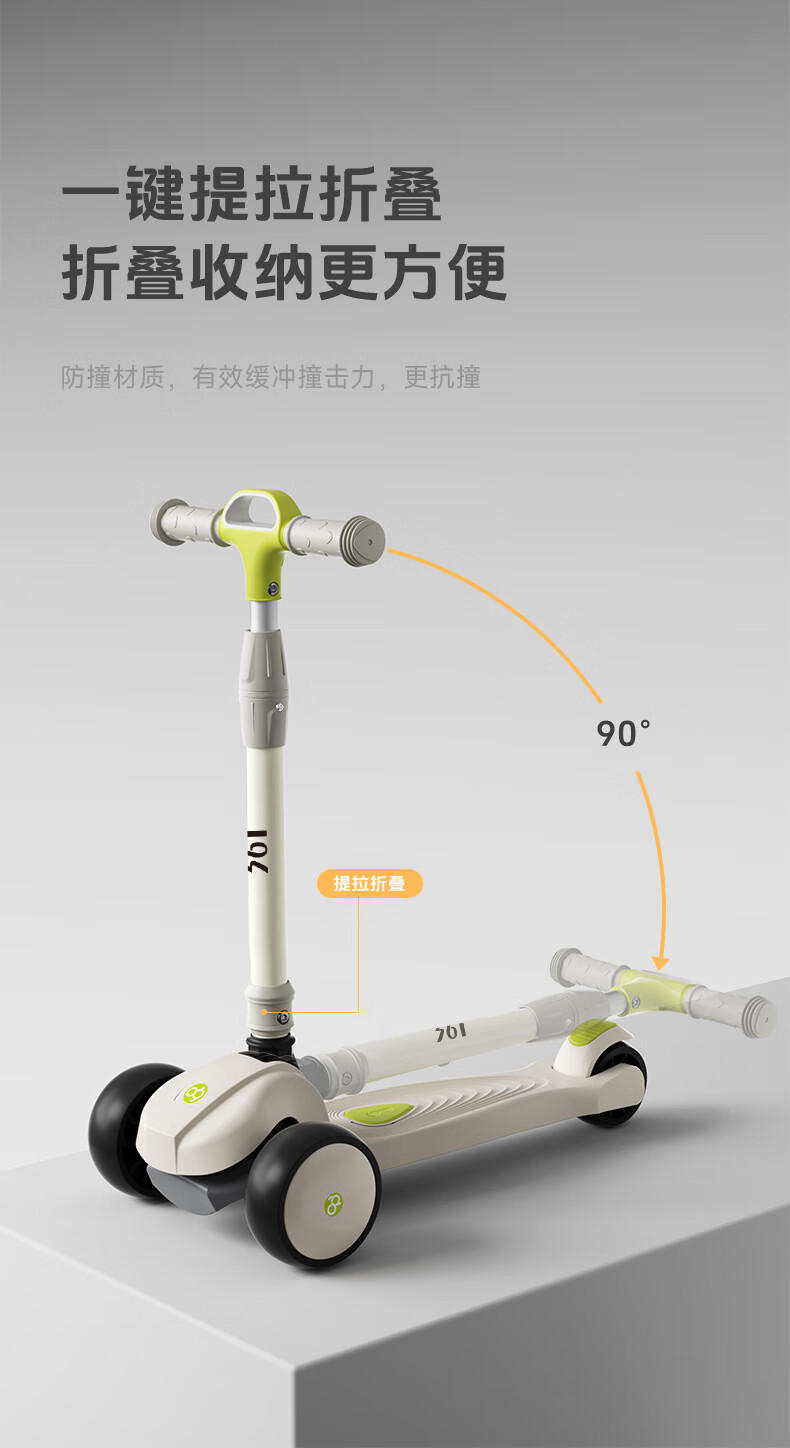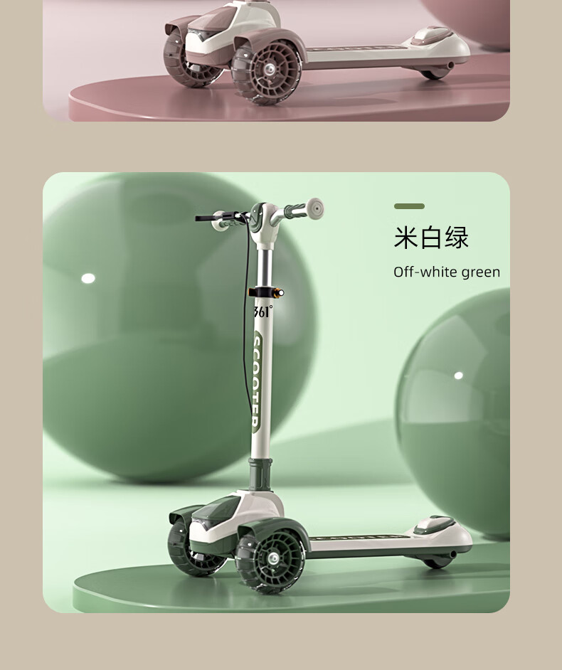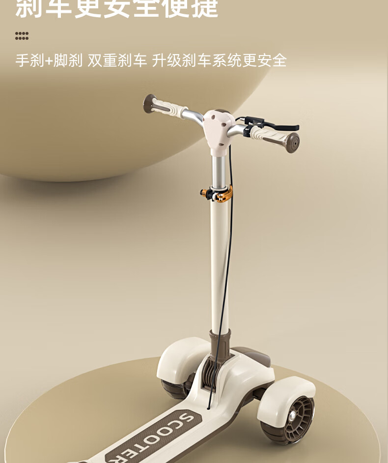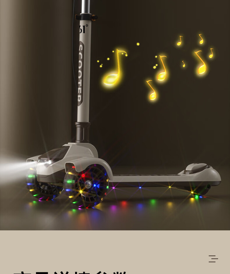 361°大儿童滑板车5-6-10-18岁男女孩滑行踏板车遛娃神器节日礼物双刹 高雅灰-免安装/双剎车/音乐 灯光