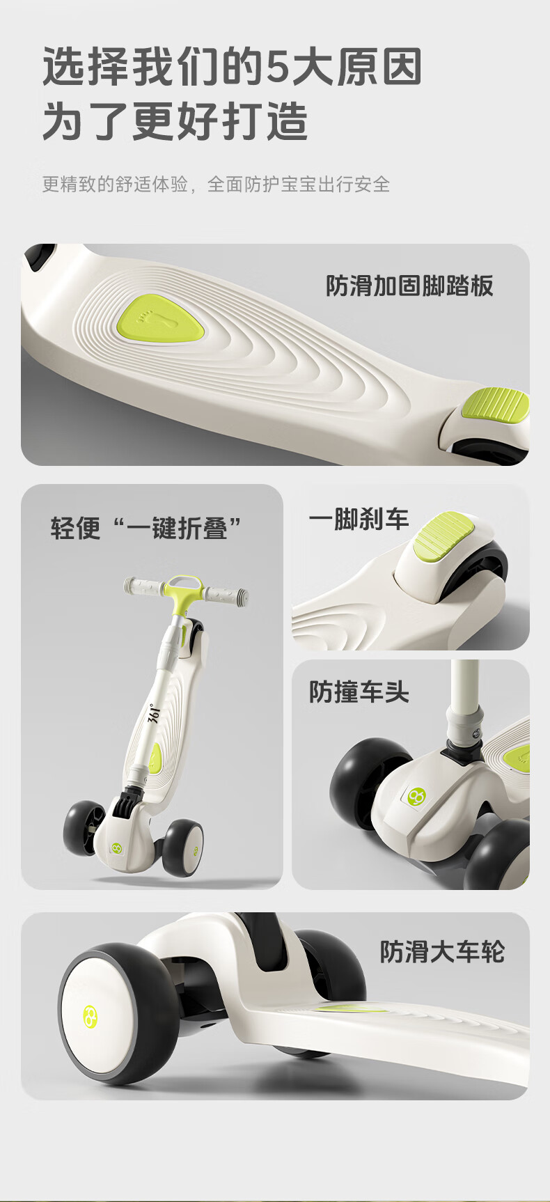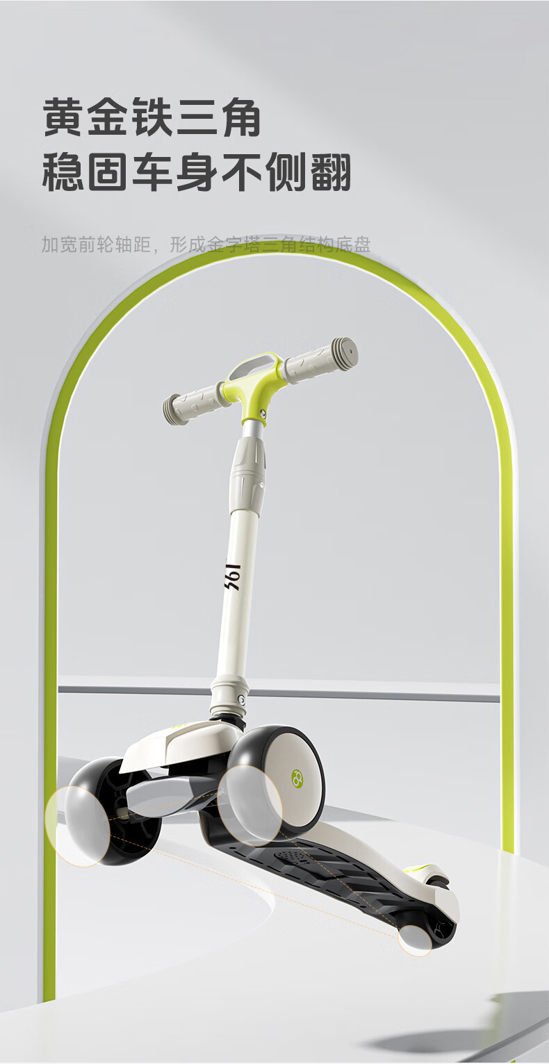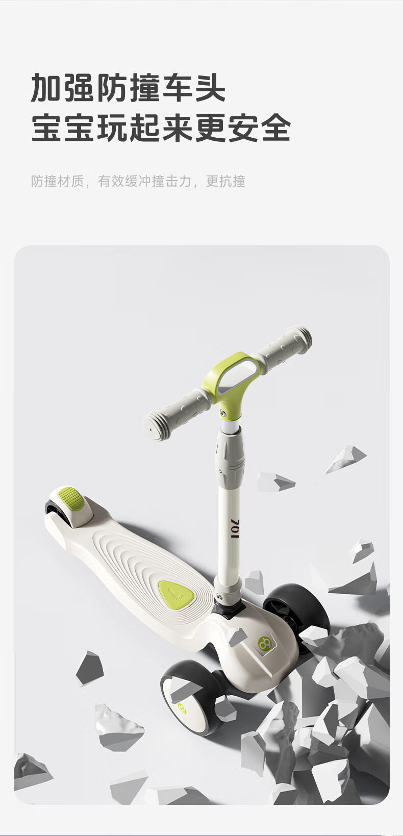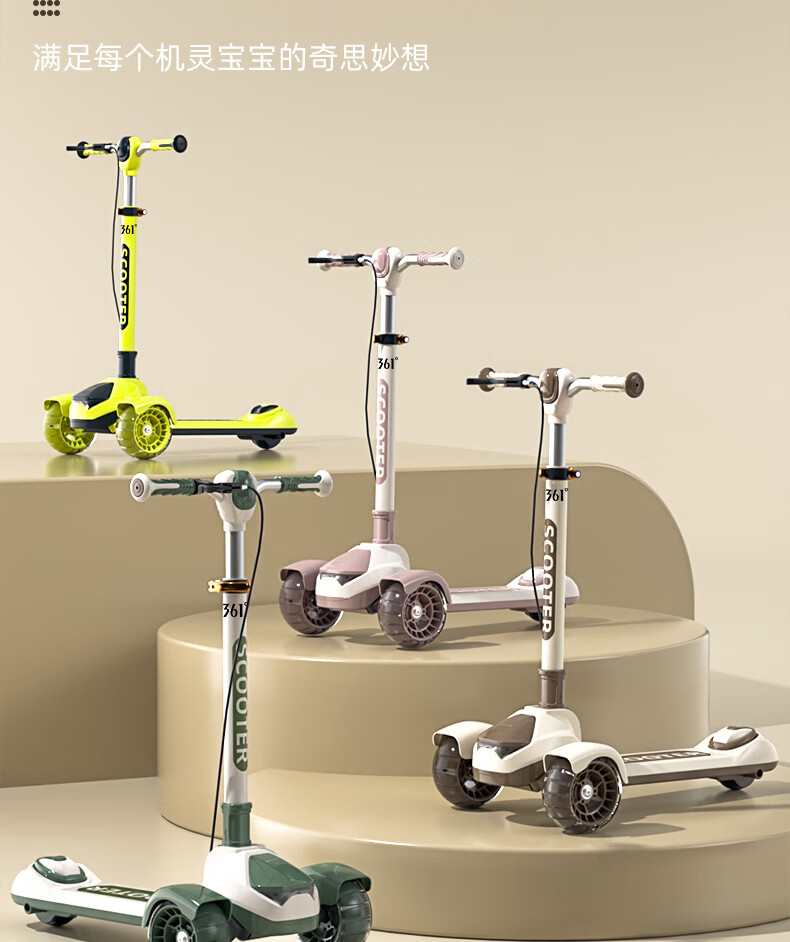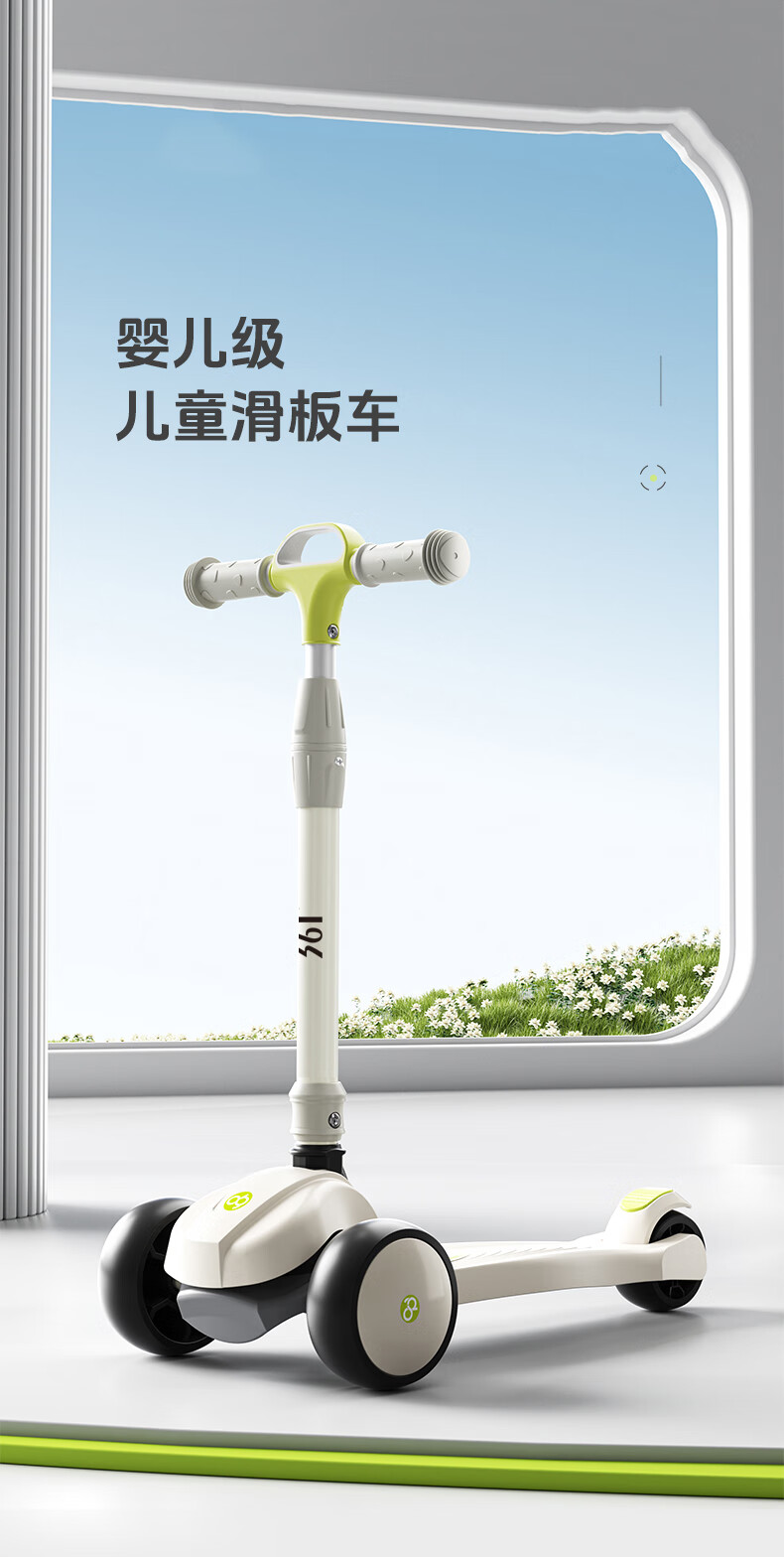 361°大儿童滑板车5-6-10-18岁男女孩滑行踏板车遛娃神器节日礼物双刹 高雅灰-免安装/双剎车/音乐 灯光