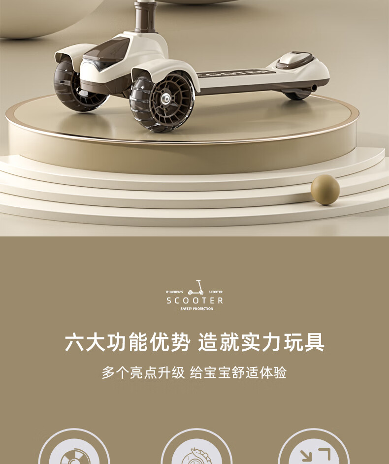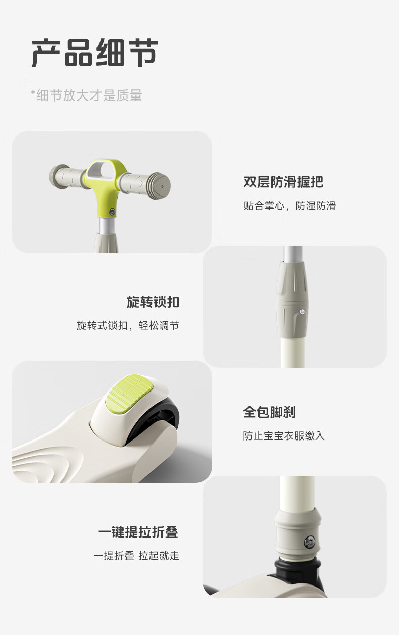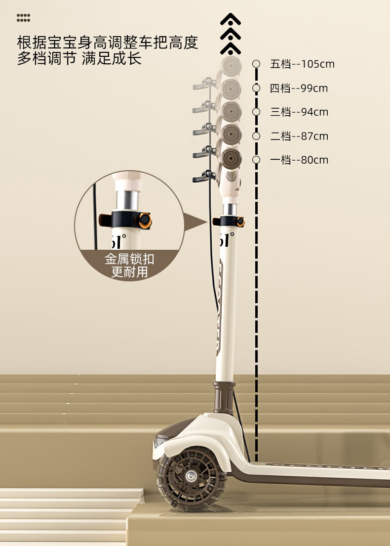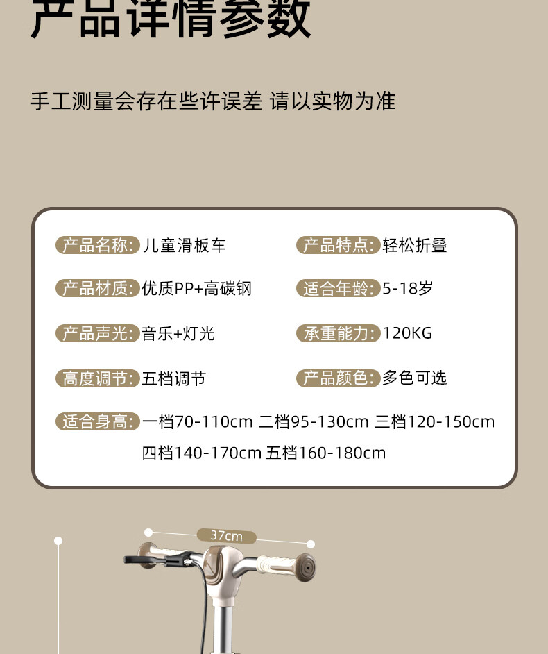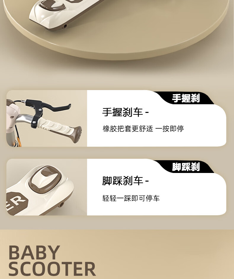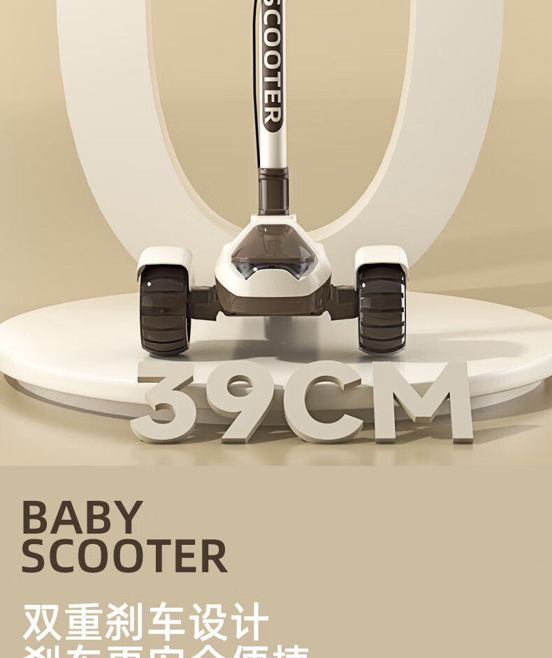361°大儿童滑板车5-6-10-18岁男女孩滑行踏板车遛娃神器节日礼物双刹 高雅灰-免安装/双剎车/音乐 灯光