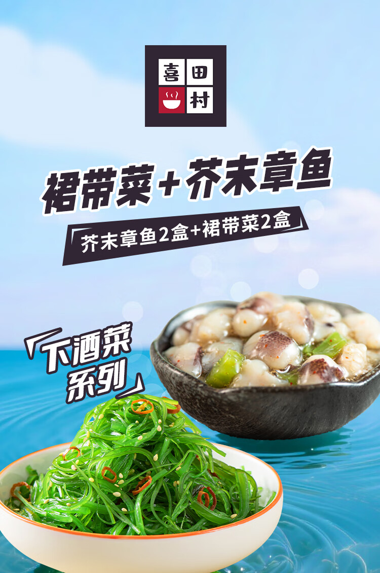 喜田村下酒菜组合320g(裙带菜2盒+芥末章鱼2盒)预制凉拌小菜日料食材