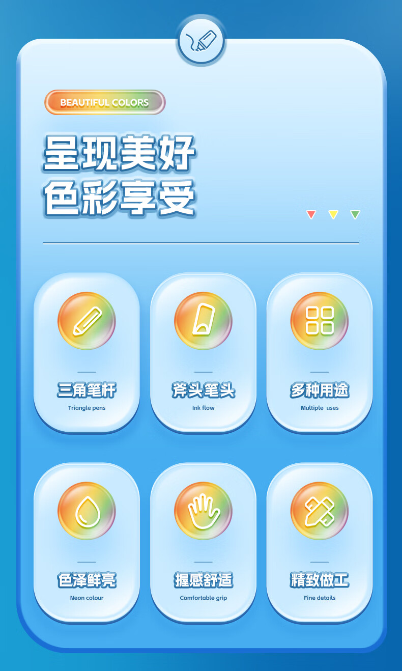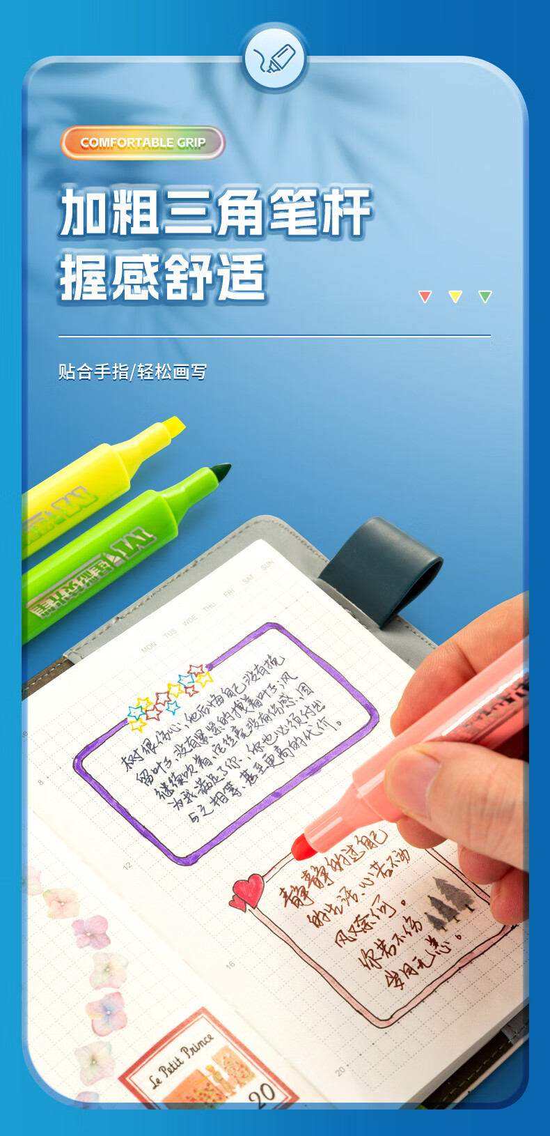 晨光(M&G)文具3色荧光笔 办公学生通用醒目重点标记笔 星彩系列手绘手账笔 记号笔 3支/盒AHMV7601
