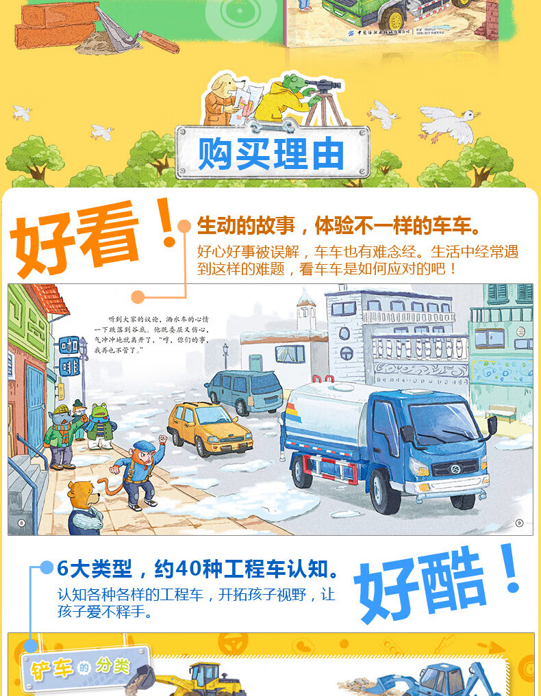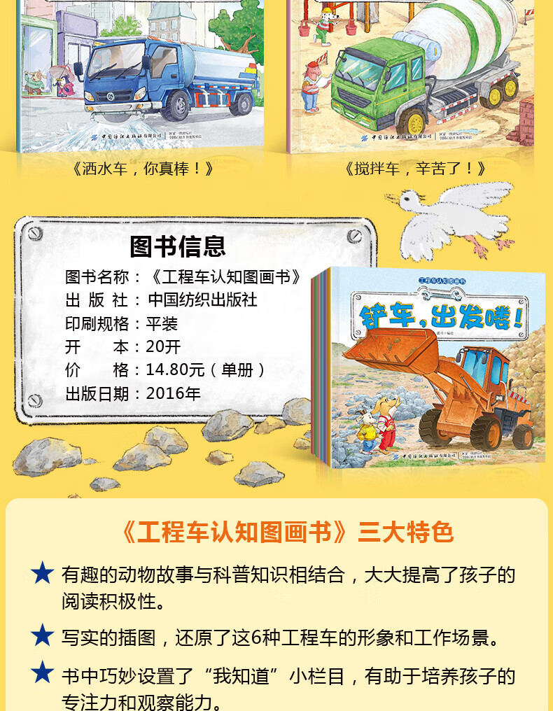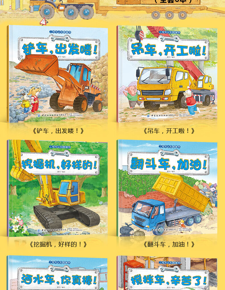 工程车认知图画书全套6册交通工具小百科正版 儿童绘本0-3-6周岁儿童故事书早教启蒙汽车书少儿图书读物宝宝图画书科普百科 全套6册