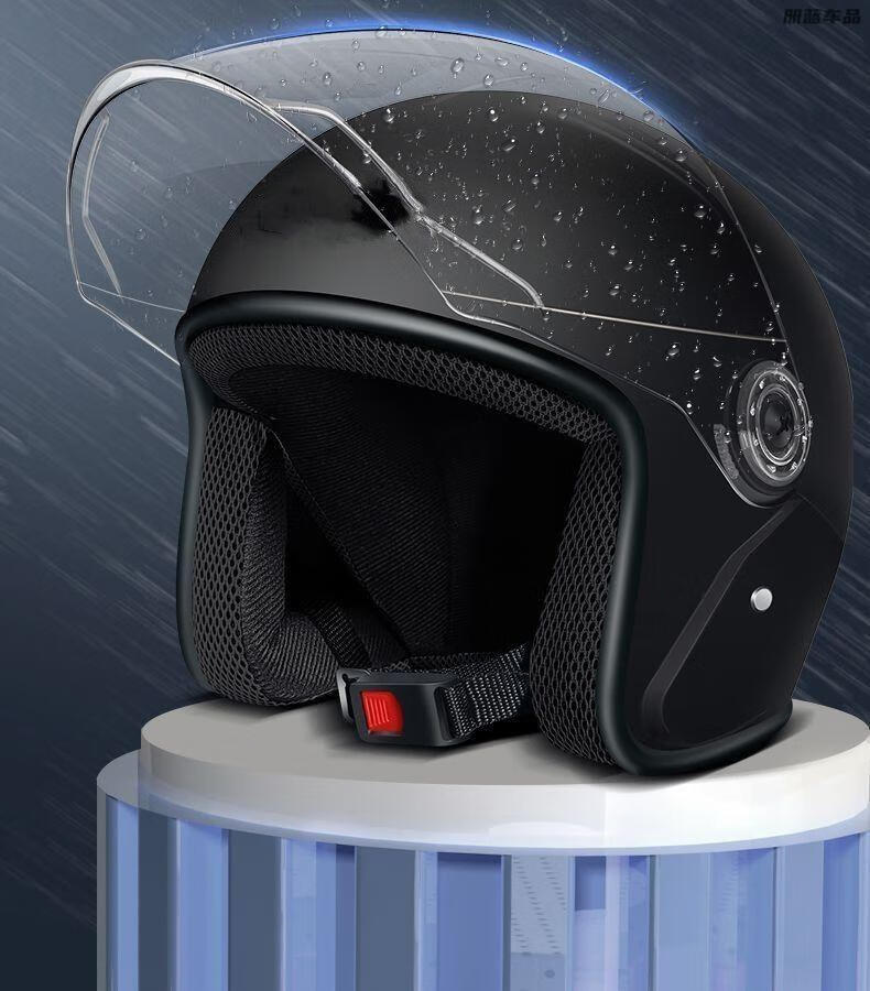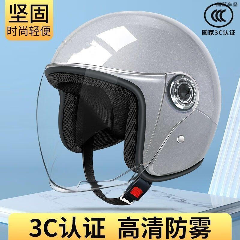 迅霆电动车头盔3C认证男女士电瓶摩托车半盔夏季防晒四季新国标安全帽 3C哑黑【短茶+短透】新国标A 均码