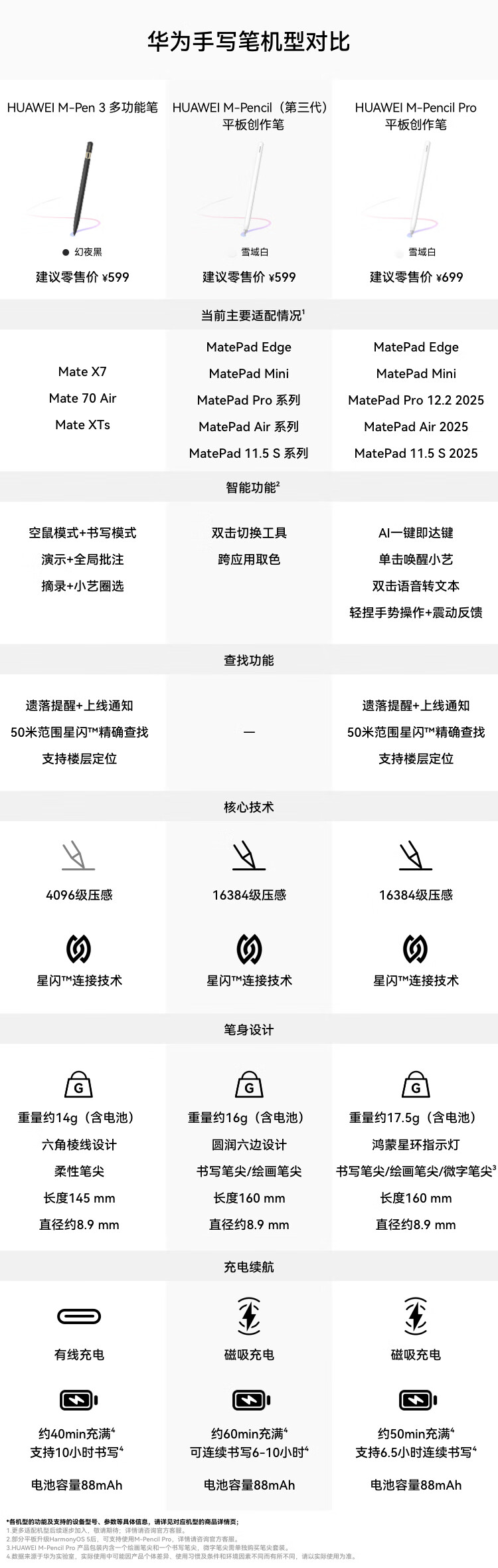 HUAWEI M-Pencil (第三代)平板创作笔 华为手写笔 星闪技术超低时延 雪域白