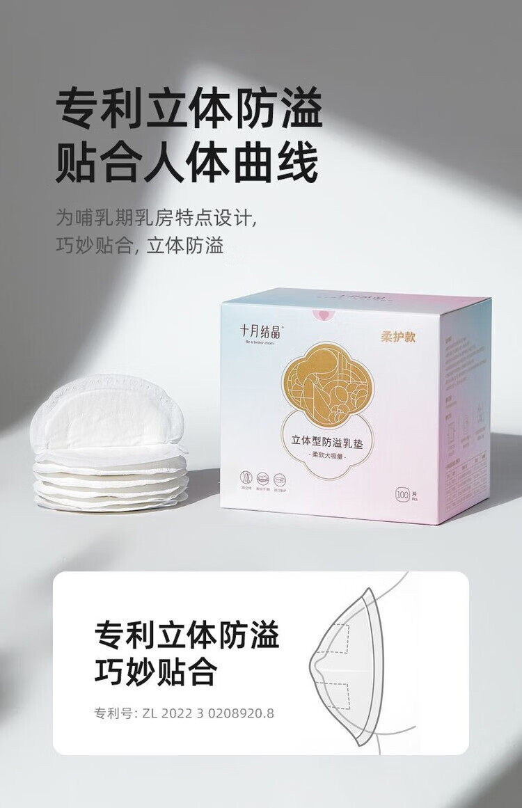 AILUKI十月结晶立体型防溢乳垫超薄夏季透气乳贴哺乳期一次性防溢奶垫 立体乳垫100片+送8片