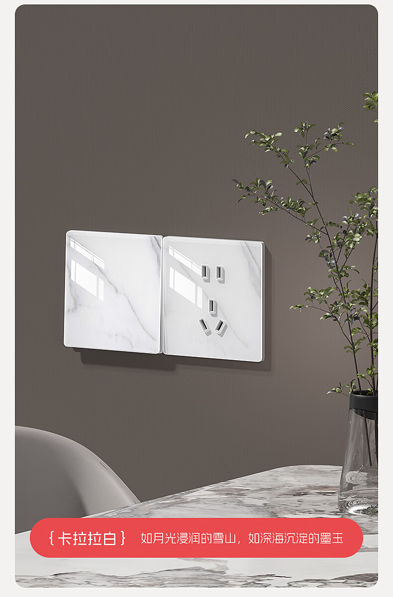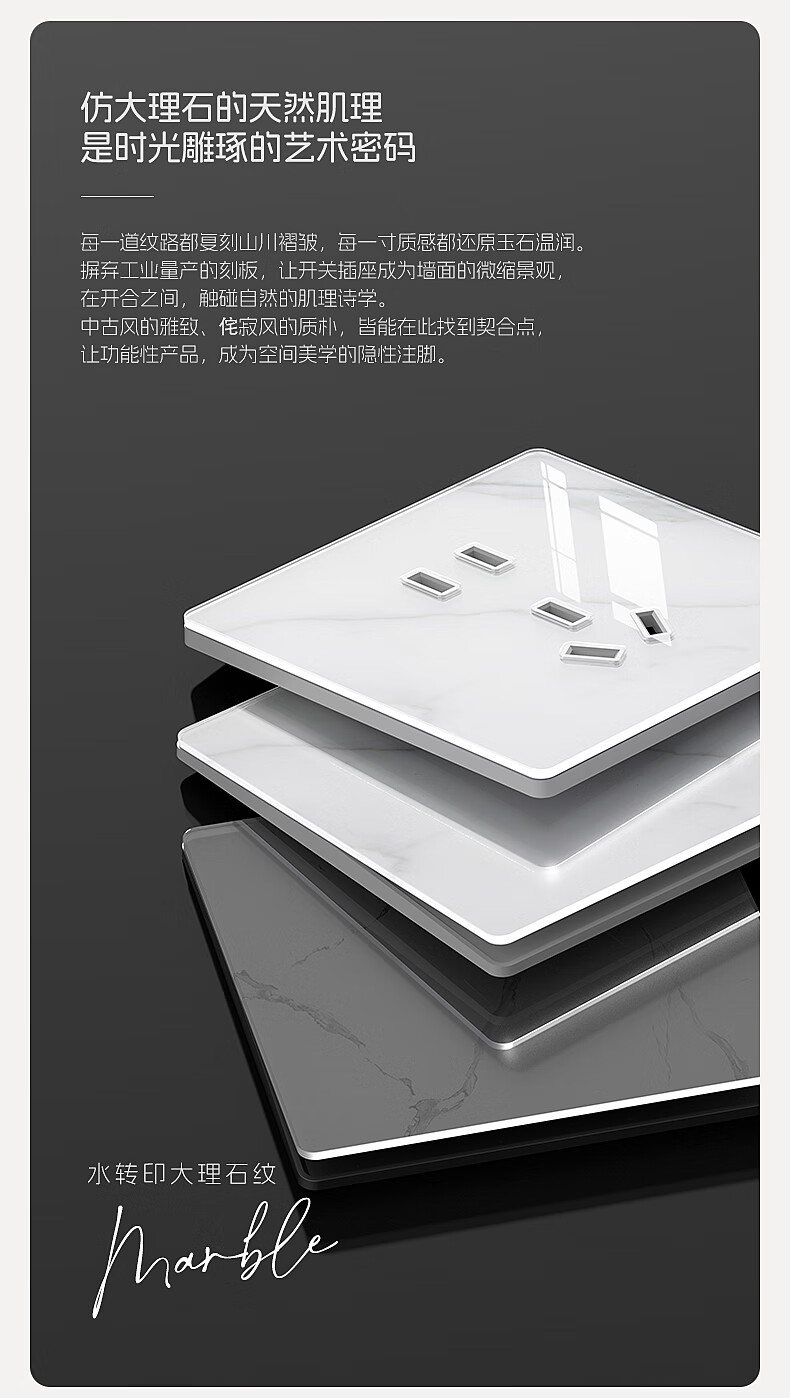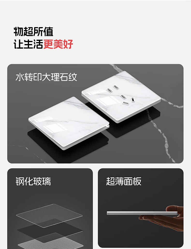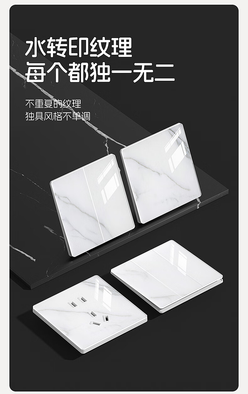 国际电工86型超薄开关插座钢化玻璃大理石纹面板家用墙壁暗装五孔带开关 一开单控 开关