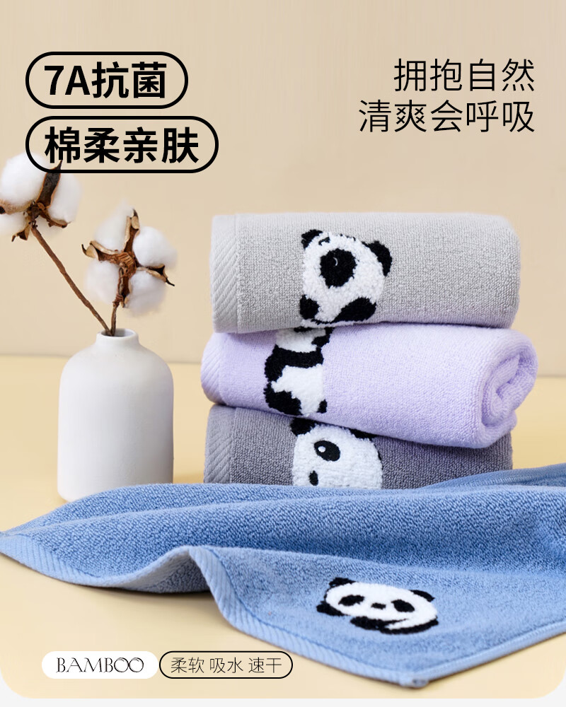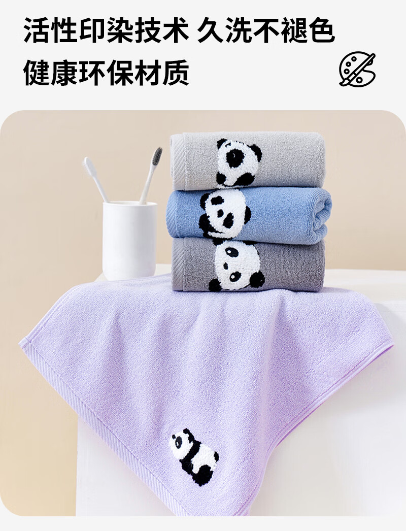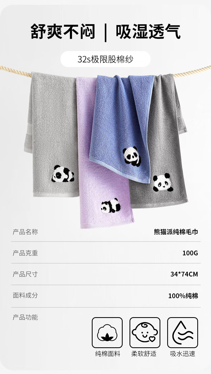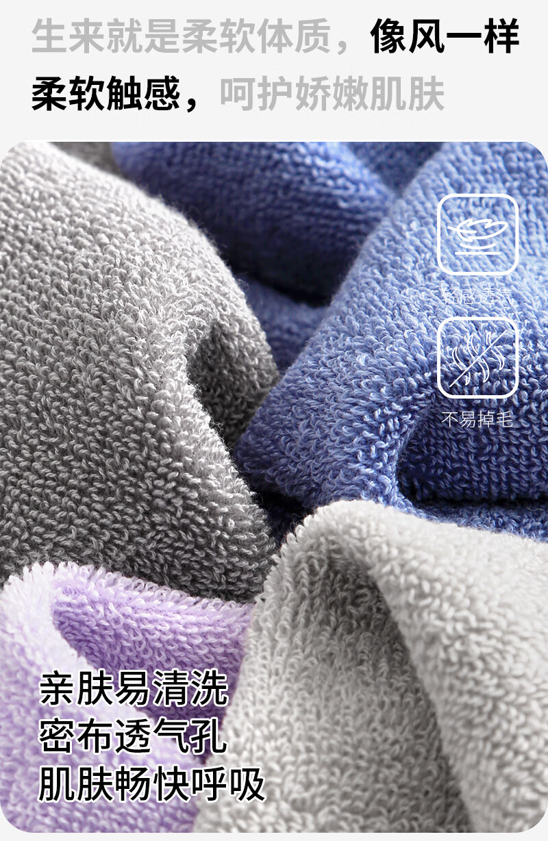 竹一百超柔A类纯棉成人洗脸毛巾2条7A抗菌吸水不掉毛大毛巾 深灰+淡紫