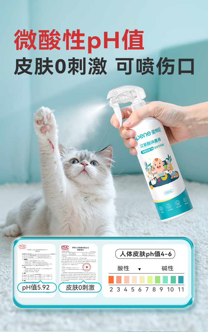 星帮尼(Spene)次氯酸宠物消毒液水猫咪专用星邦尼家用环境狗狗猫癣猫藓杀菌喷雾
