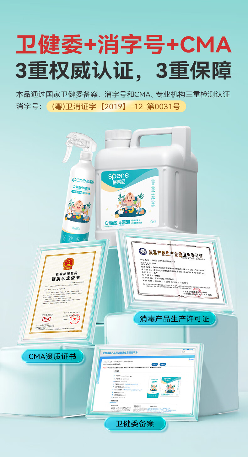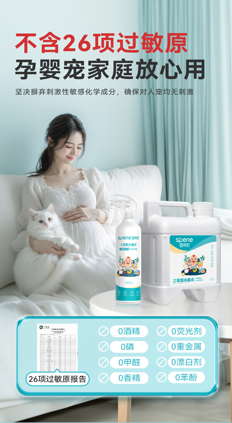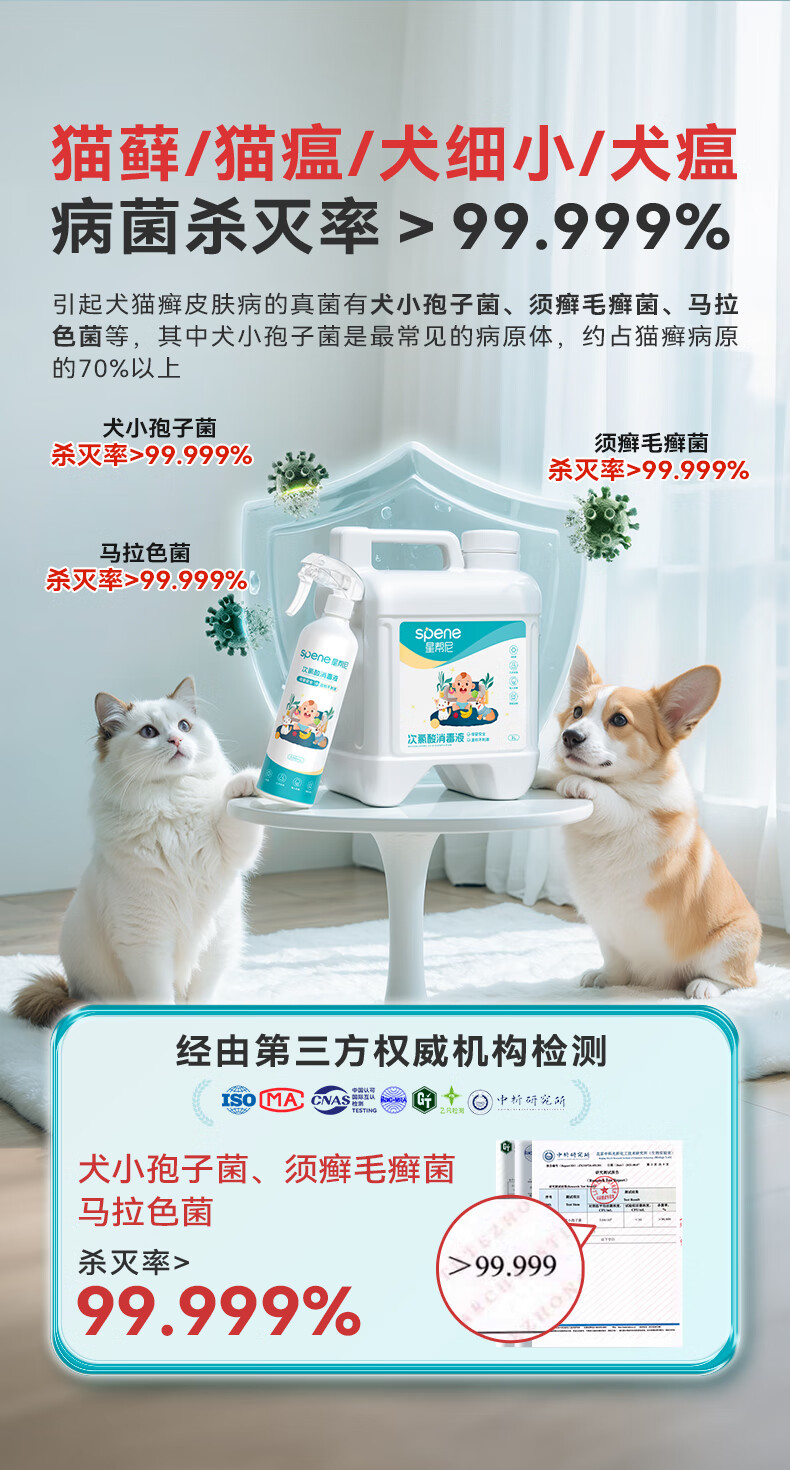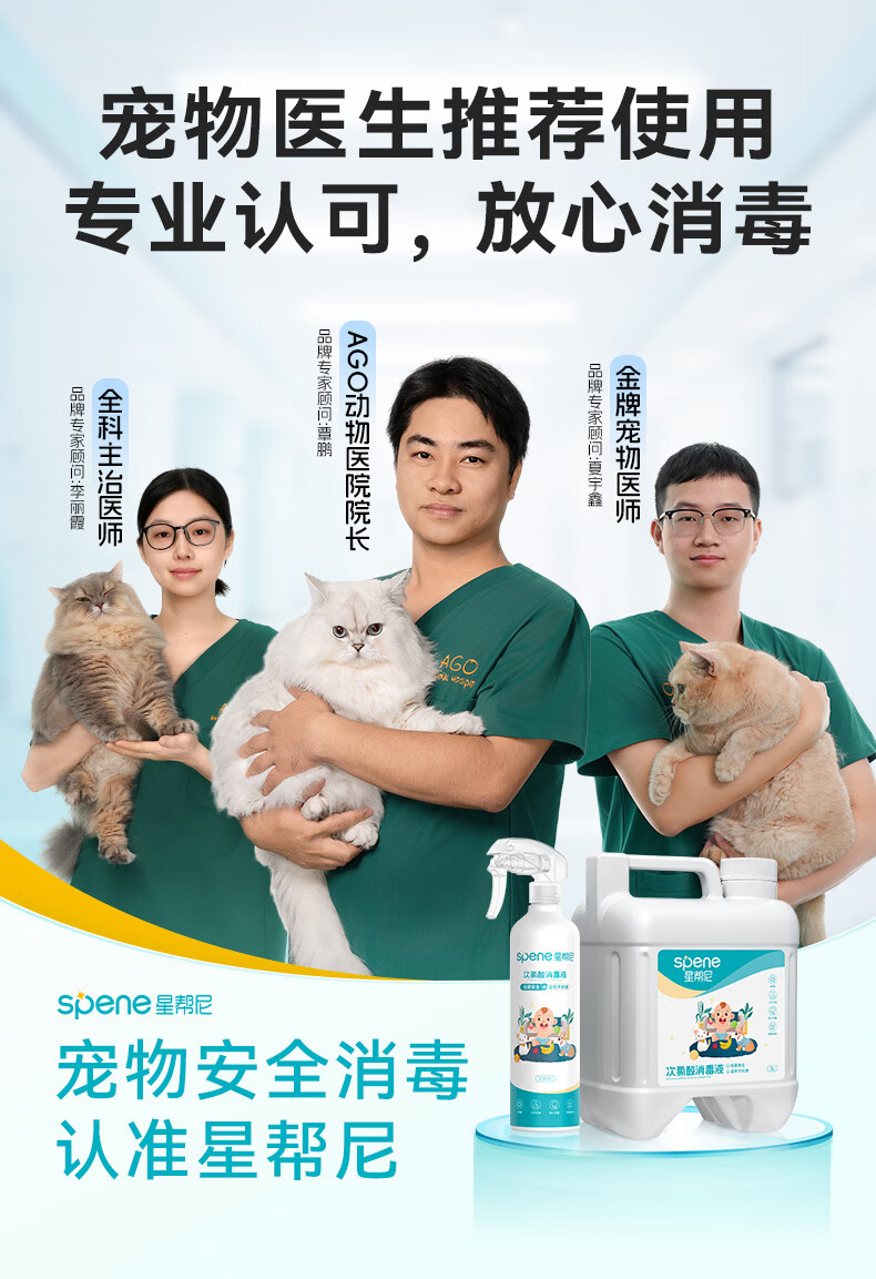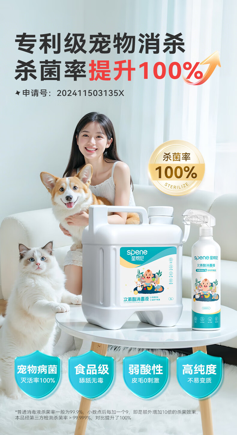 星帮尼(Spene)次氯酸宠物消毒液水猫咪猫藓猫癣猫瘟狗细小专用家用环境杀菌喷雾
