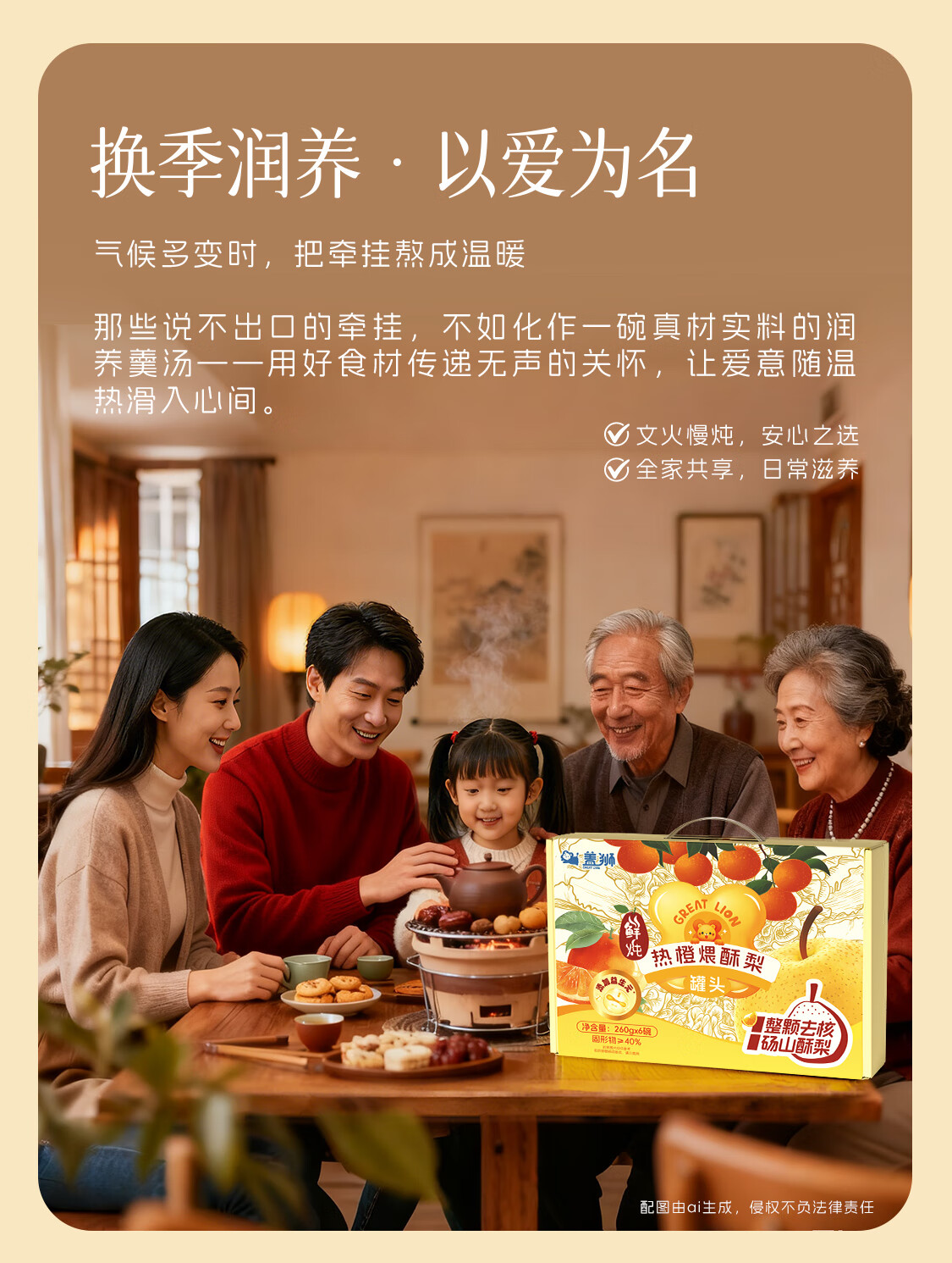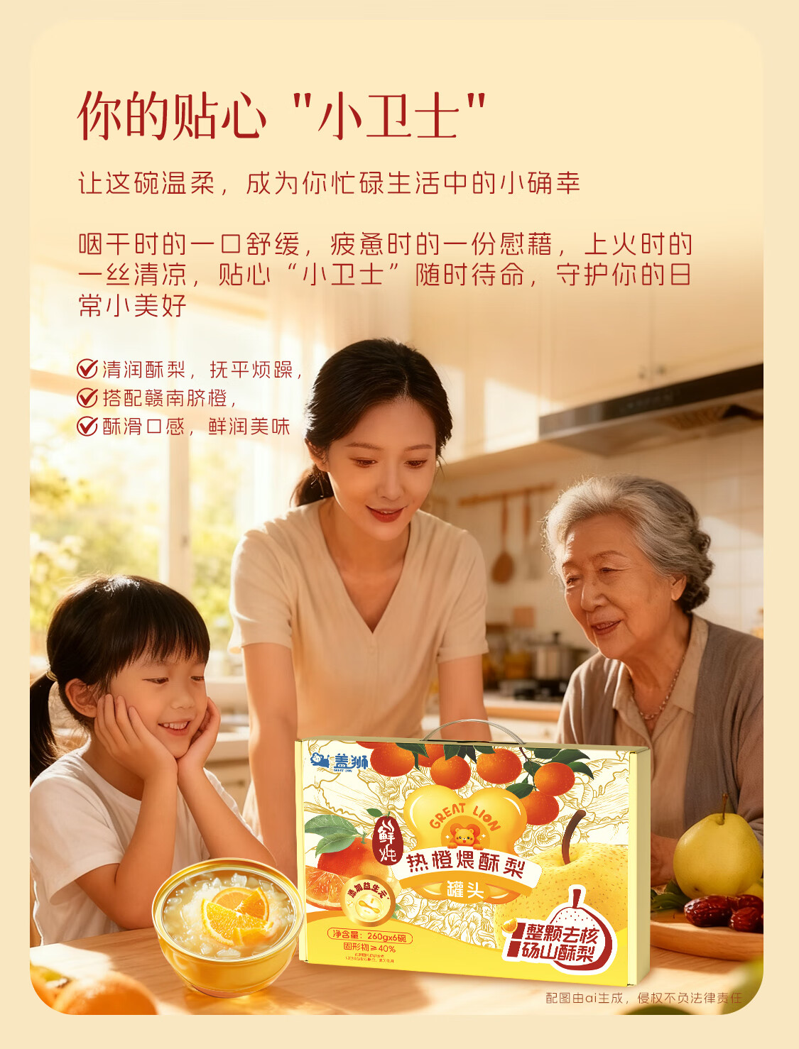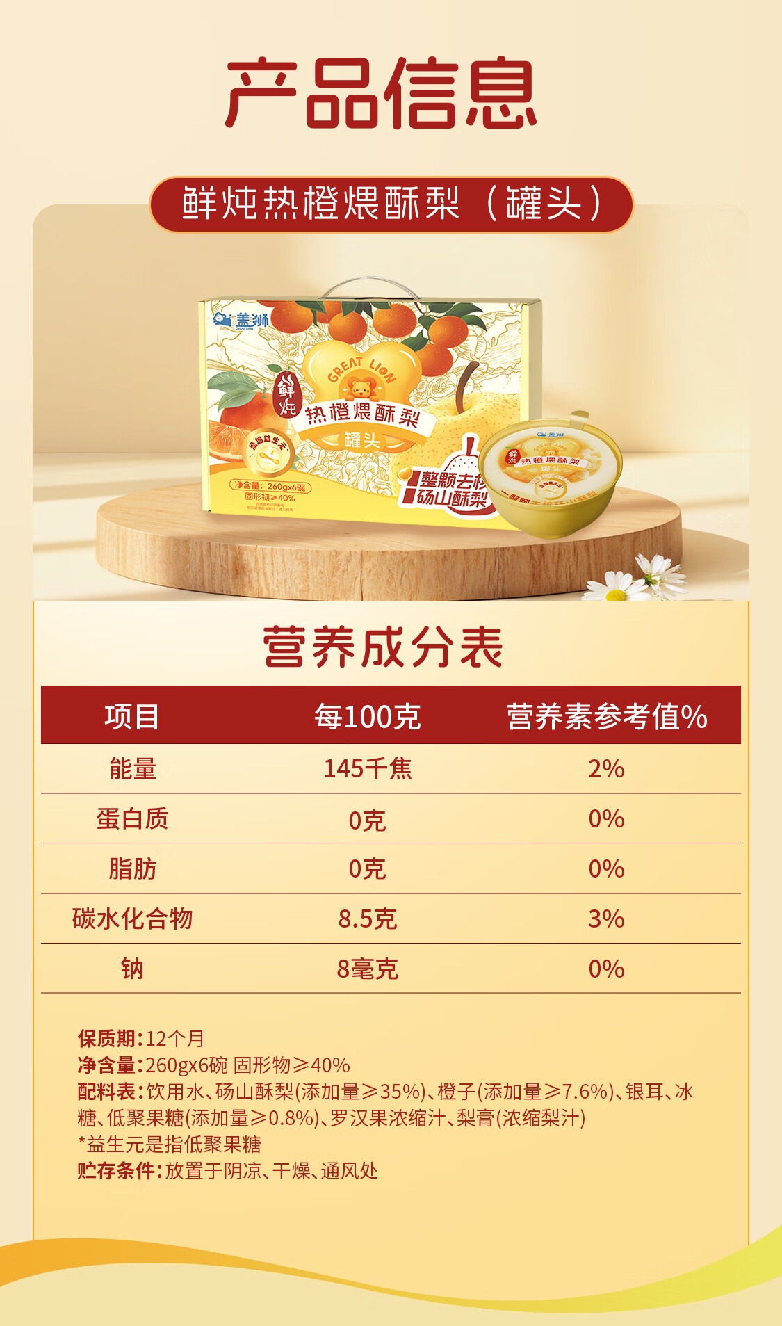 盖狮鲜炖热橙煨酥梨小金碗礼盒260g*6碗整颗砀山酥梨添加益生元炖梨