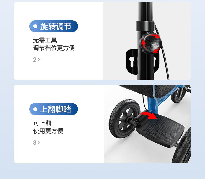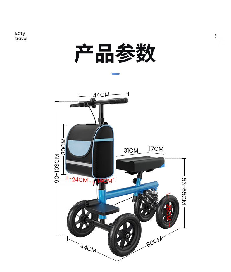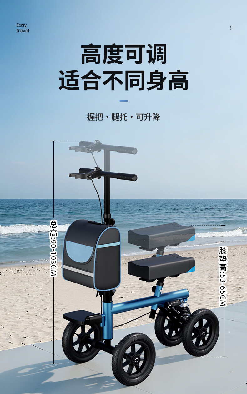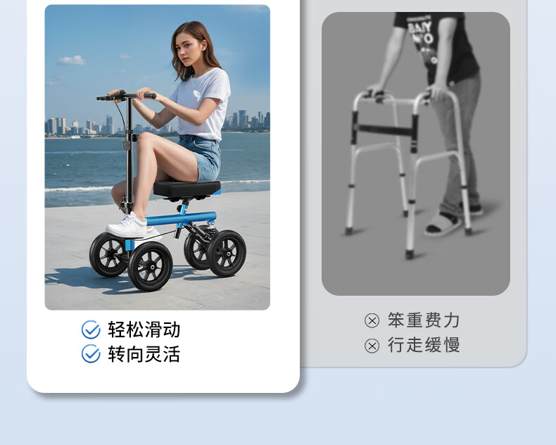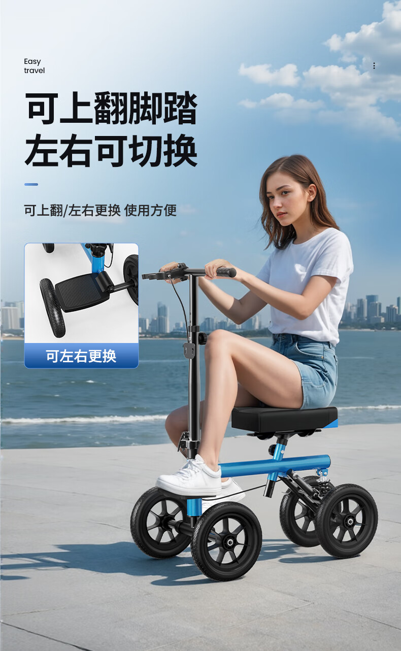 福仕得骨折助行器单脚裸受伤膝盖四轮车术后康复辅助走路年轻人拐杖931B