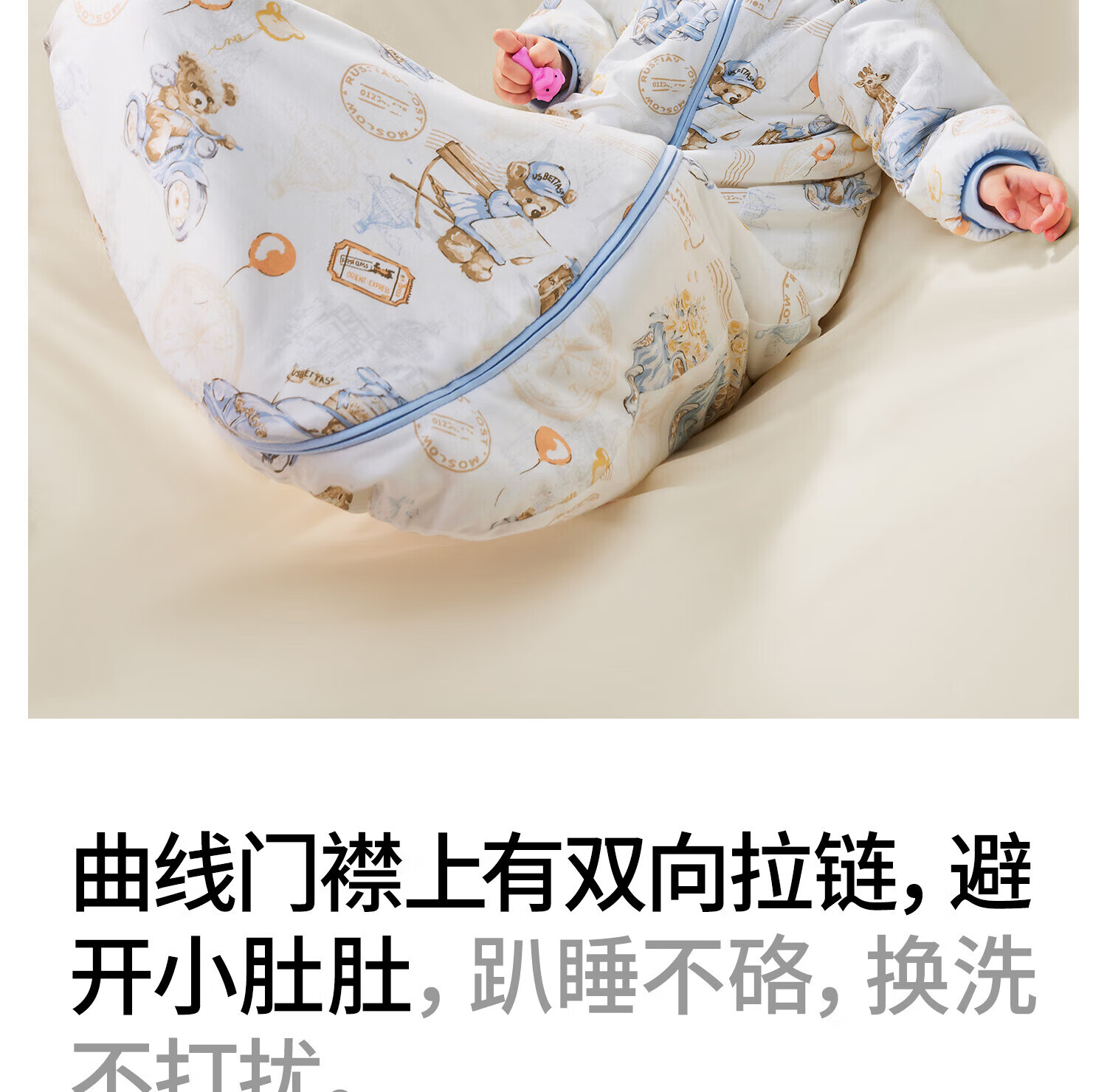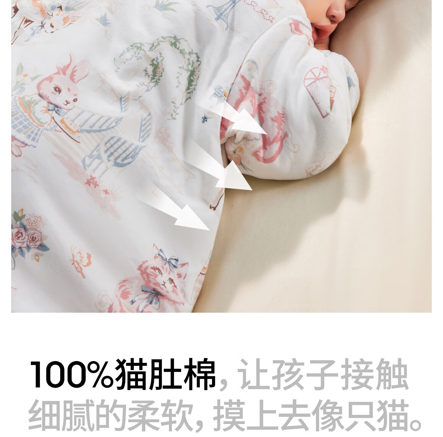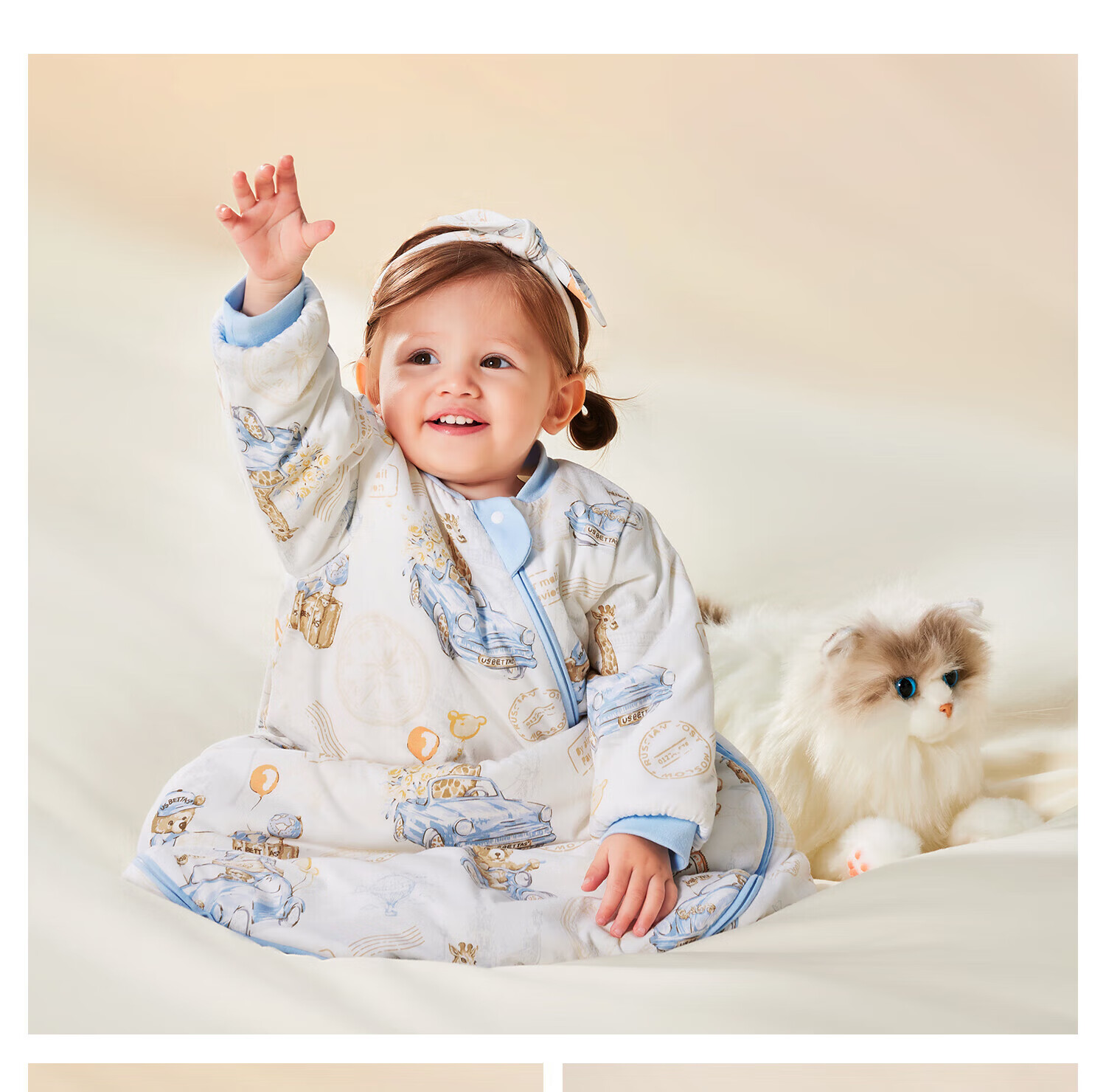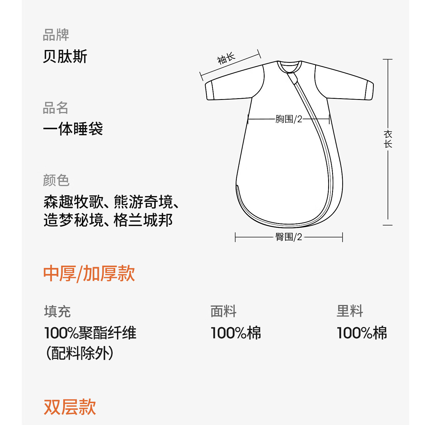 贝肽斯婴儿恒温睡袋宝宝1-3岁秋春秋儿童防踢被子保暖一体式防惊跳睡袋 猫肚棉x保暖【春秋双层 室温20-26度】森趣牧歌 M码 (身高62-85cm建议9月-2岁)