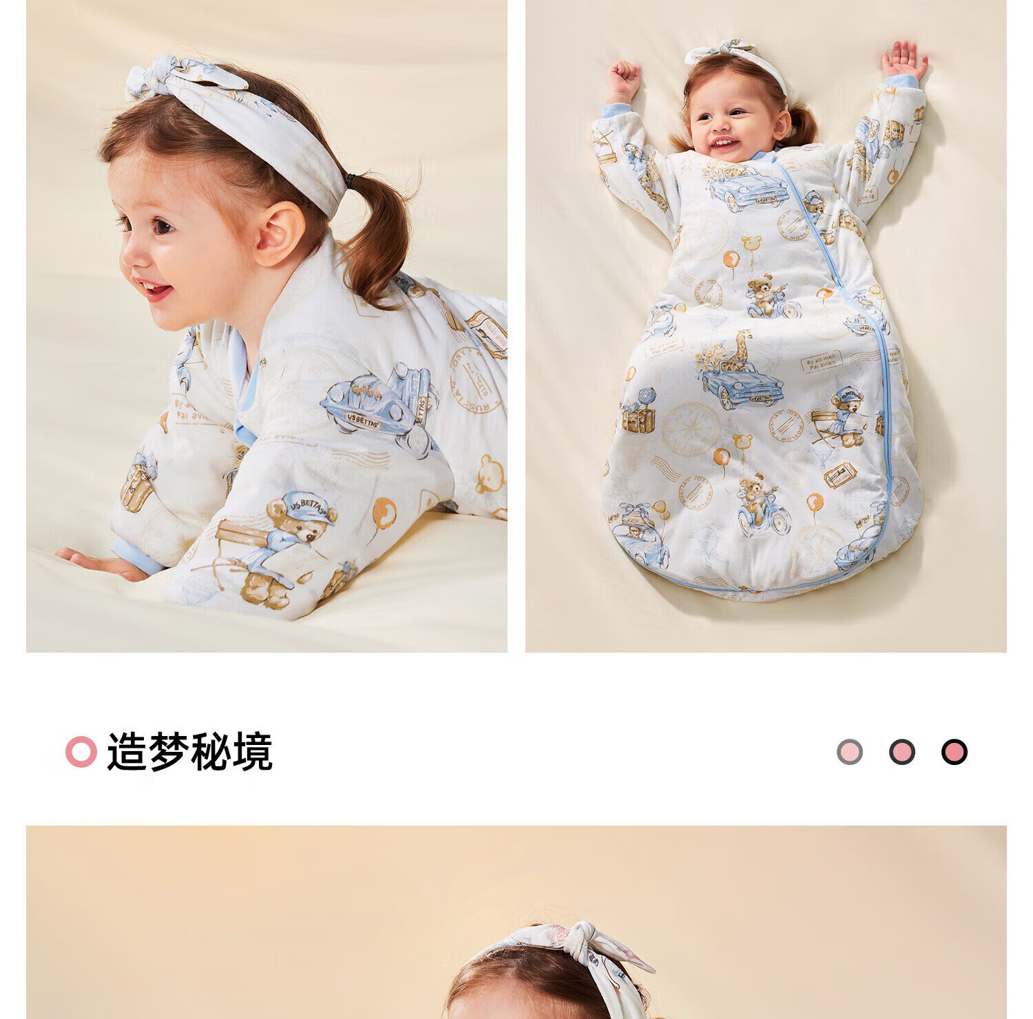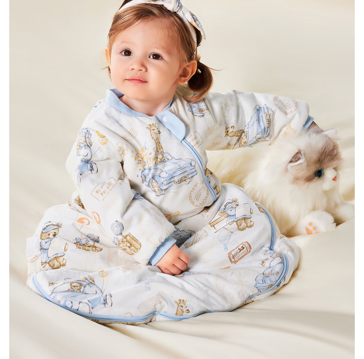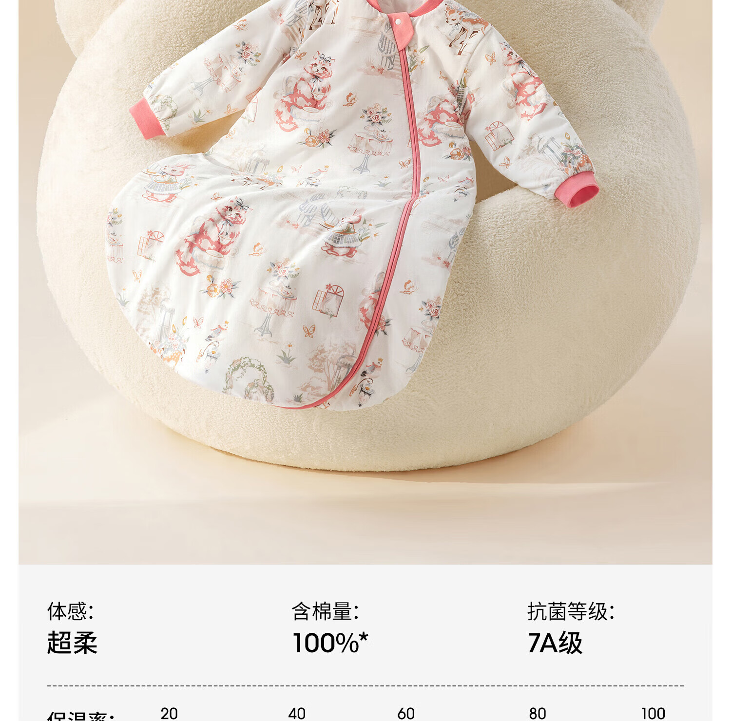 贝肽斯婴儿恒温睡袋宝宝1-3岁秋春秋儿童防踢被子保暖一体式防惊跳睡袋 猫肚棉x保暖【春秋双层 室温20-26度】森趣牧歌 M码 (身高62-85cm建议9月-2岁)