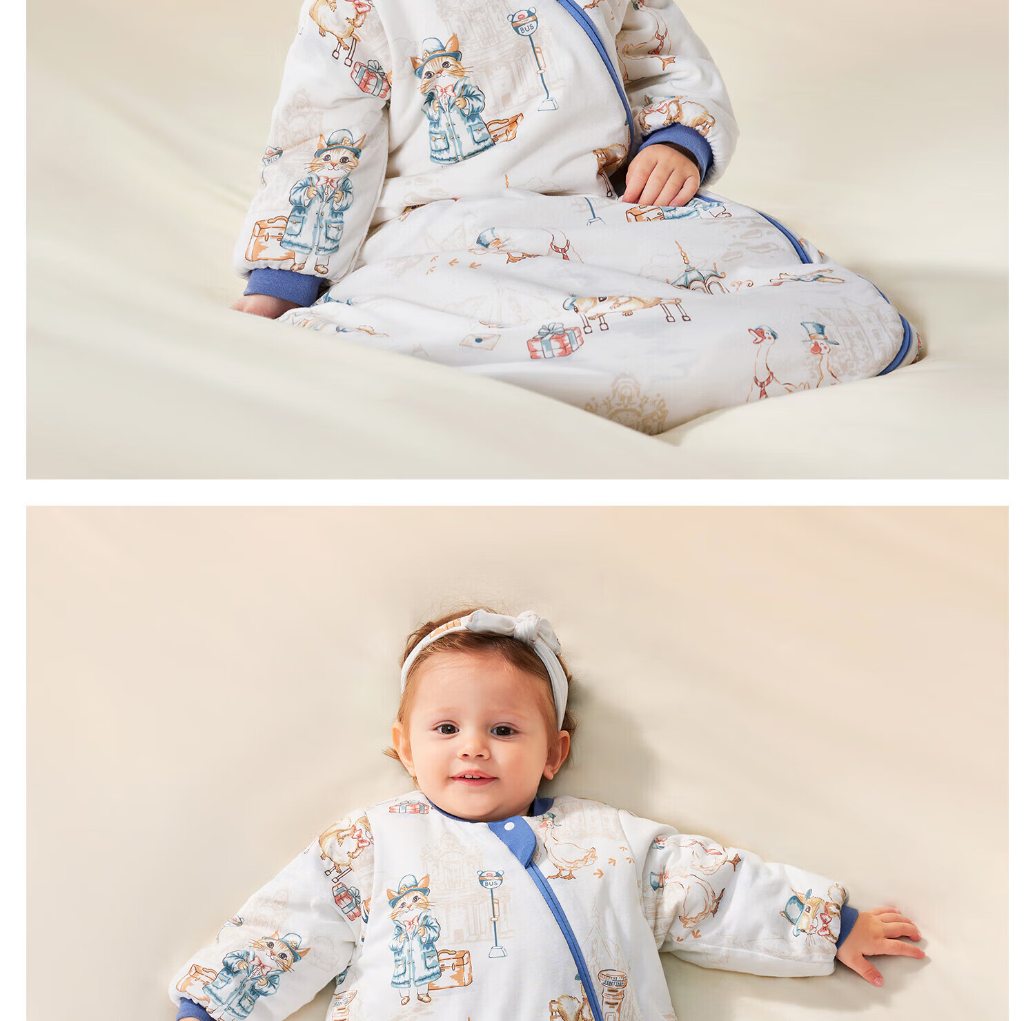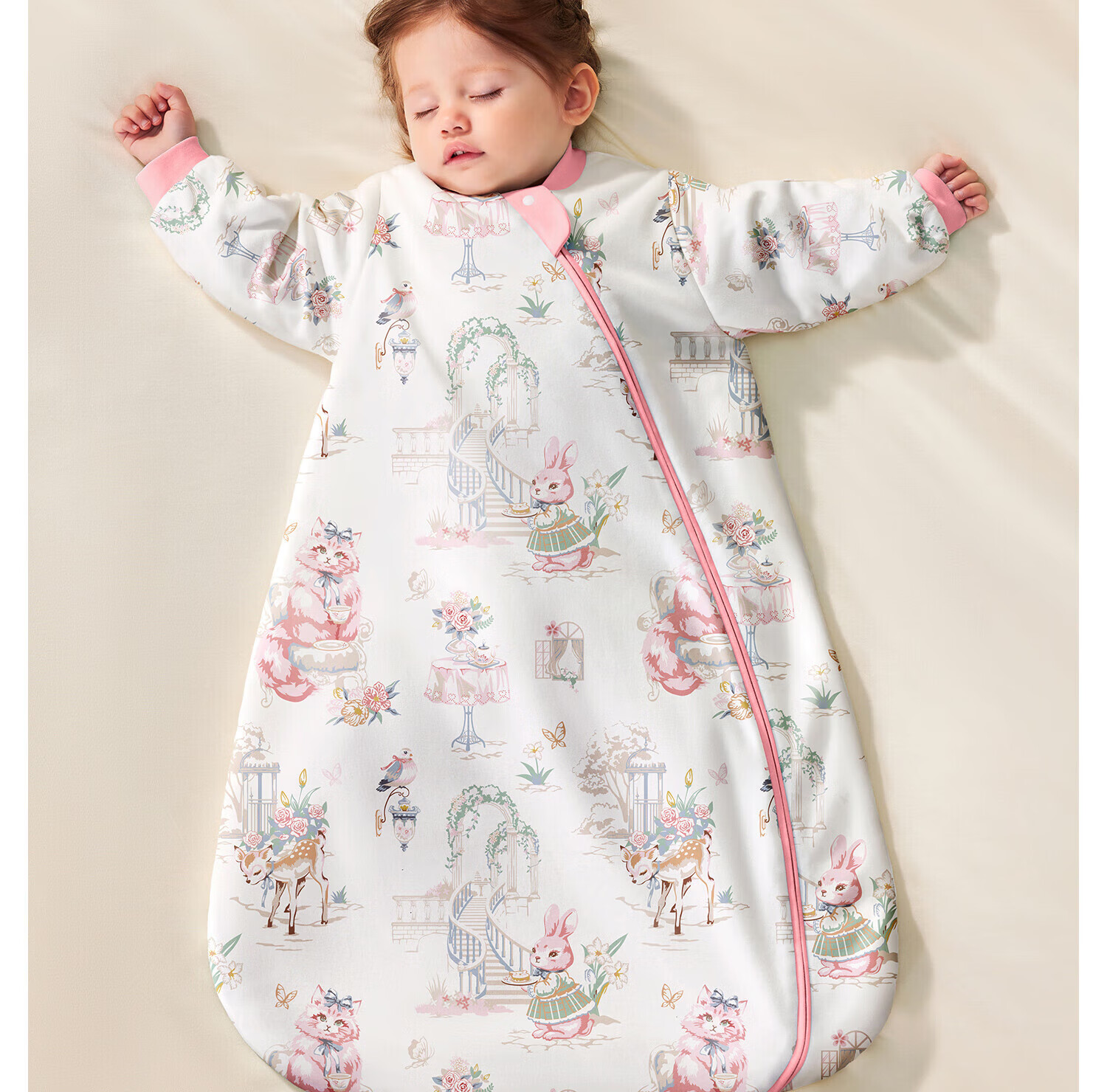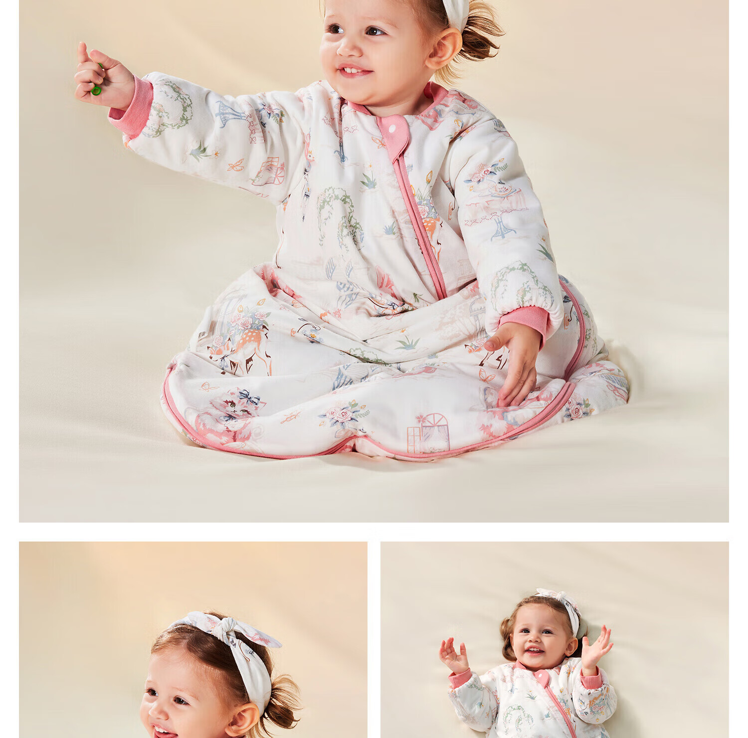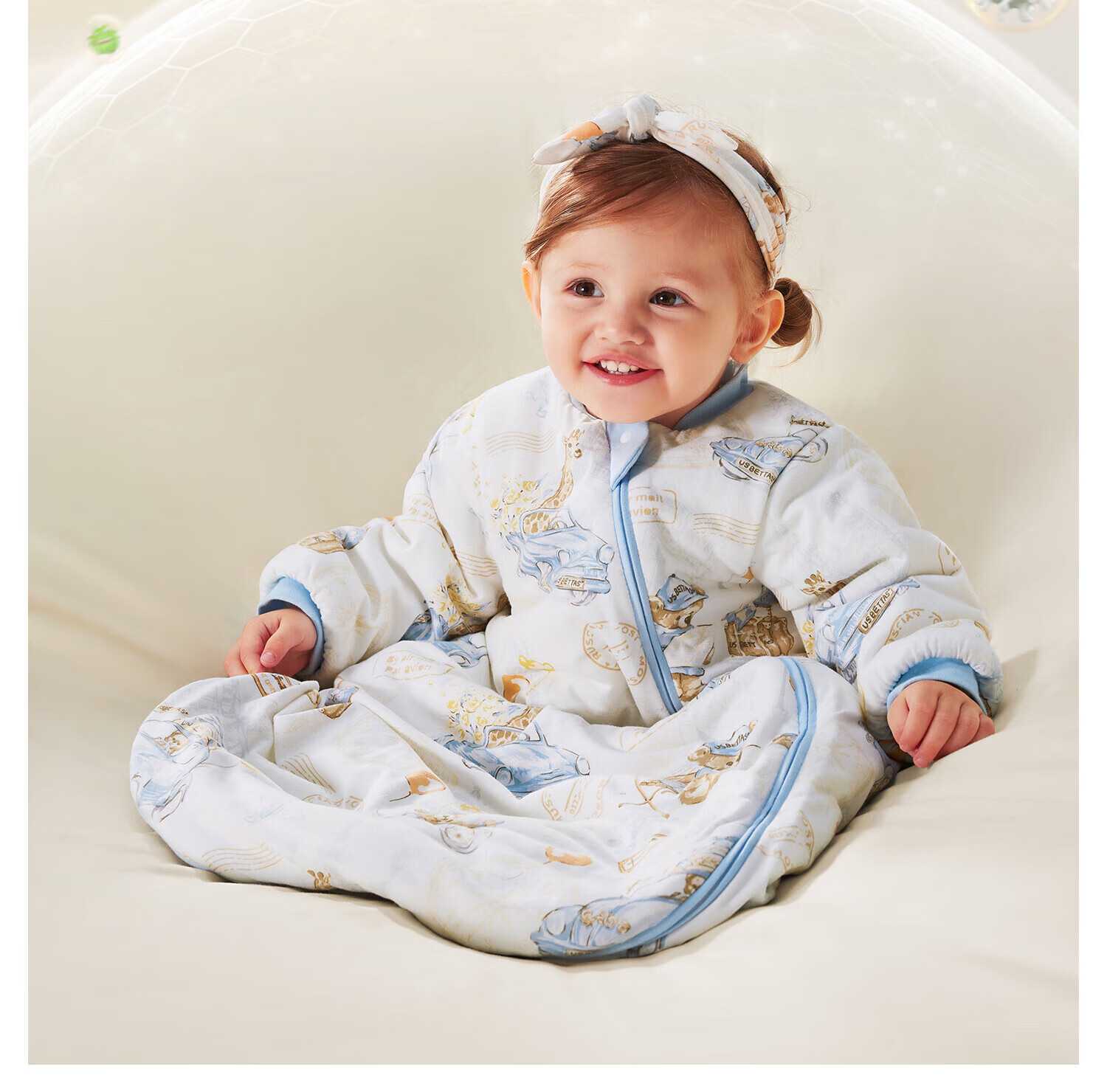 贝肽斯婴儿恒温睡袋宝宝1-3岁秋春秋儿童防踢被子保暖一体式防惊跳睡袋 猫肚棉x保暖【春秋双层 室温20-26度】森趣牧歌 M码 (身高62-85cm建议9月-2岁)