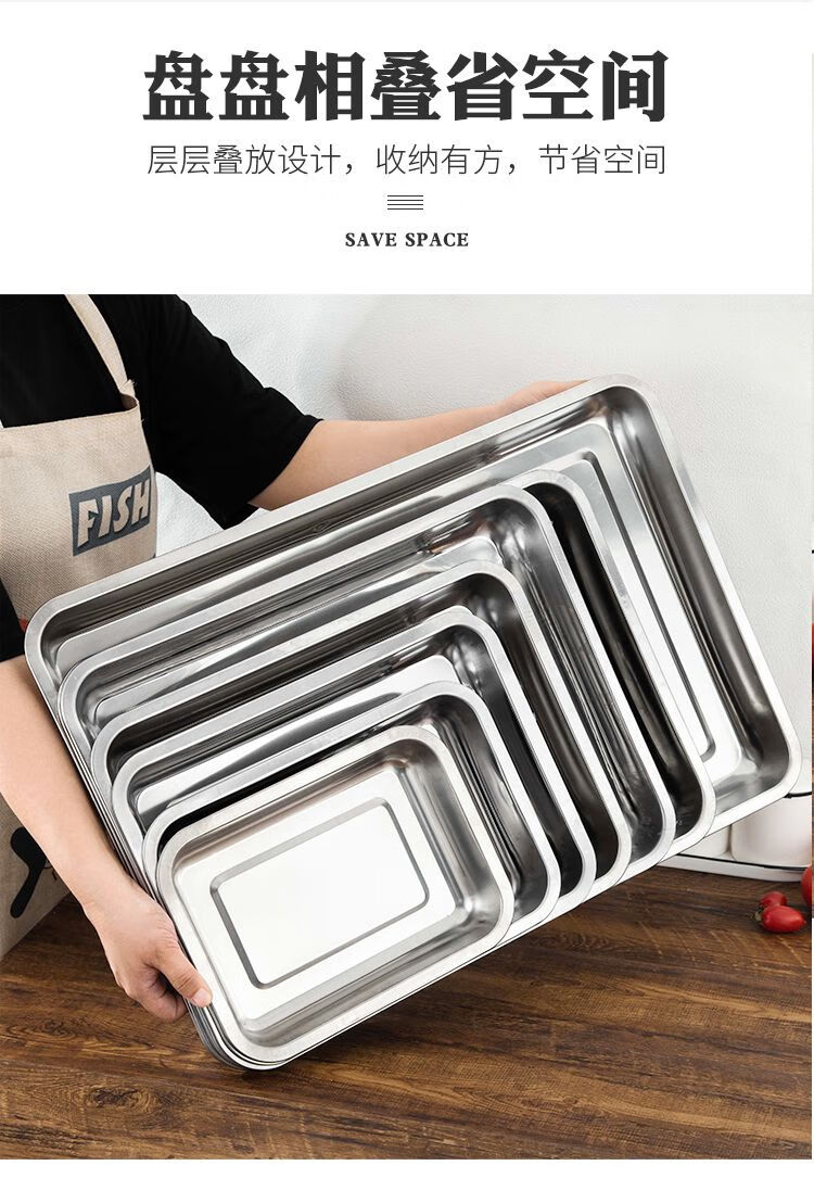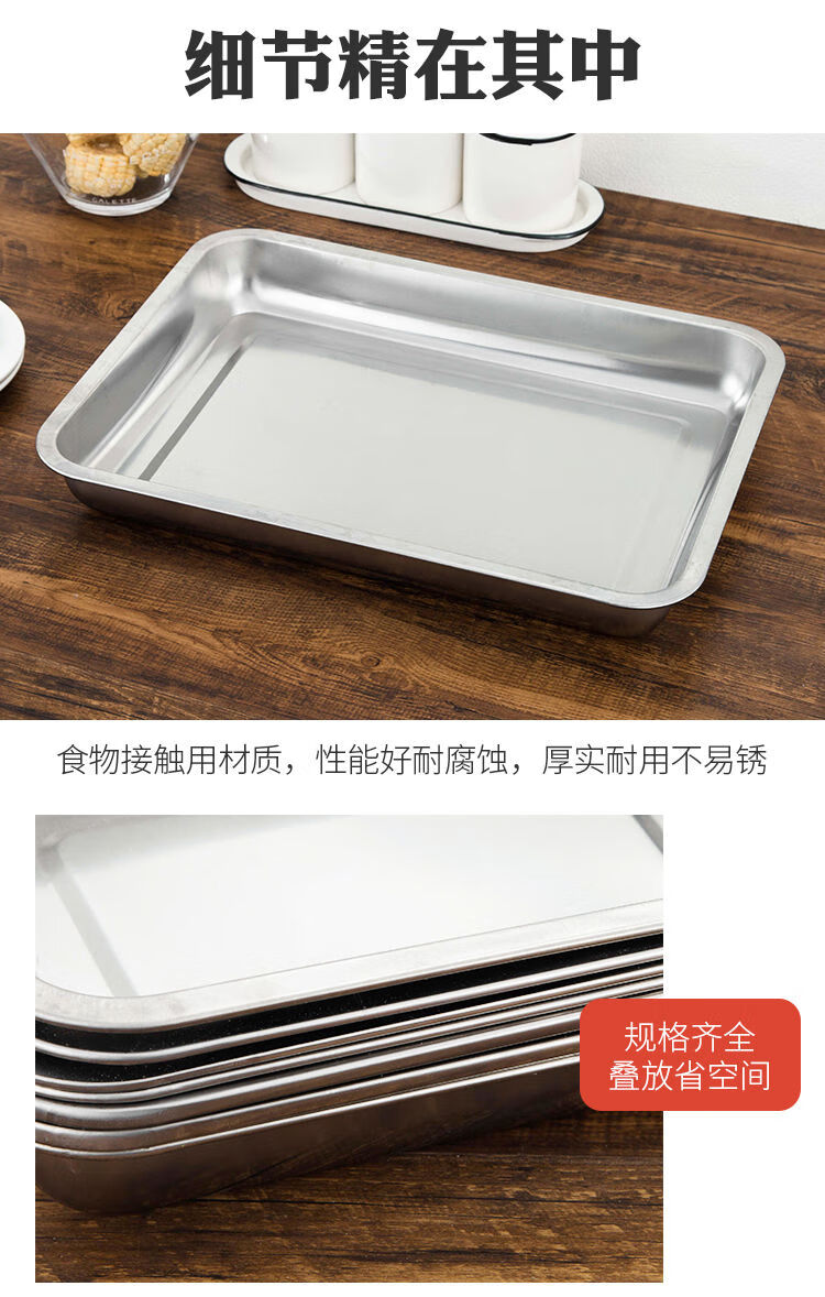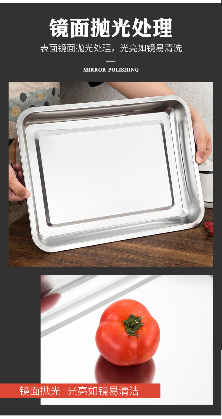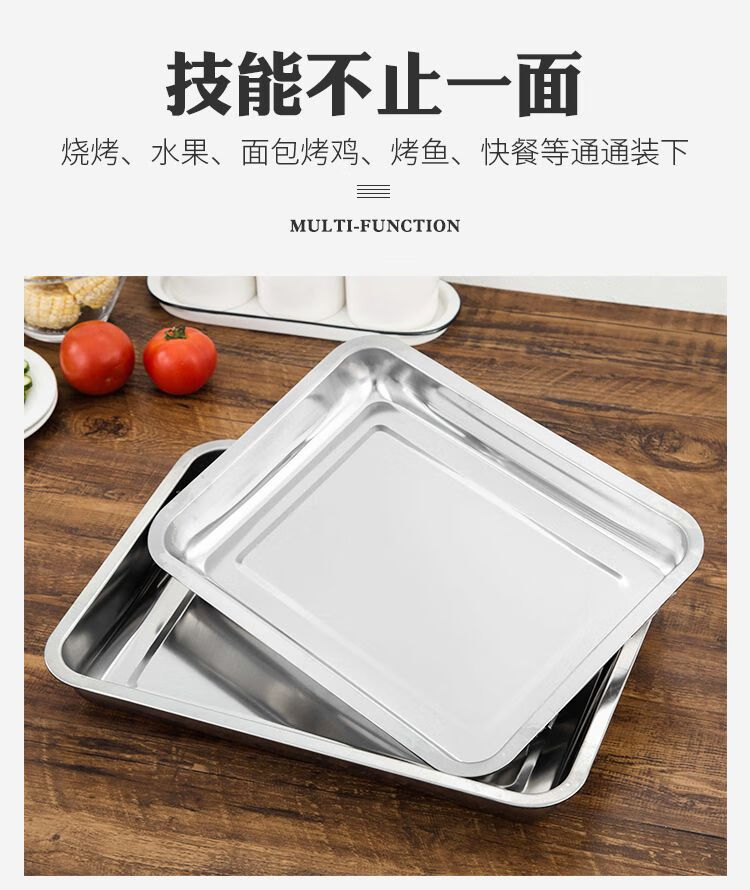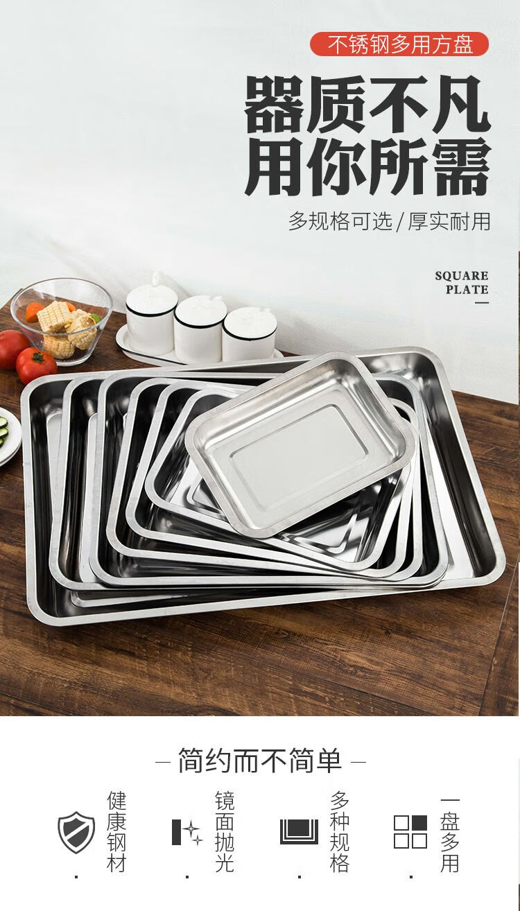 DEATKN不锈钢方盘托盘菜盘餐盘烧烤盘饭盘铁盘子长方形阿胶盘商用摆摊盘 浅盘 薄款26*19cm【5个】烧烤盘