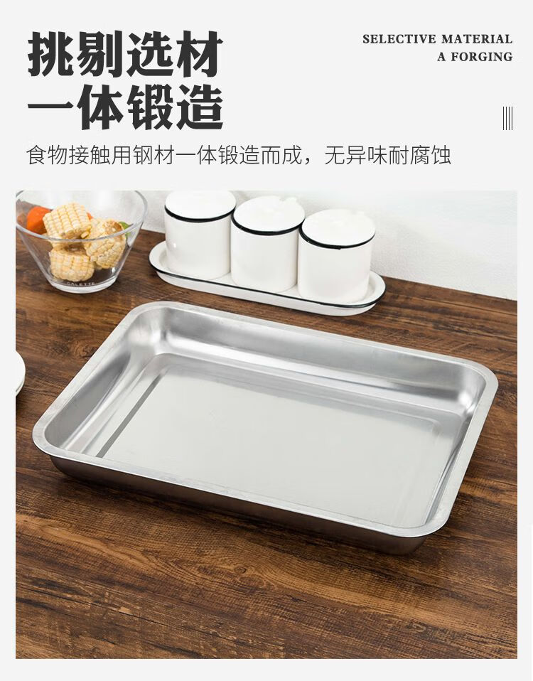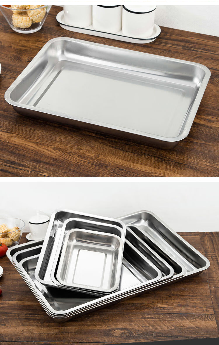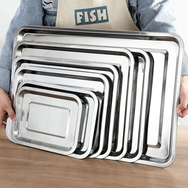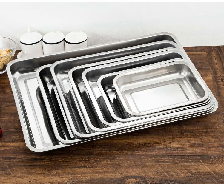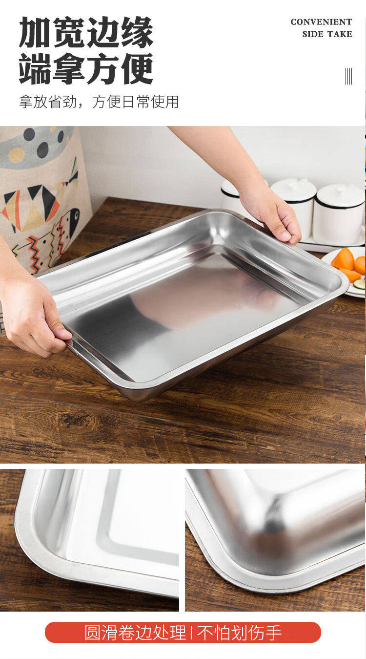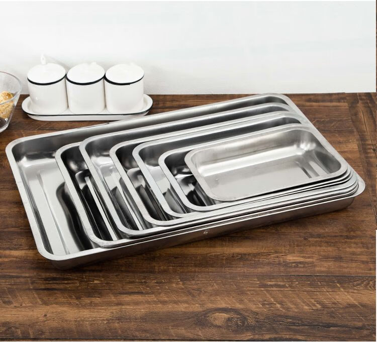 DEATKN不锈钢方盘托盘菜盘餐盘烧烤盘饭盘铁盘子长方形阿胶盘商用摆摊盘 浅盘 薄款26*19cm【5个】烧烤盘
