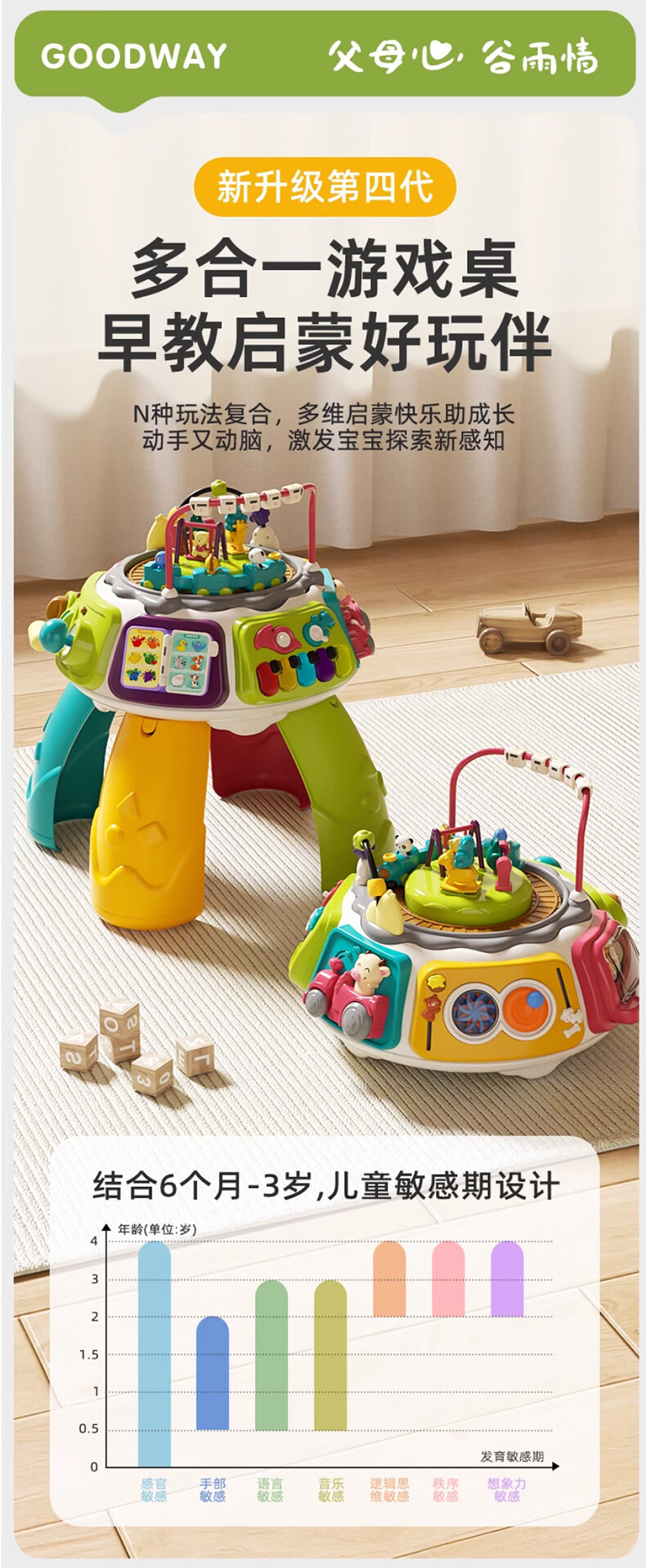谷雨游戏桌多功能学习桌婴儿男女孩早教机新生幼儿宝宝玩具圣诞礼物 谷雨游乐园学习桌(需自备电池)