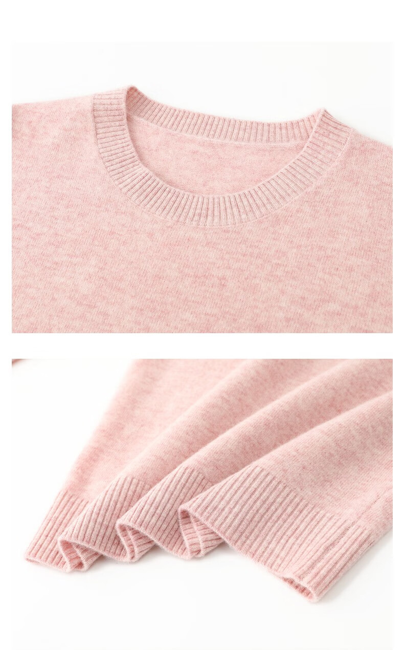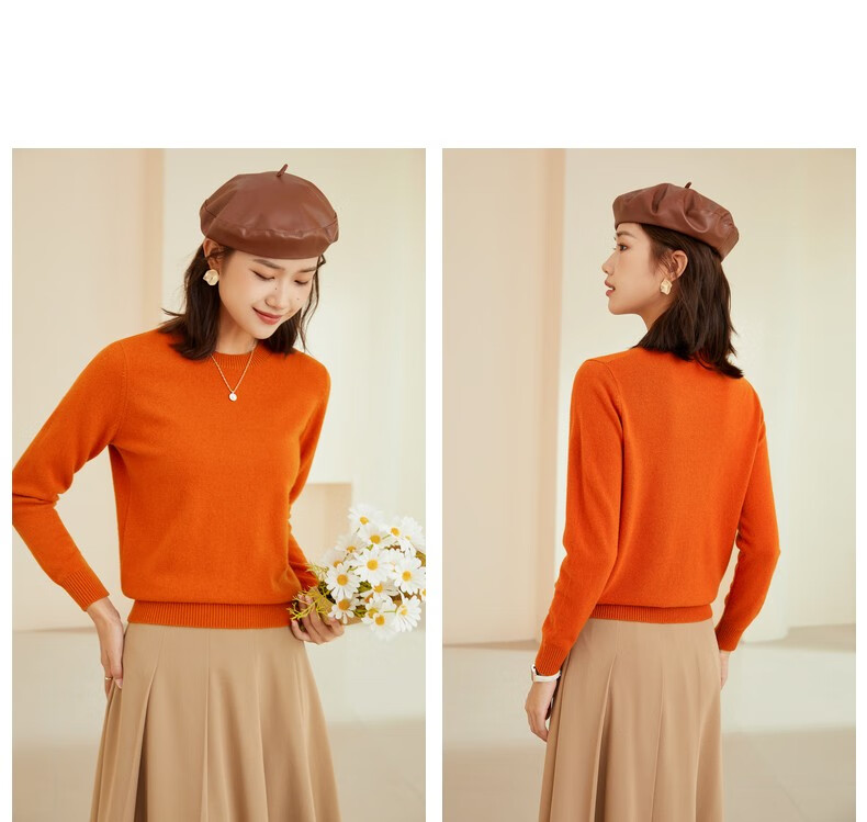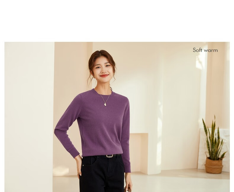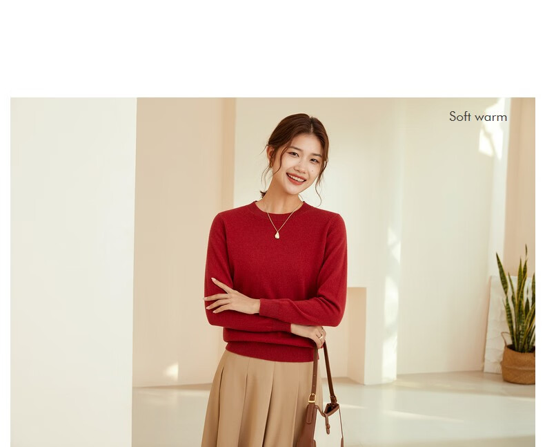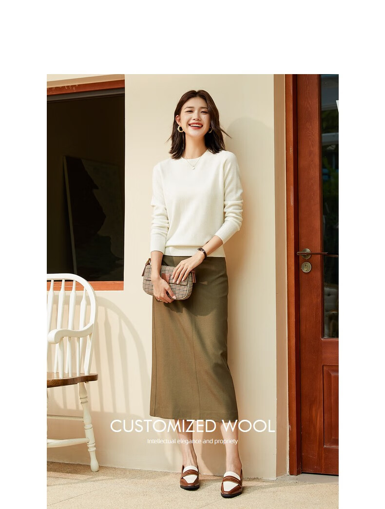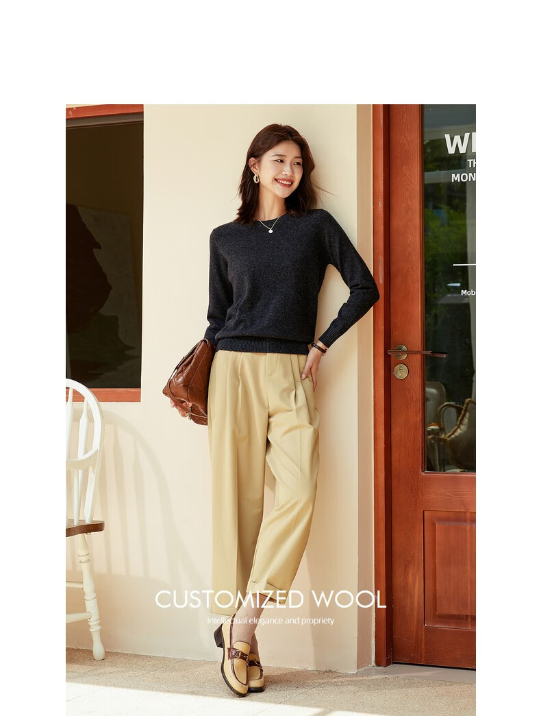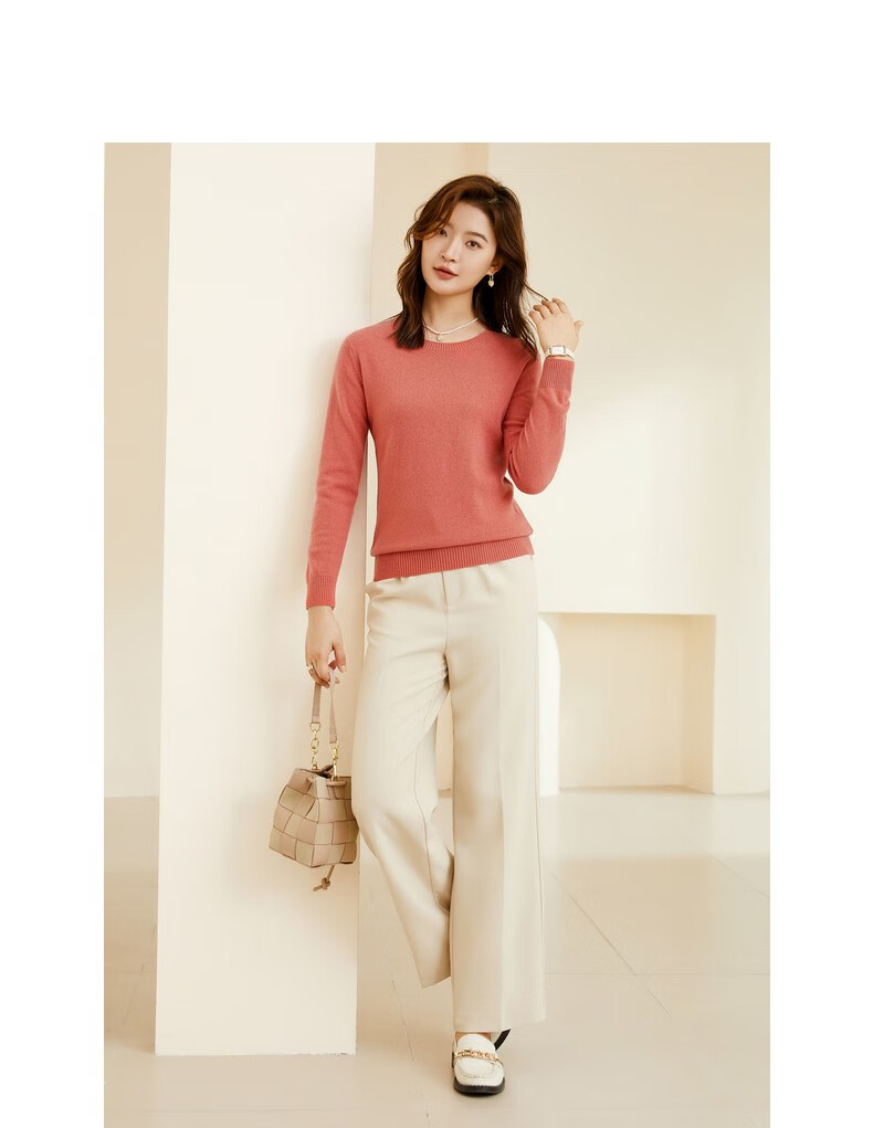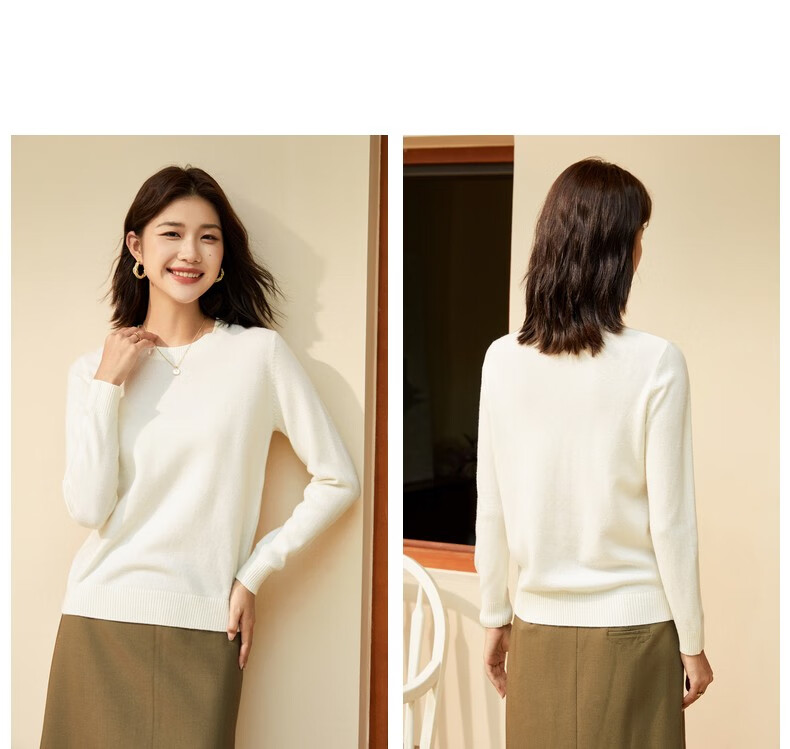 恒源祥圆领纯羊毛衫女秋冬基础打底毛衣纯色时尚套头百搭女装针织衫上衣 小麦色 M /165/88A