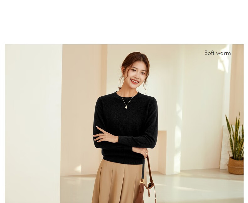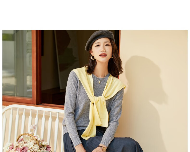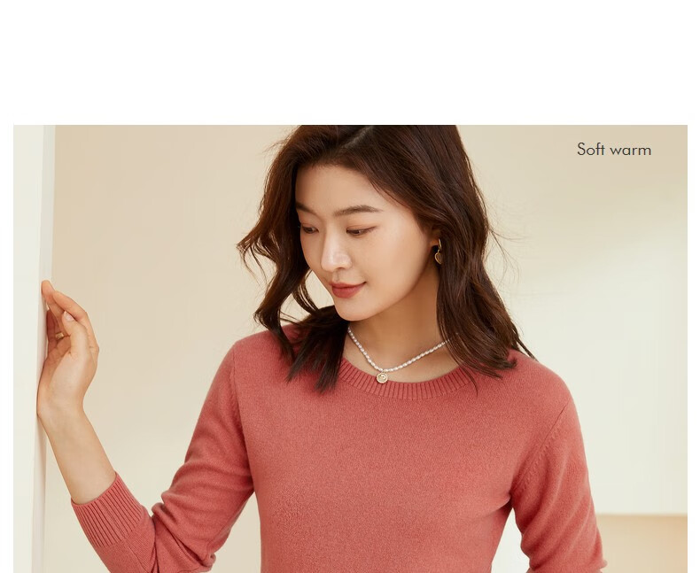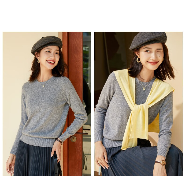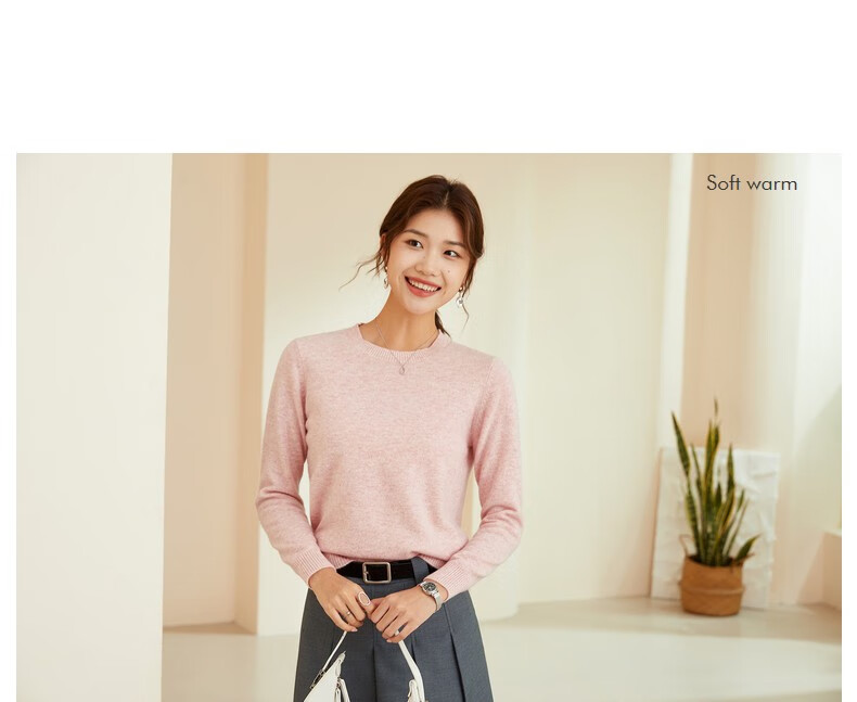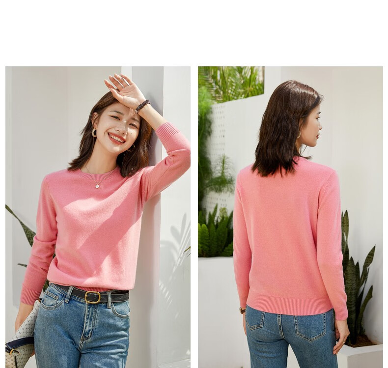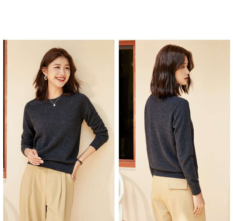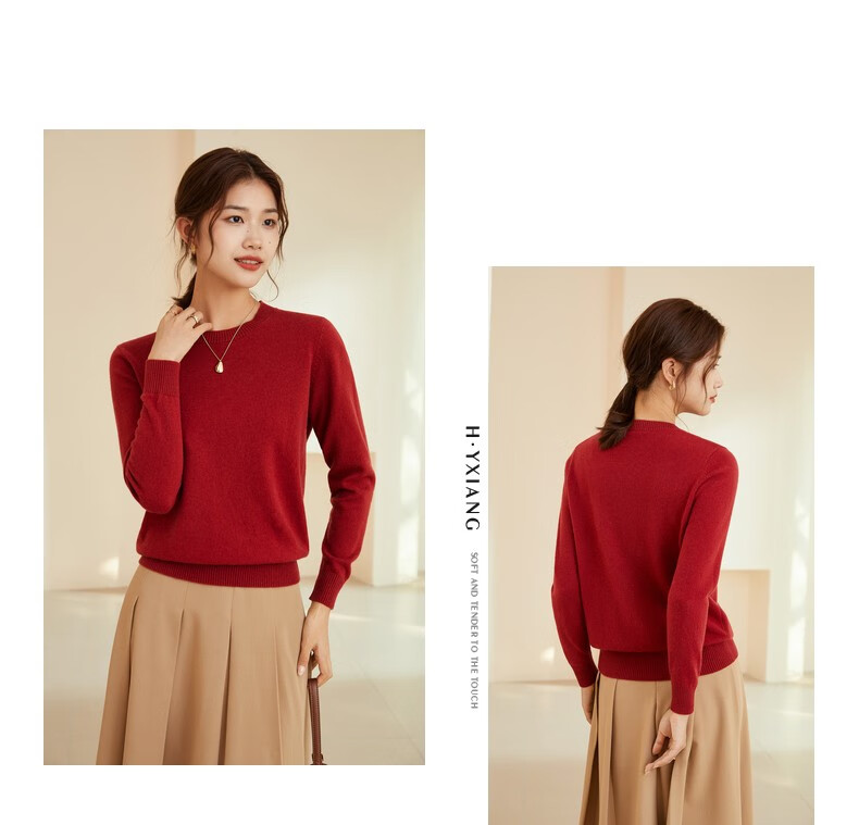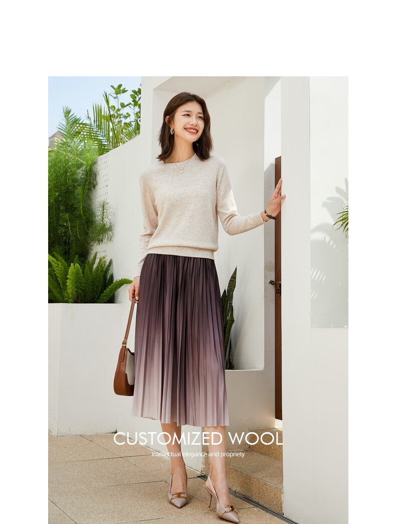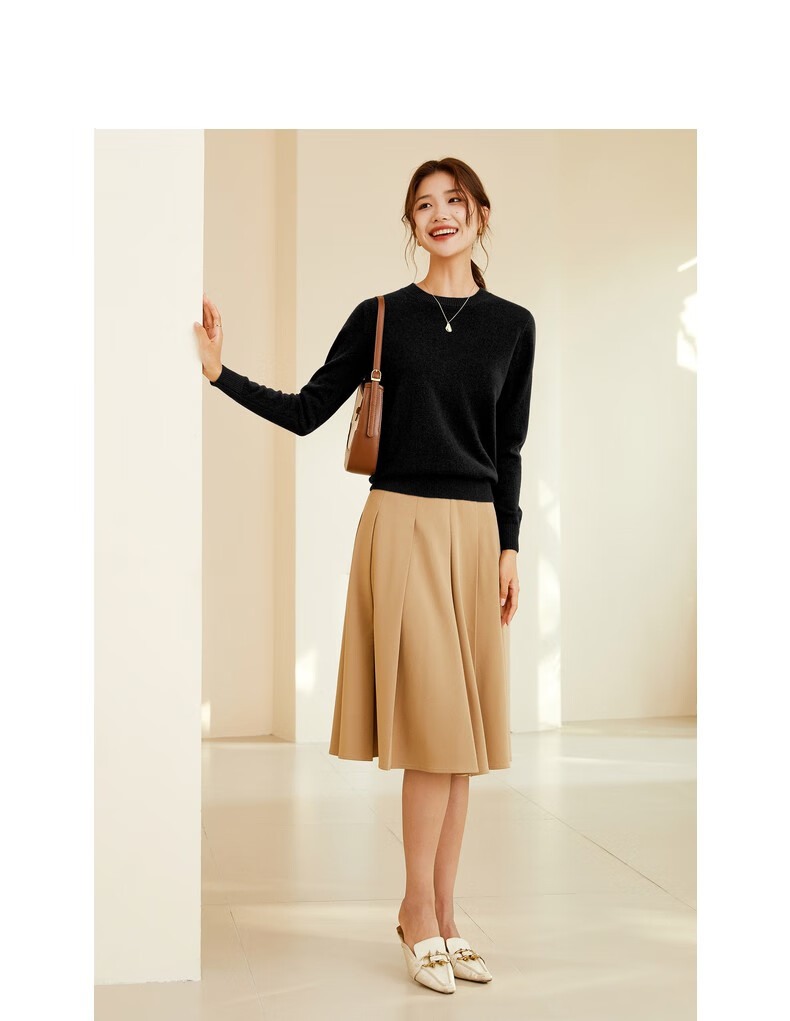 恒源祥圆领纯羊毛衫女秋冬基础打底毛衣纯色时尚套头百搭女装针织衫上衣 小麦色 M /165/88A