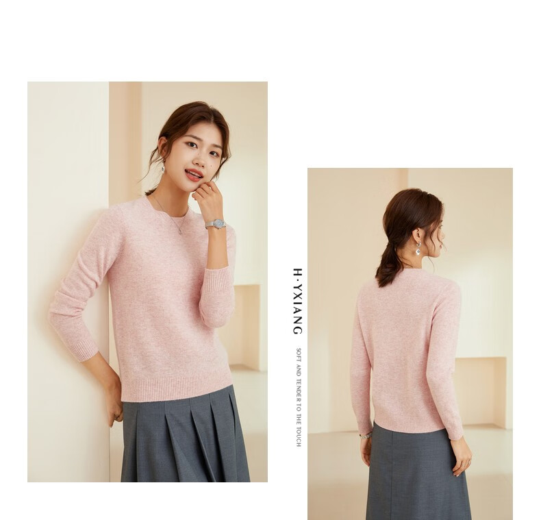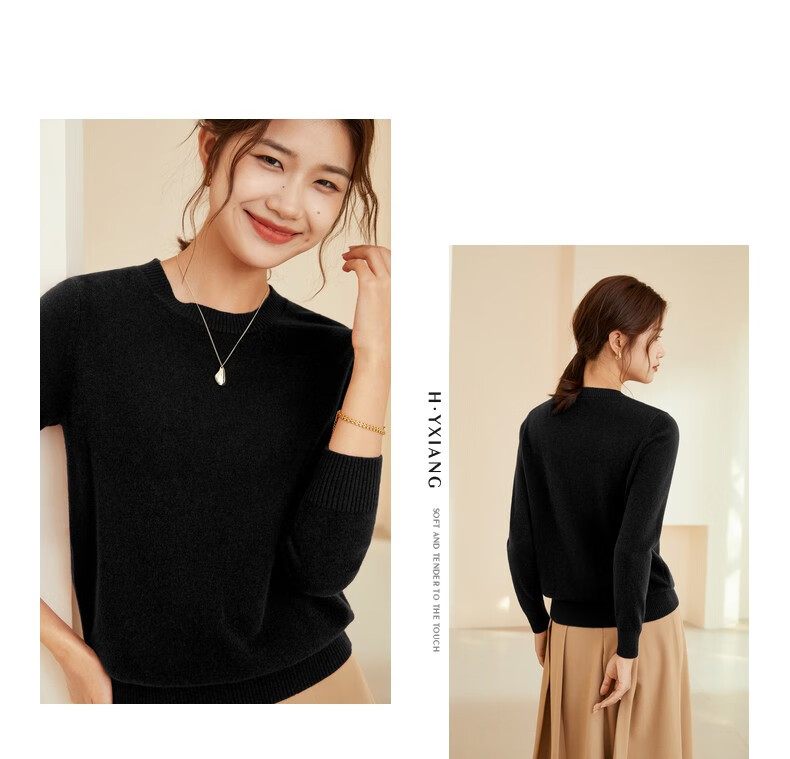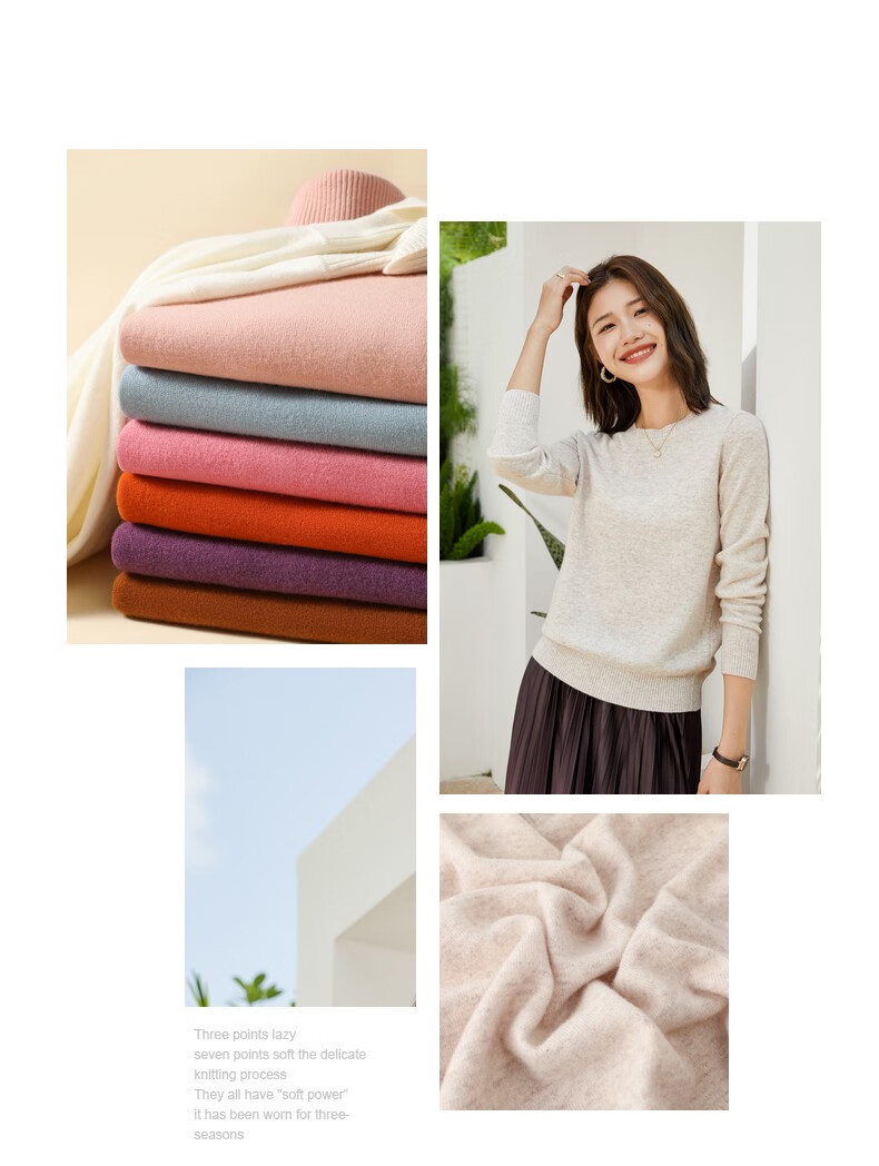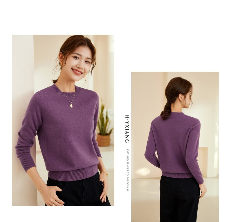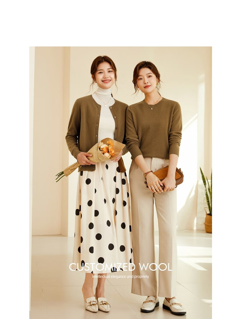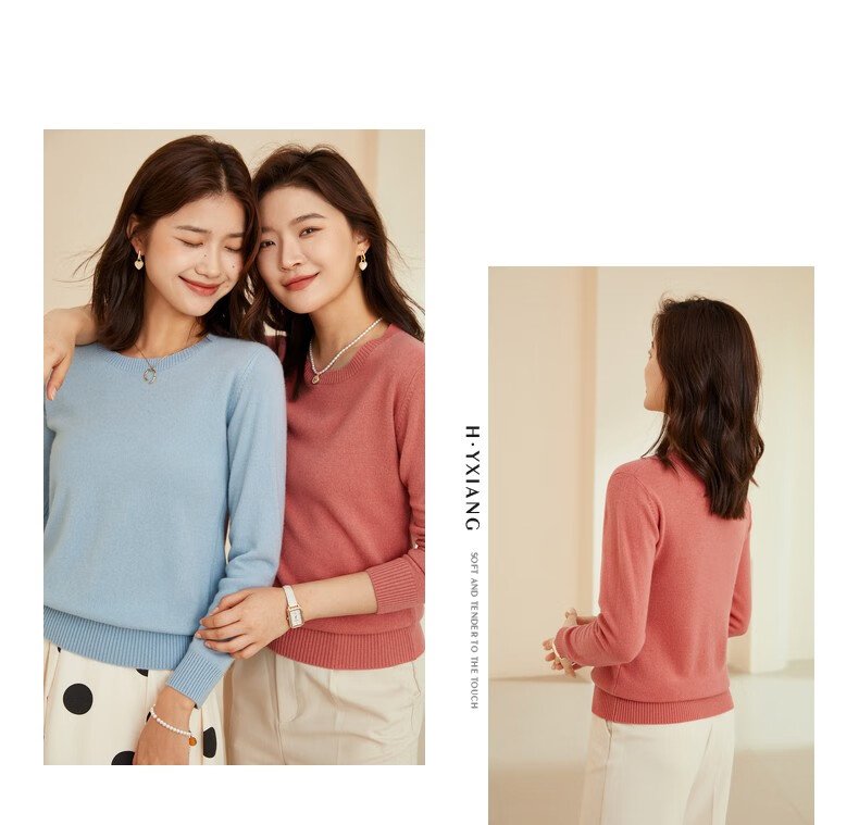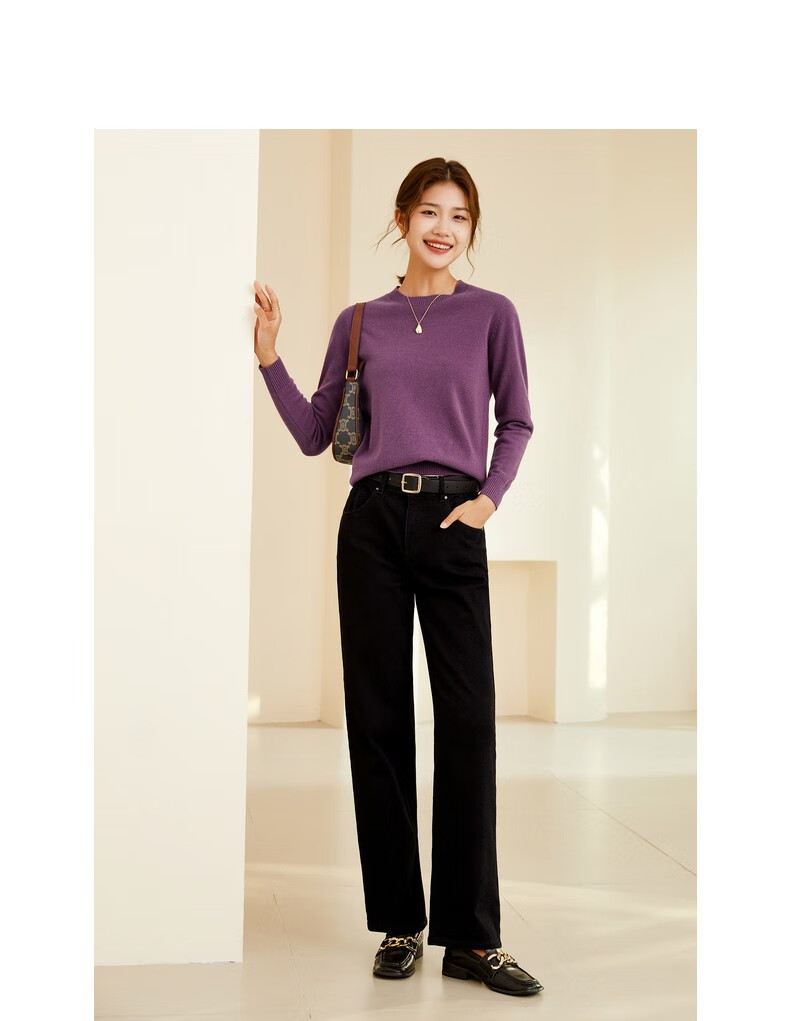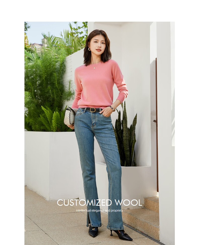 恒源祥圆领纯羊毛衫女秋冬基础打底毛衣纯色时尚套头百搭女装针织衫上衣 小麦色 M /165/88A
