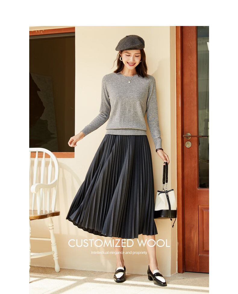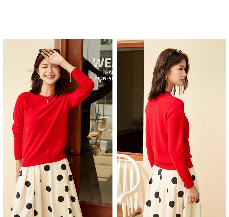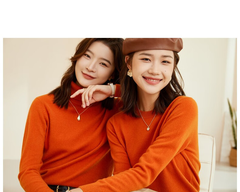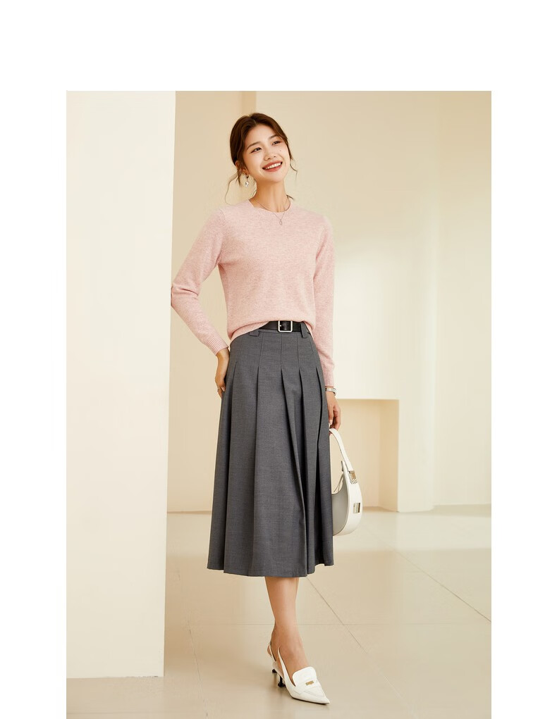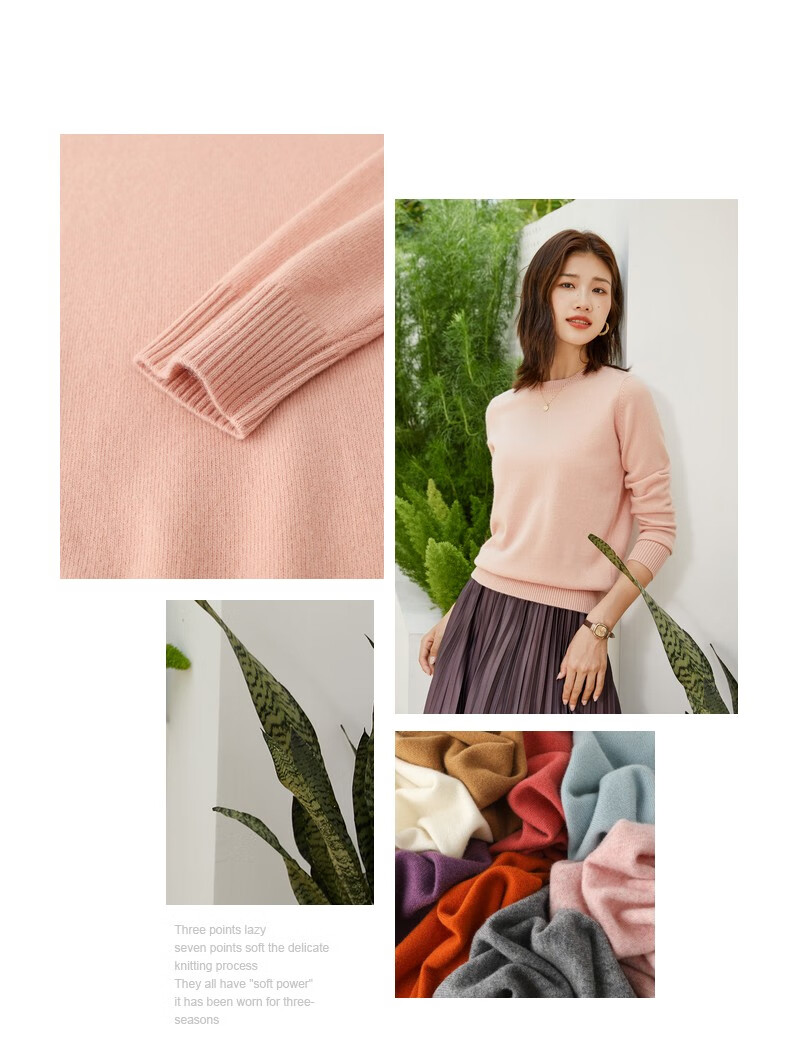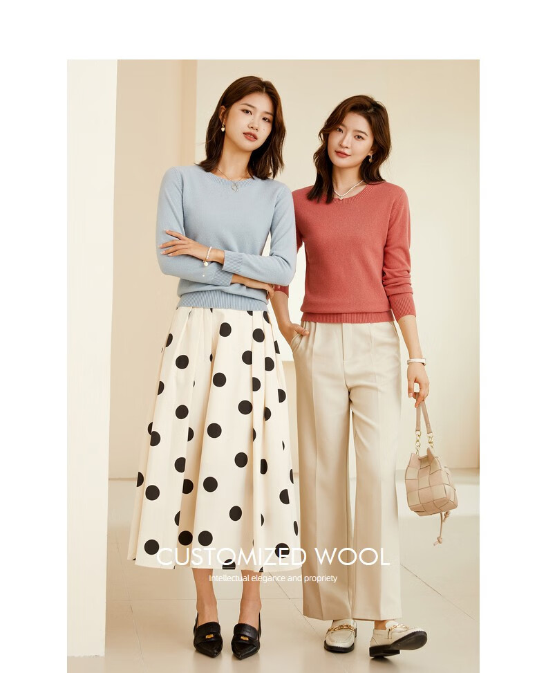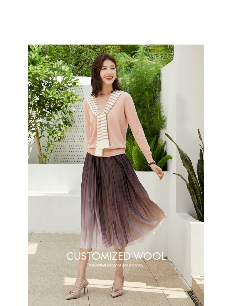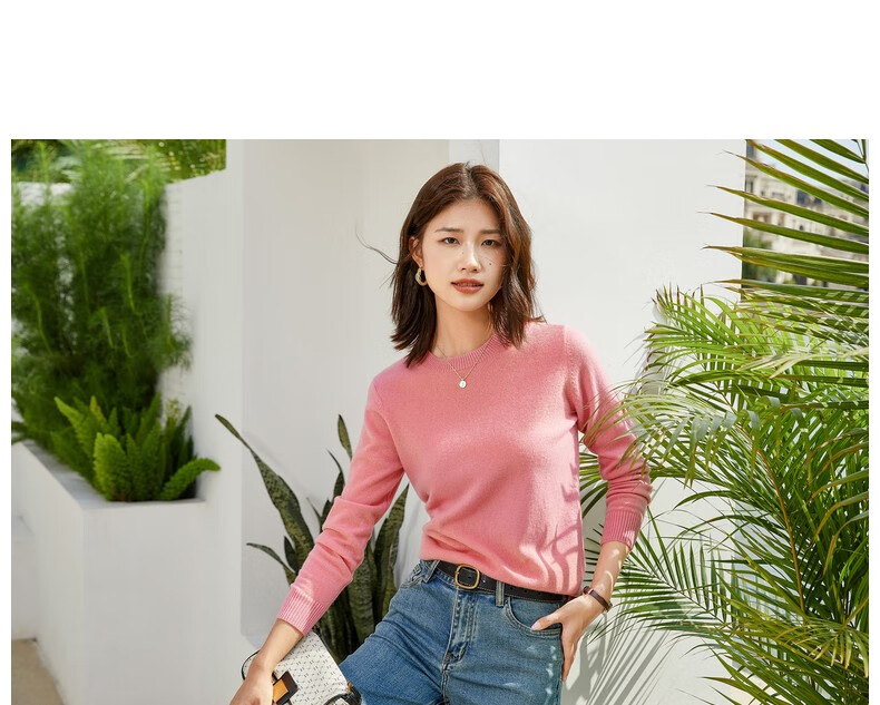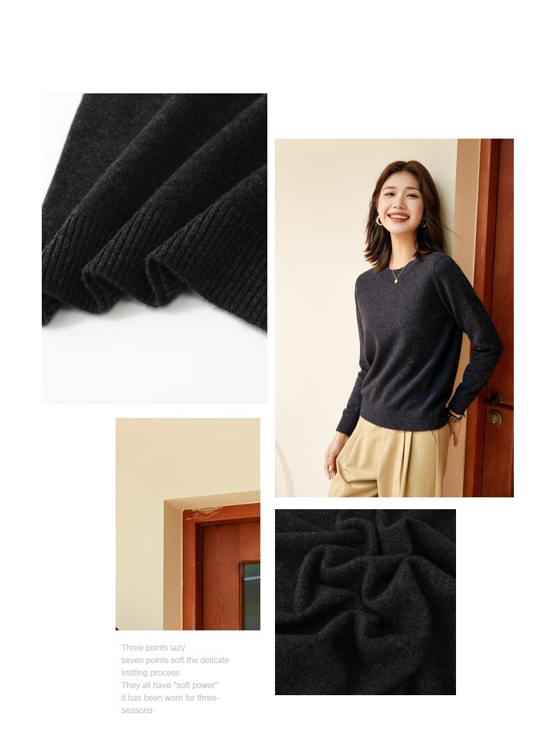 恒源祥圆领纯羊毛衫女秋冬基础打底毛衣纯色时尚套头百搭女装针织衫上衣 小麦色 M /165/88A