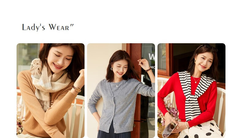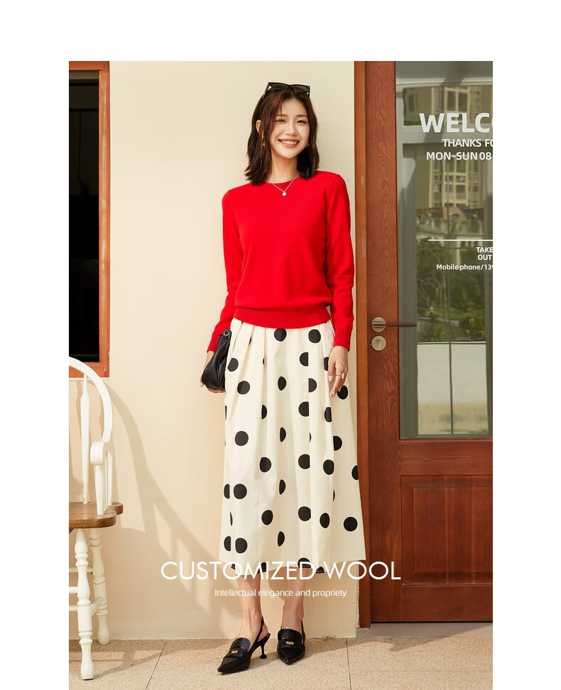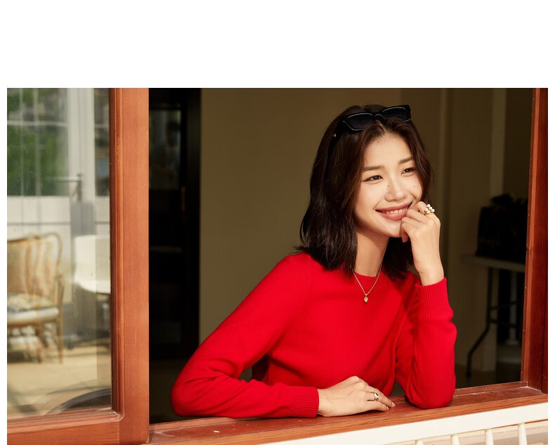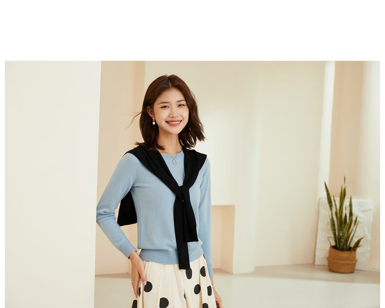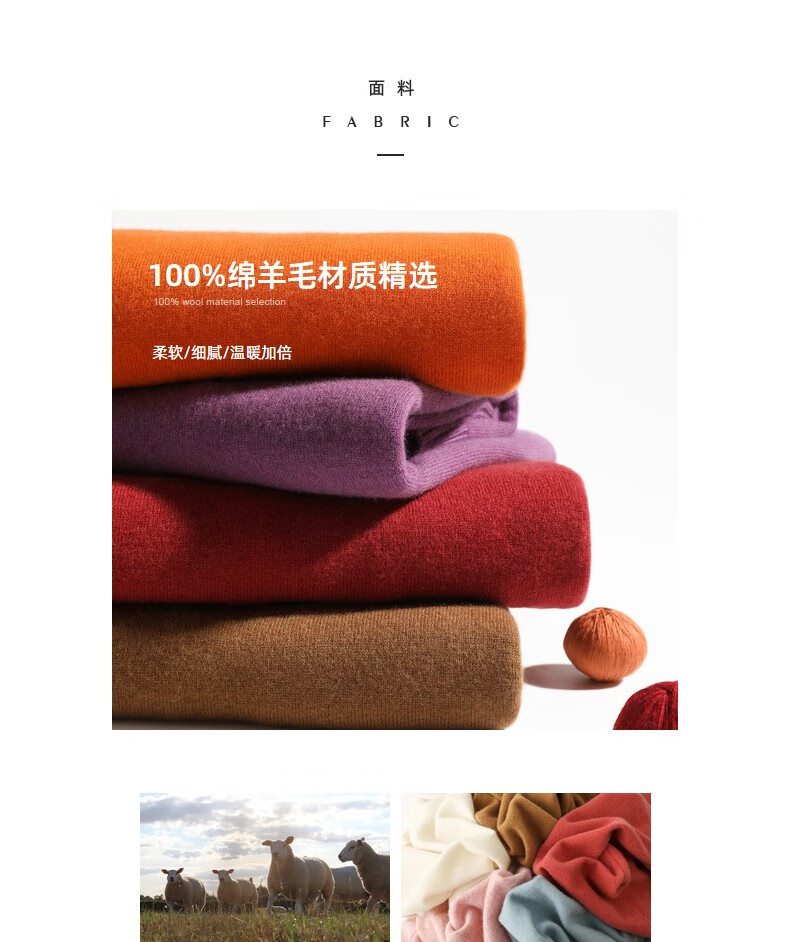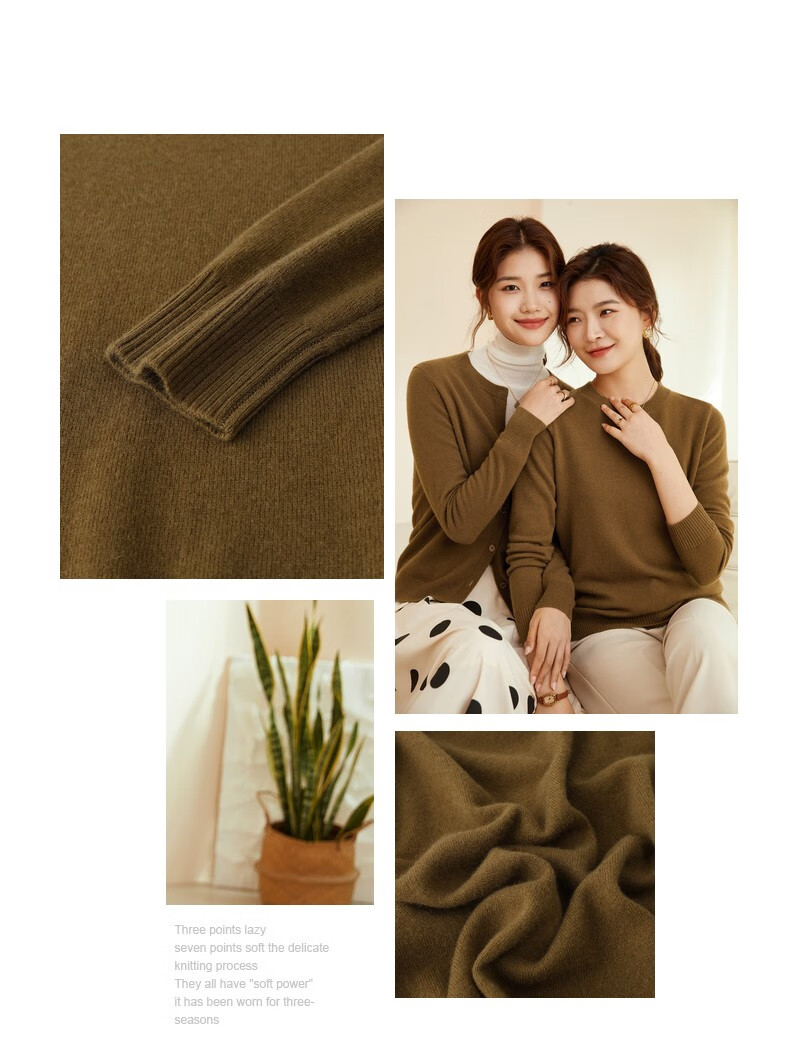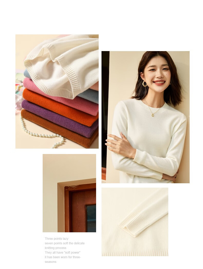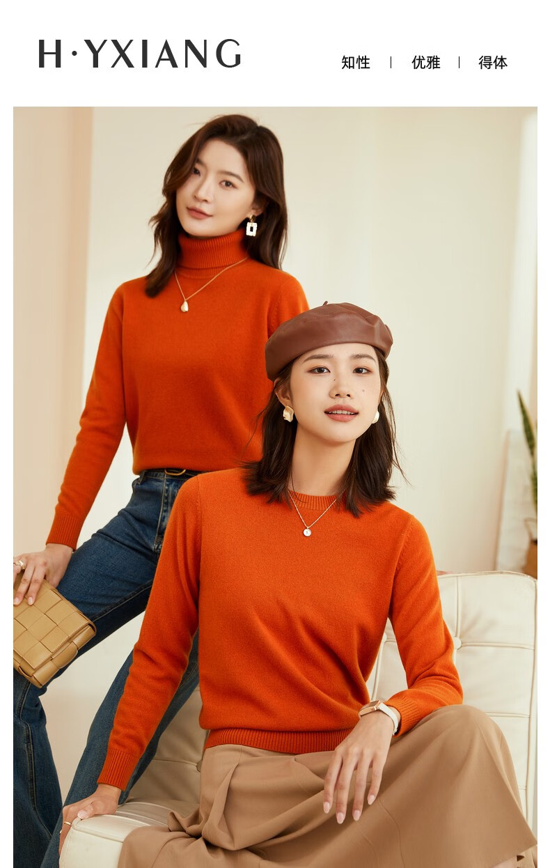恒源祥圆领纯羊毛衫女秋冬基础打底毛衣纯色时尚套头百搭女装针织衫上衣 小麦色 M /165/88A