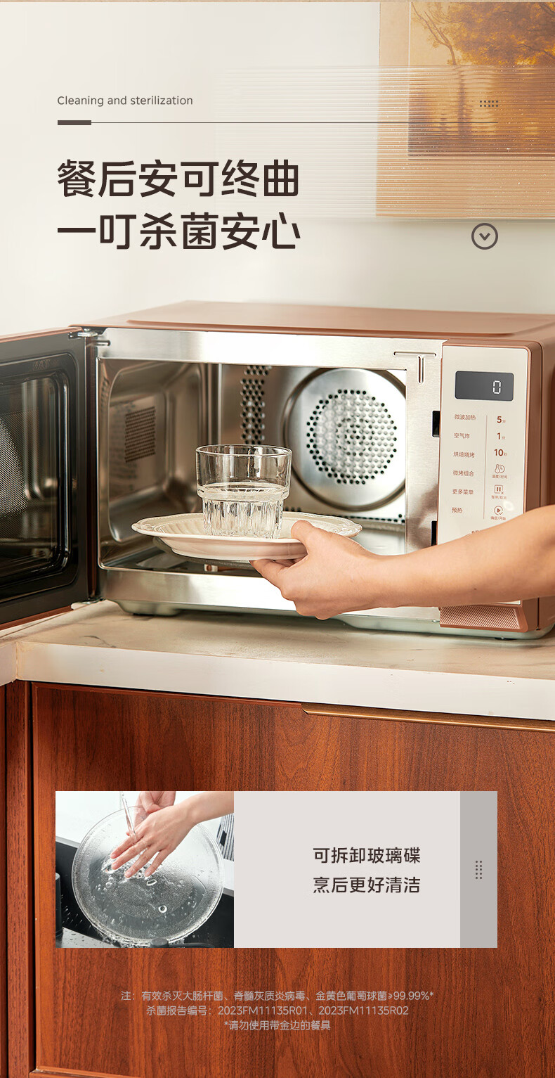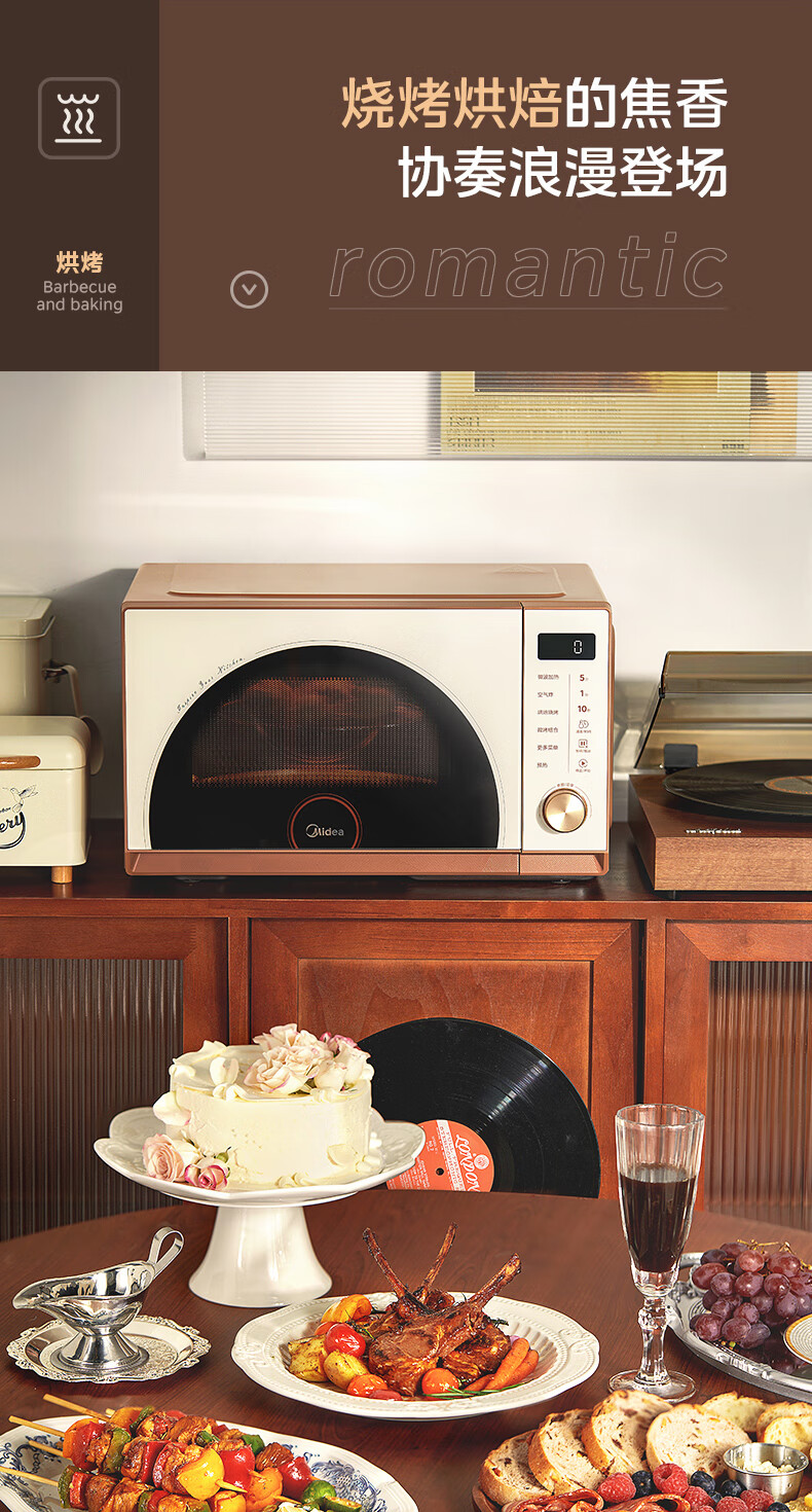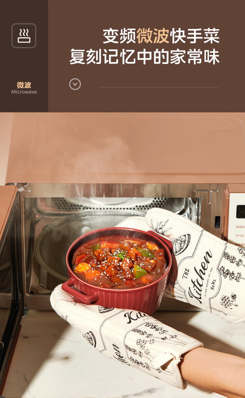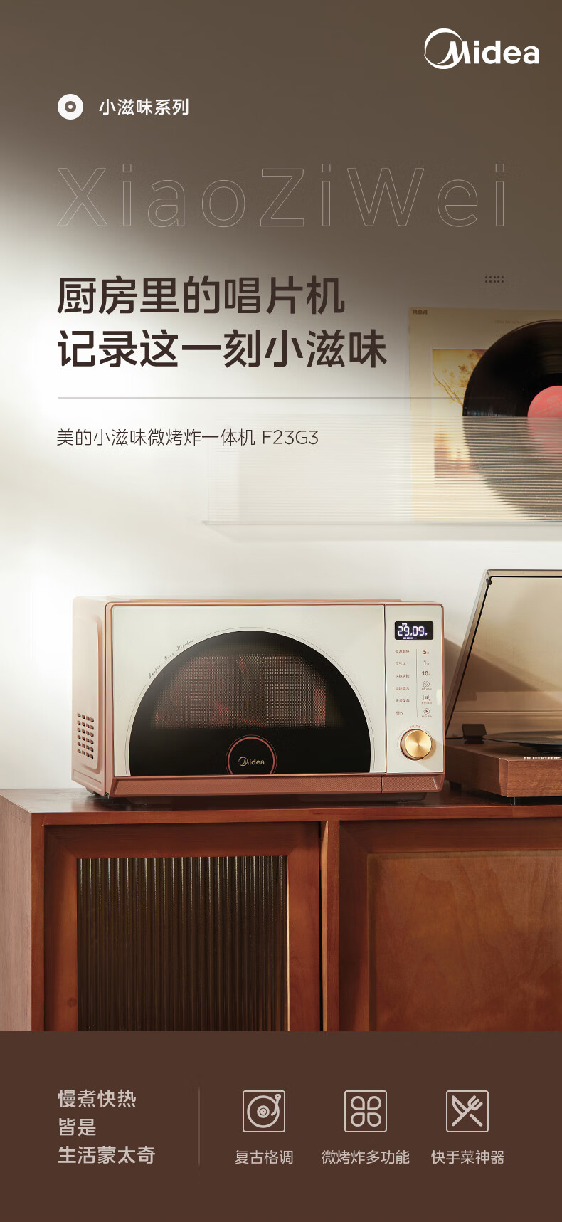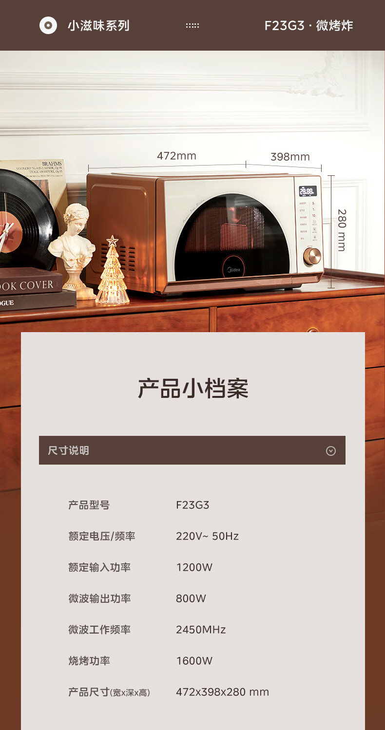 美的(Midea)小滋味微烤炸一体机家用变频台式微波炉烤箱空气炸不锈钢内胆一级能效古典风23L(F23G3)
