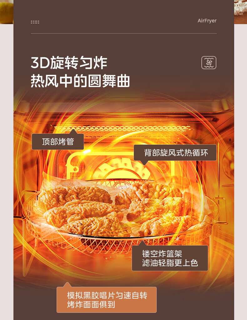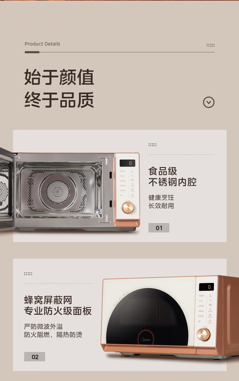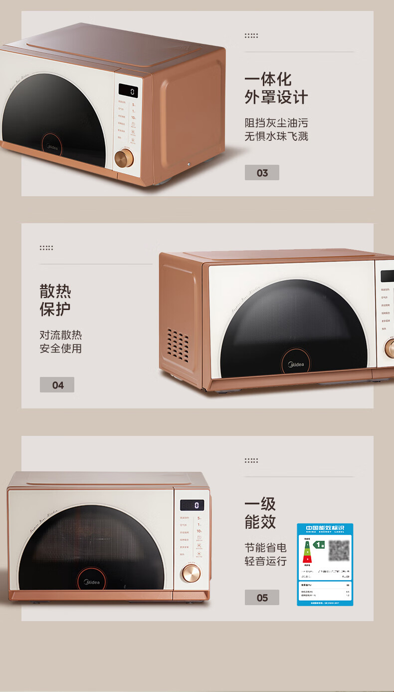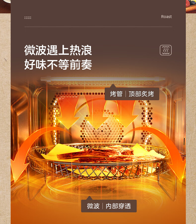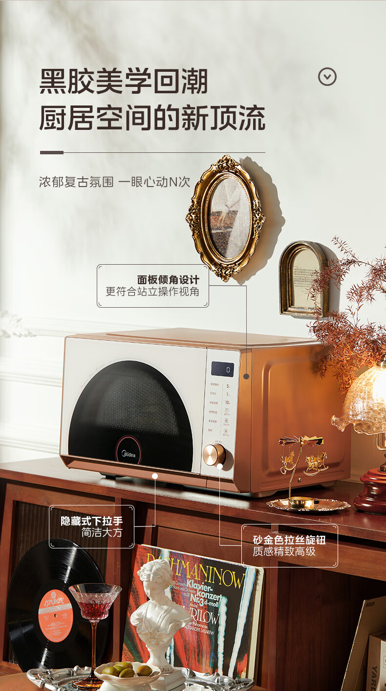 美的(Midea)小滋味微烤炸一体机家用变频台式微波炉烤箱空气炸不锈钢内胆一级能效古典风23L(F23G3)