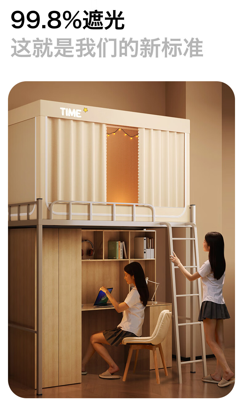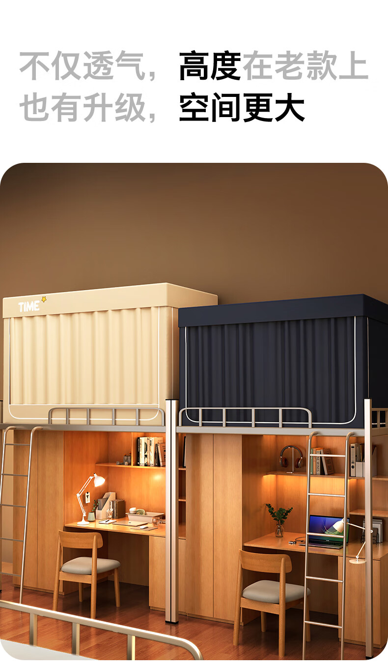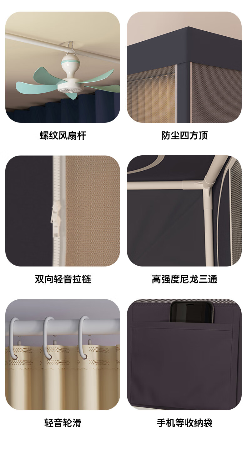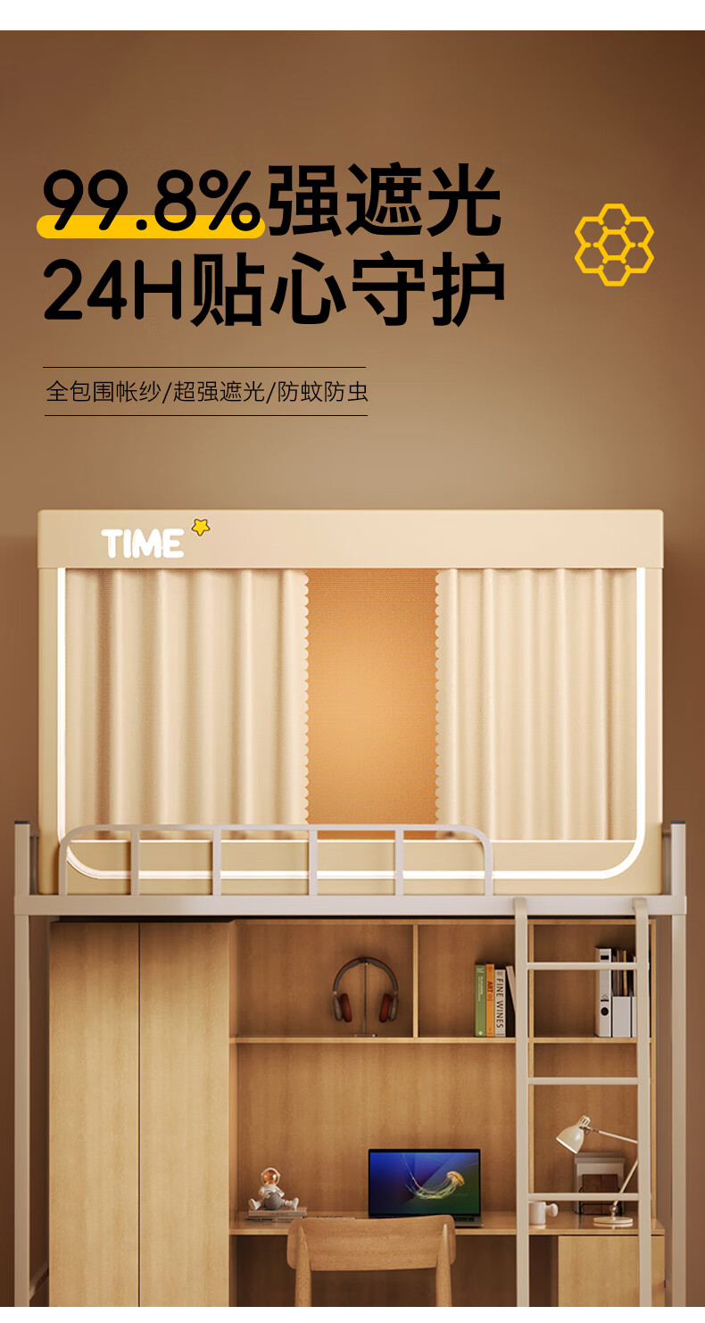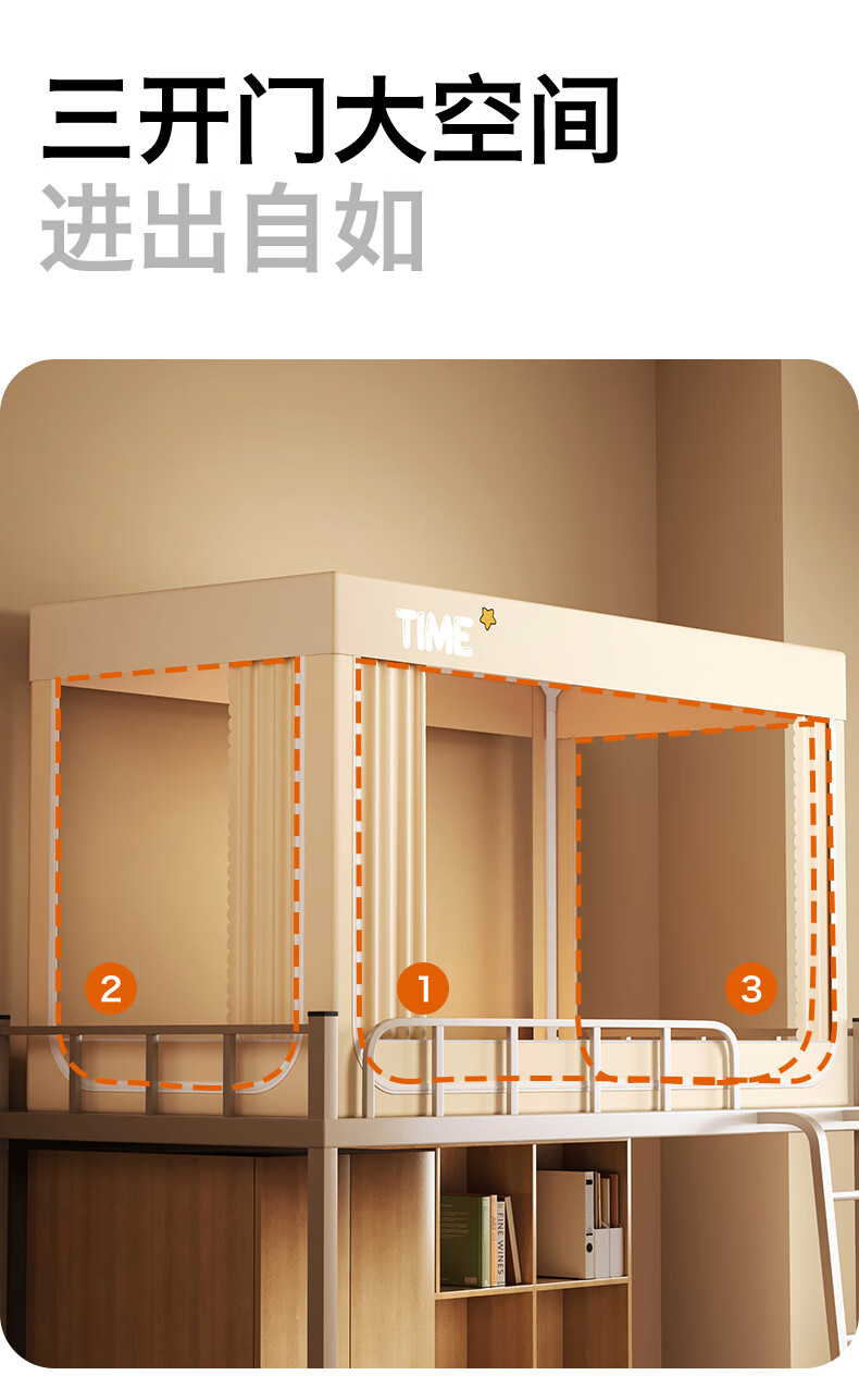 南极人(Nanjiren)大学生宿舍床帘上下铺蚊帐一体式强遮光全封闭全包围寝室专用窗帘 星星-米色【四面强遮光护隐私】 上铺三开门:90x190x110cm自连接支架