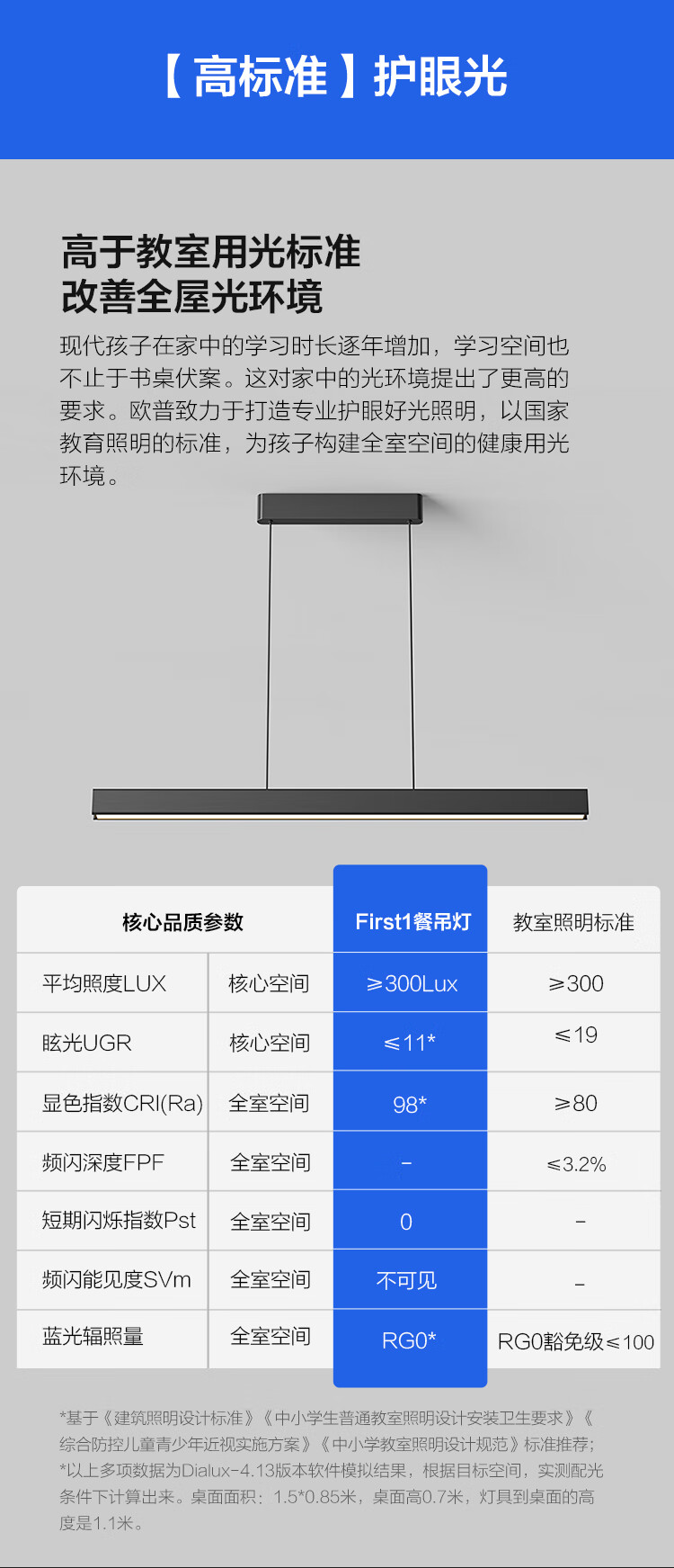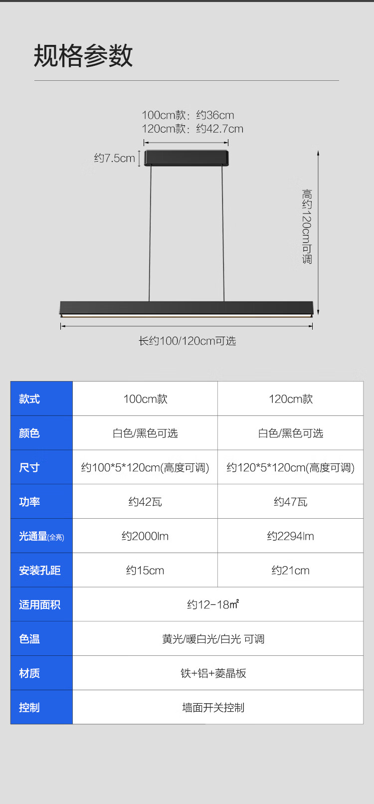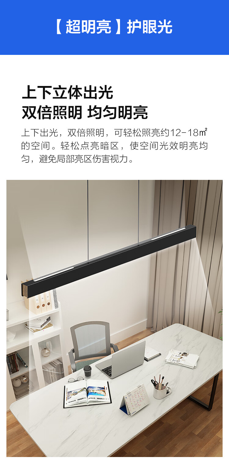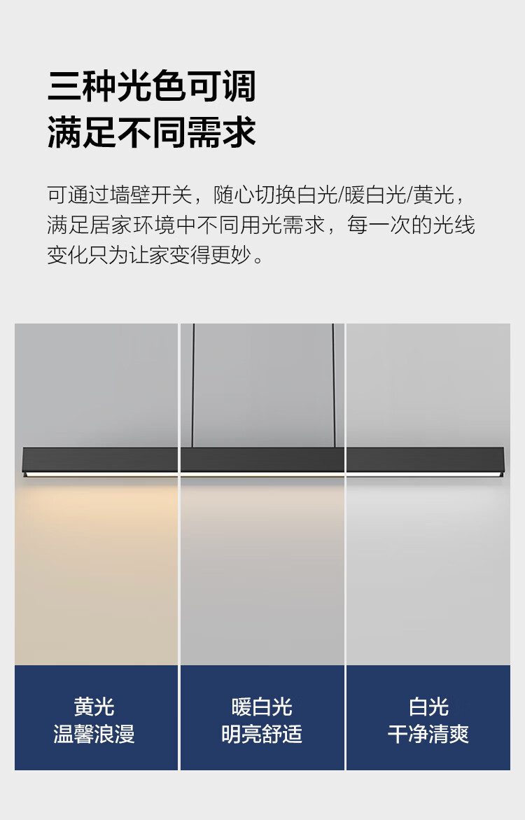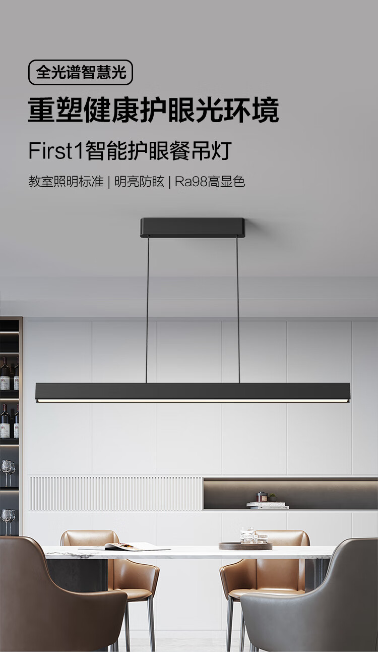 欧普(OPPLE)全光谱智慧光护眼高亮一字长条餐吊灯高显色现代简约大气黑色47W